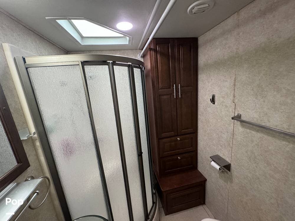 Under the hood, the Georgetown 377TS boasts a robust Ford Triton 6.8-liter V10 engine, ensuring you can easily conquer any mountain. Built on the sturdy Ford F-53 chassis, this motorhome offers a smooth and reliable ride, making every trip a pleasure. With a 5,000-lb rated rear tow hitch, you can bring your car, motorcycle, or even an electric golf cart for added convenience.