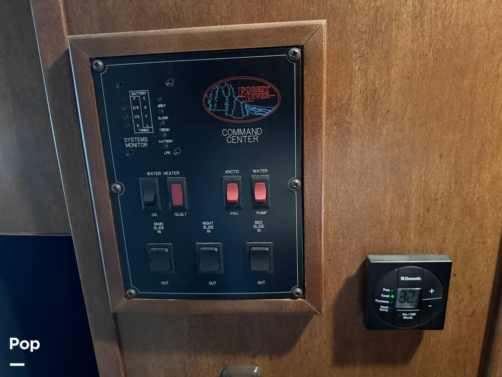 Stay comfortable year-round with two AC units (15k and 13.5k BTUs) and two furnaces (35k and 20k BTUs). The 5.5kW Onan generator provides power independence, and four coach batteries extend your off-grid capabilities. Auto-leveling jacks make setup a breeze, while the rear ladder offers easy roof access.