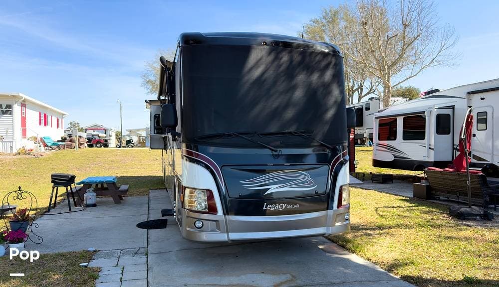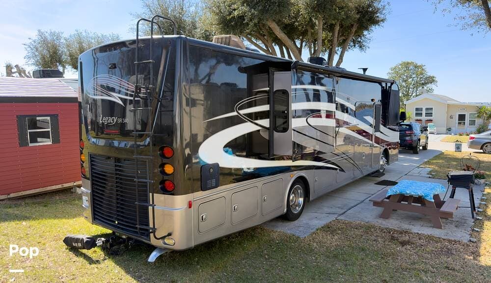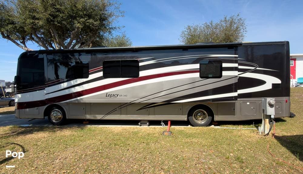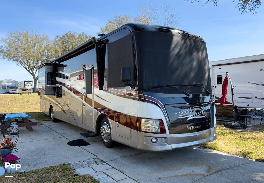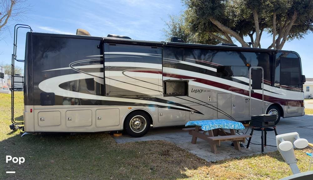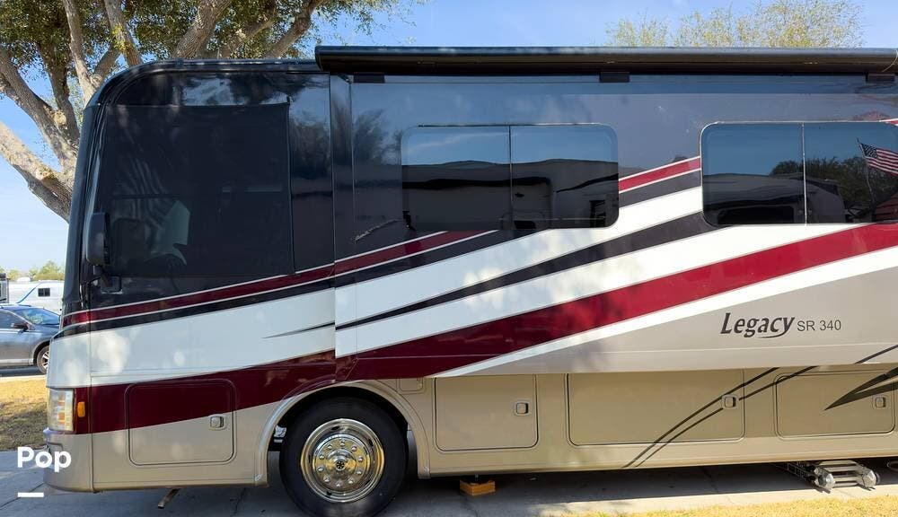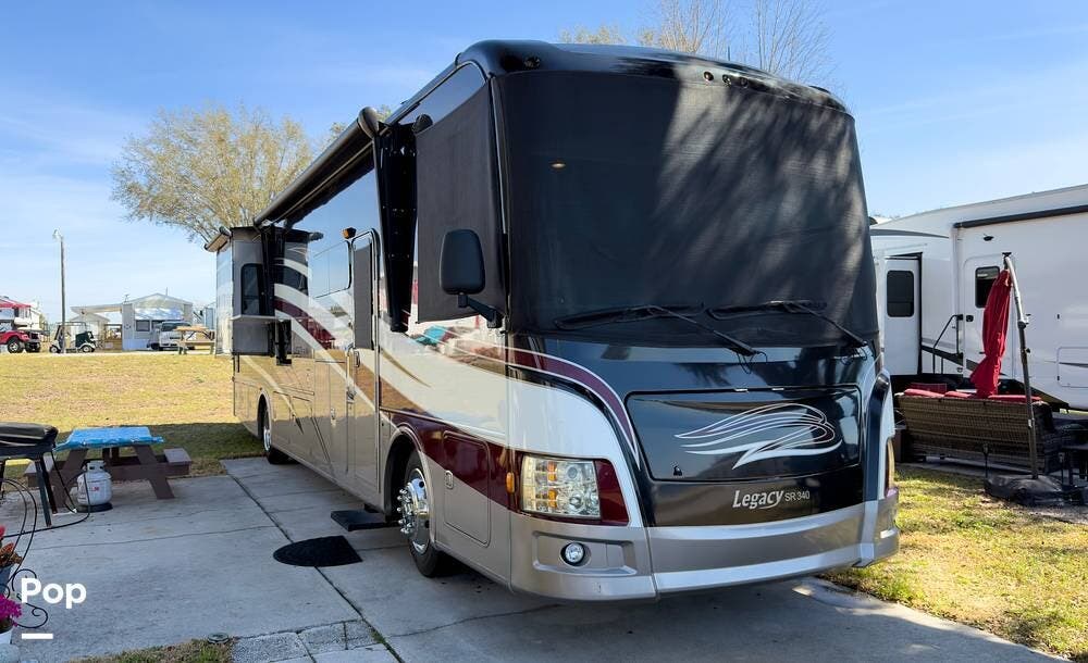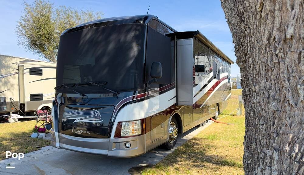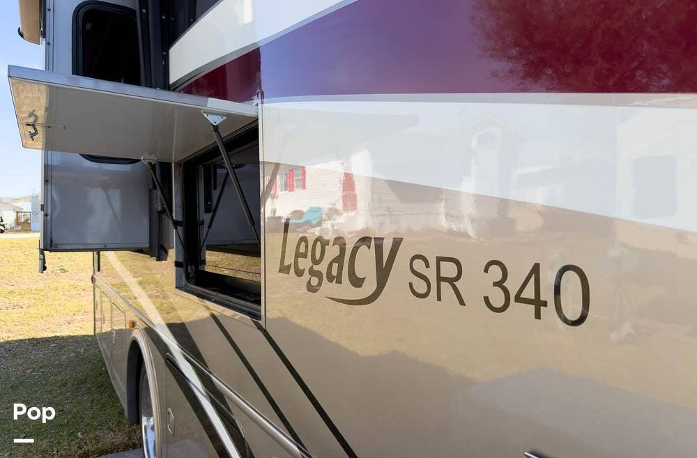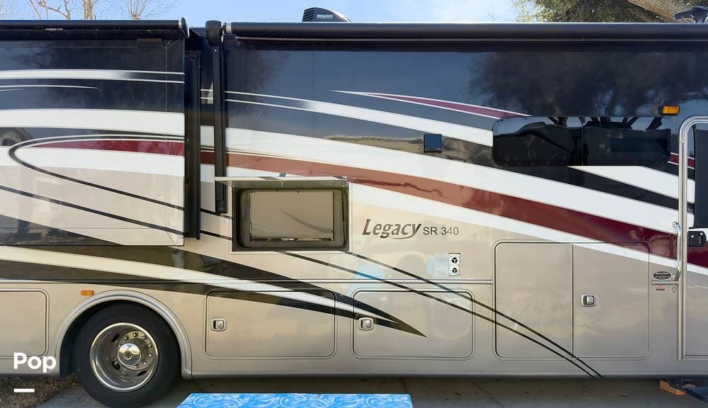 This 2015 Legacy SR340 360RB is a well-cared-for luxury diesel pusher that blends solid engineering with residential comfort in one of the most desirable rear-bath floor plans available. At just under 39 feet with two slide-outs, it offers a spacious layout that works equally well for extended travel or seasonal living.
