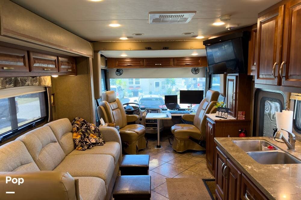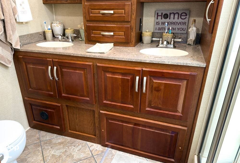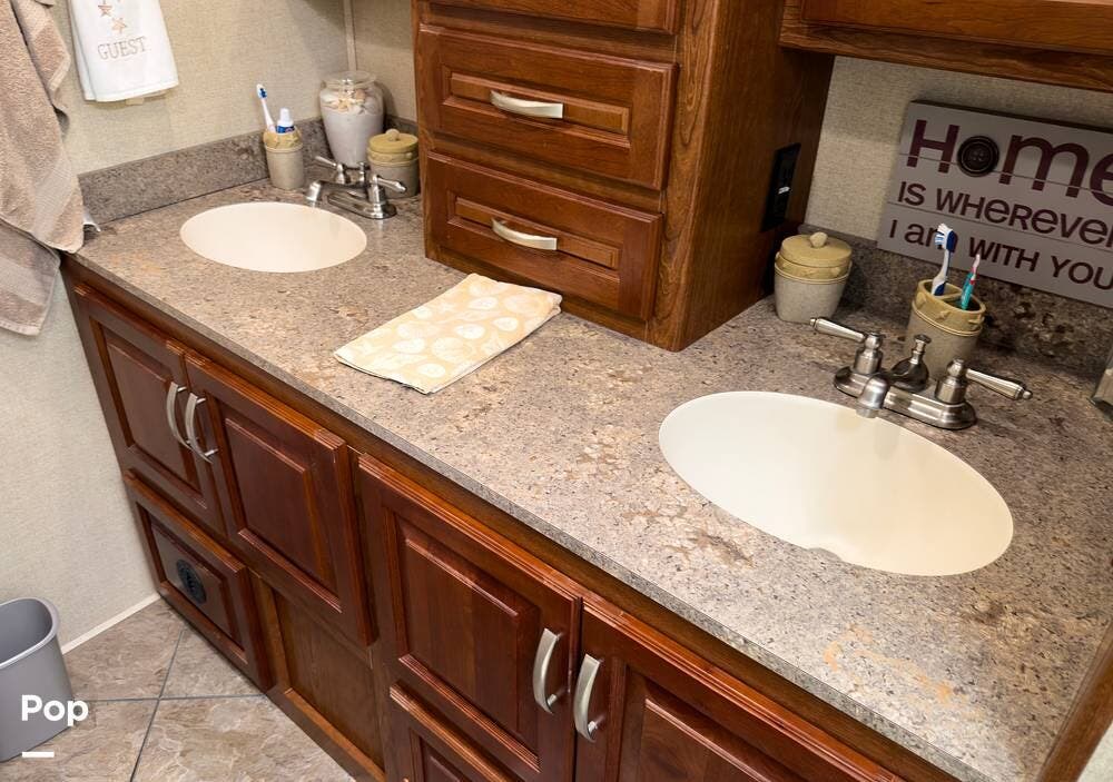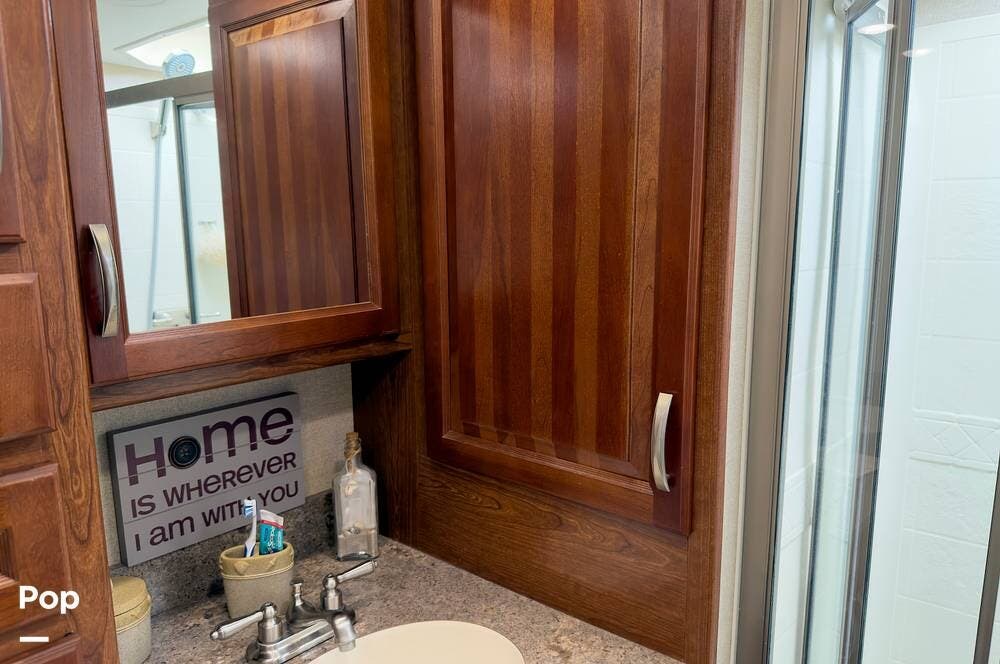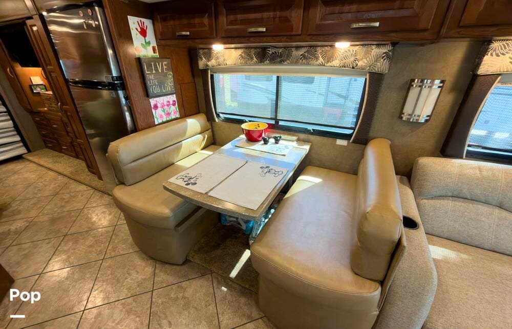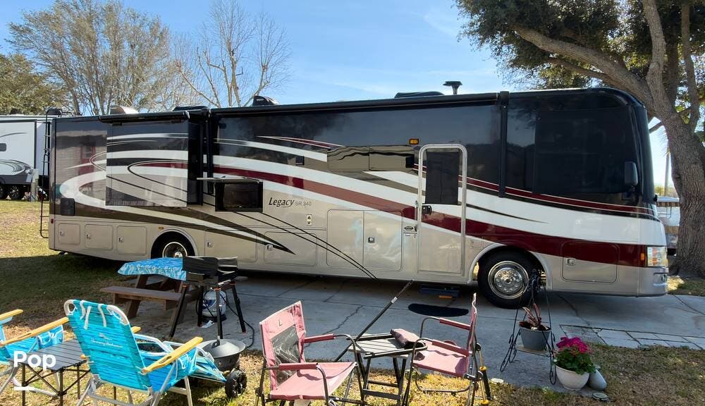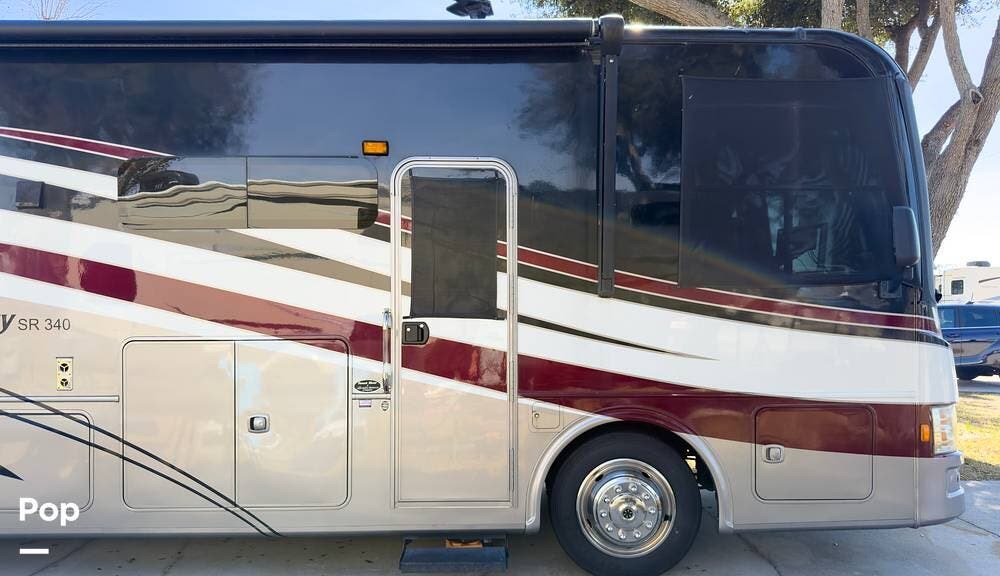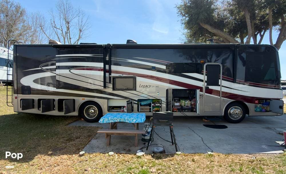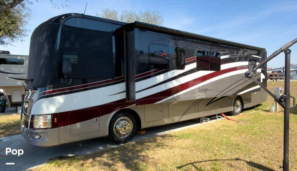 This 2015 Legacy SR340 360RB is a well-cared-for luxury diesel pusher that blends solid engineering with residential comfort in one of the most desirable rear-bath floor plans available. At just under 39 feet with two slide-outs, it offers a spacious layout that works equally well for extended travel or seasonal living.