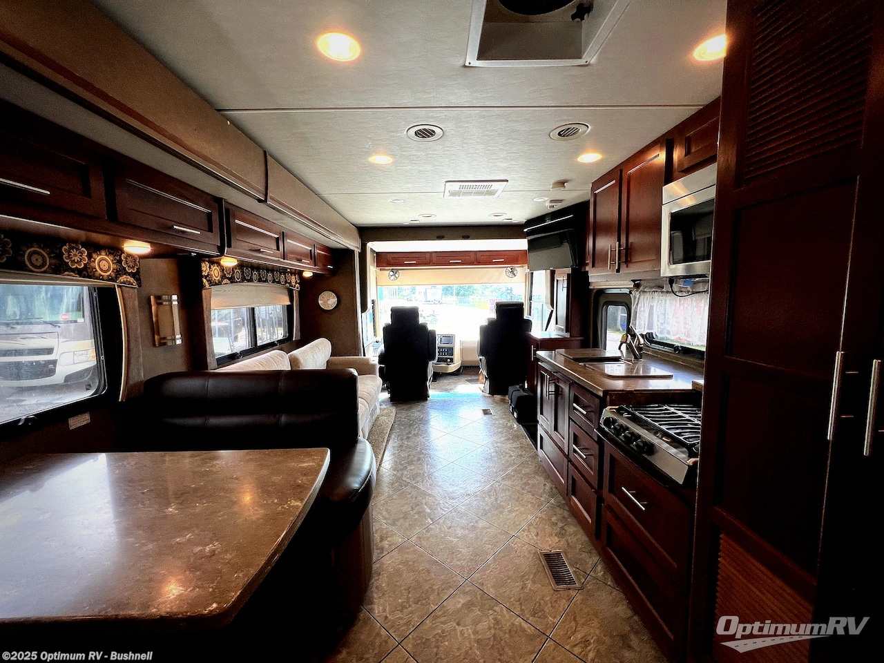 The Legacy 360RB motor home by Forest River offers a rear bath and a full wall slide.
