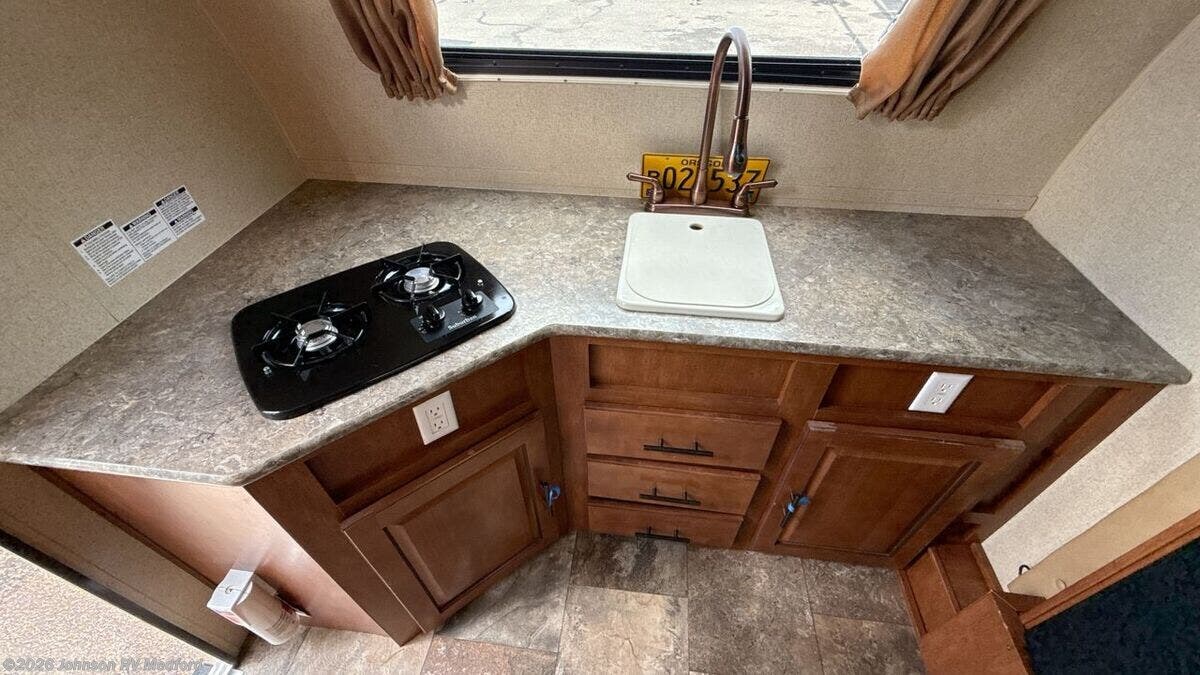 Features Include: Entry Step, Entry Door Deadbolt, 78-inch High Ceiling, Mini Blinds (vbm), Entertainment Center, 3-Speed Maxxair Fan, Hardwood Drawers, Convertible Dinette, Pantry, Seamless Countertops, Recessed Sink Cover, Systems Center, TV Antenna, Queen Bed, Bunk Beds (vbm), Aluminum Bed Base, Underbed Storage, Sink (vbm), Pocket Organizers, Toilet Mechanicals, Dual Battery Rack, 120v GFCI Outlet, 20k Furnace, AC Ready, 6-Gal DSI Hot Water, 12v Water Pump, Black Tank Flush, Drain Hose Carrier, 2-inch Coupler, Powder Coated Frame, Ultra Lube Hubs, Aluminum Wheels, Front Diamond Plate, LED Taillights