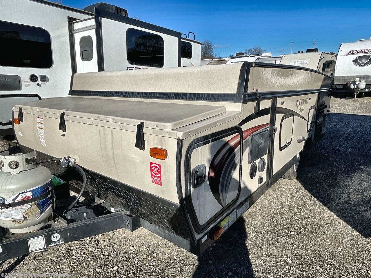 The Rockwood Premier 2516G offers a single slide out and tent end beds for extra space to maneuver inside this folding pop-up camper.