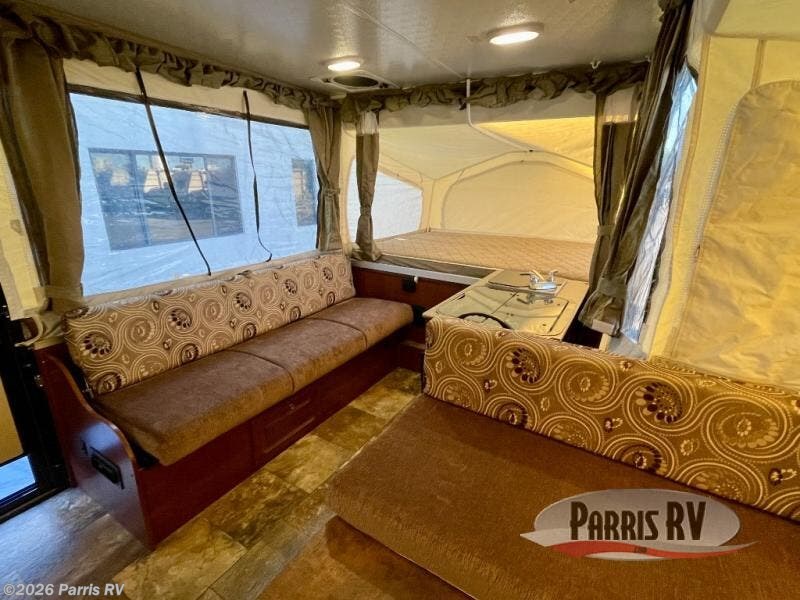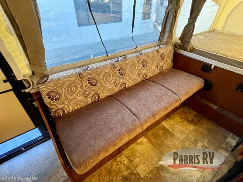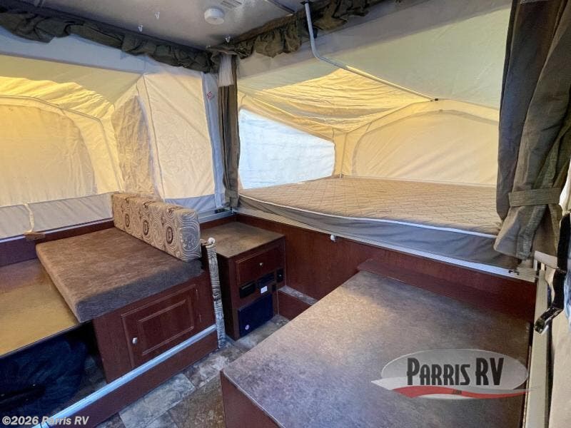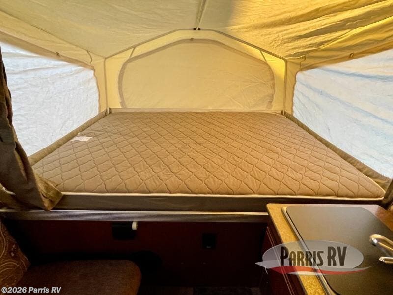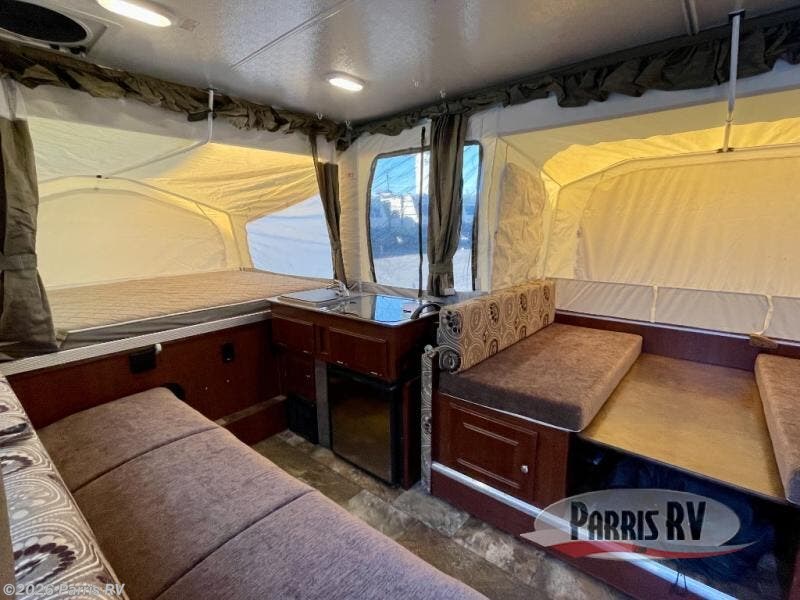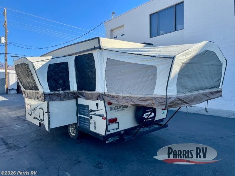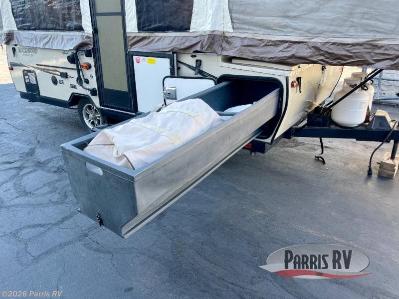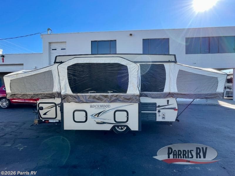 The Rockwood Premier 2516G offers a single slide out and tent end beds for extra space to maneuver inside this folding pop-up camper.