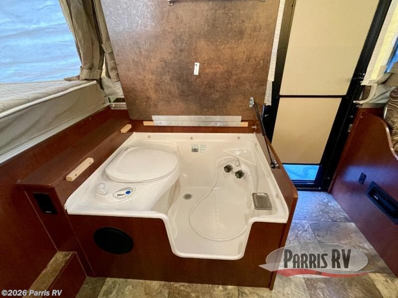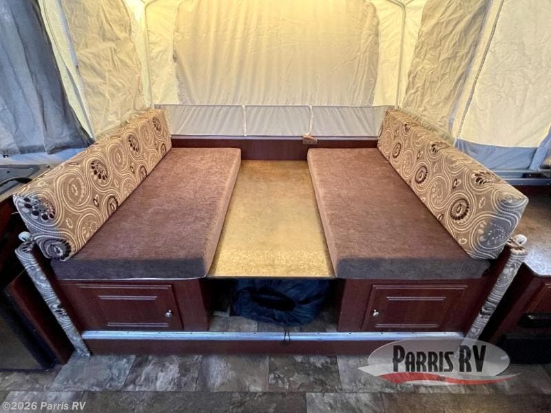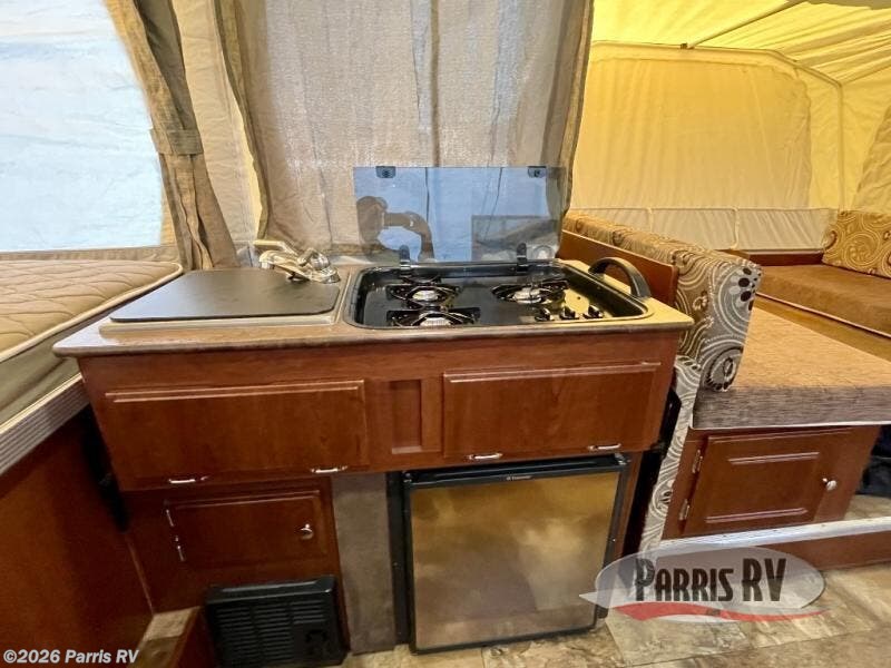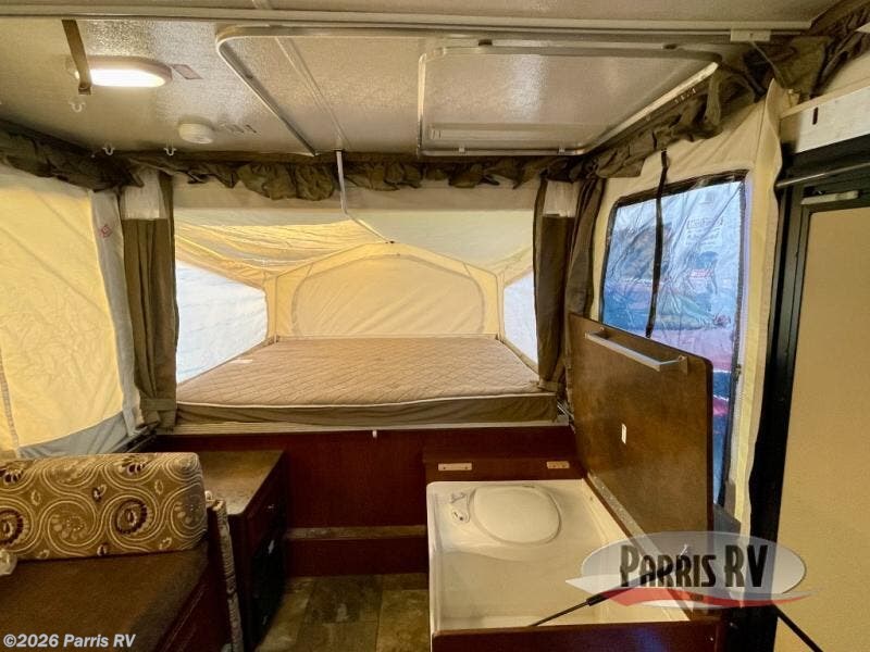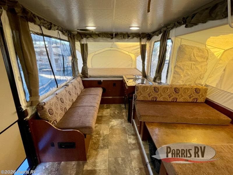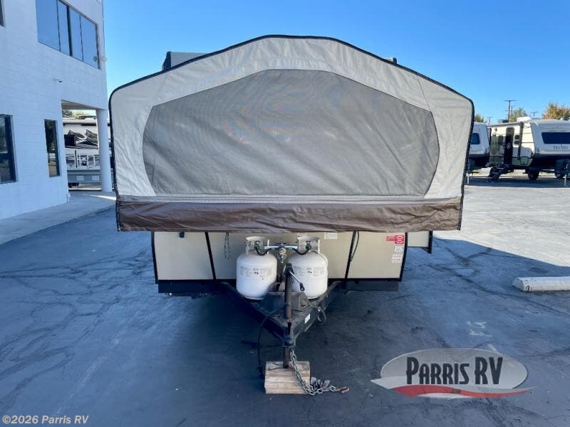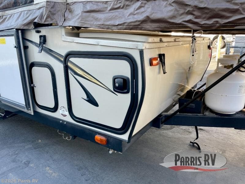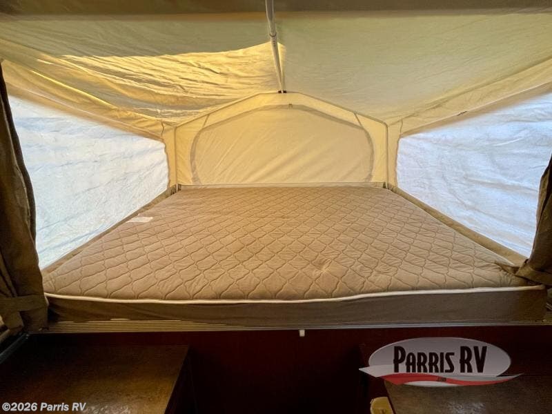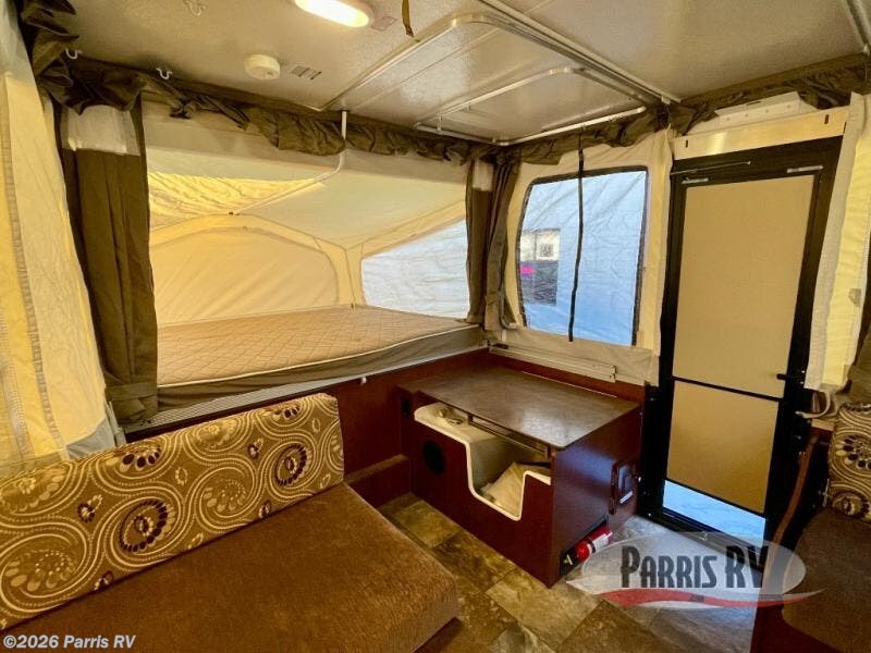 The Rockwood Premier 2516G offers a single slide out and tent end beds for extra space to maneuver inside this folding pop-up camper.