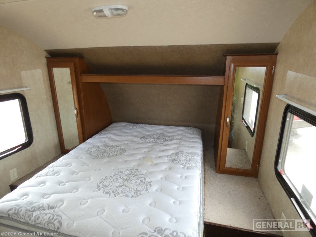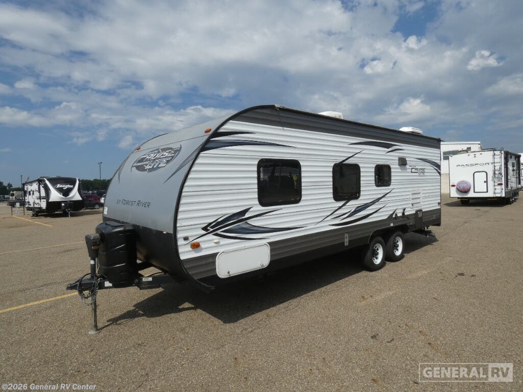 Experience the perfect blend of comfort and convenience with the 2015 Forest River Salem Cruise Lite 241QBXL. This travel trailer is designed for families and adventurers alike, offering a spacious interior that comfortably sleeps up to six. The front bedroom features a cozy queen bed, flanked by dual wardrobes for ample storage. The center living area is both practical and inviting, with a convertible sofa and dinette that provide additional sleeping spaces for guests. The well-equipped kitchen, complete with a three-burner cooktop and mid-size refrigerator, makes meal preparation a breeze. The rear bath layout ensures privacy and functionality, featuring a neo-angle shower with a curtain for a refreshing start to your day. With a single fresh water tank and generous gray and black water capacities, your off-grid adventures are well-supported. The 14 ft. manual awning extends your living space outdoors, perfect for enjoying the great outdoors in style. With a dry weight of just 4,135 lbs and a hitch weight of 499 lbs, this trailer is easy to tow, making it an ideal choice for both seasoned travelers and RV newcomers. For more details and to explore this model further, visit your nearest General RV dealership.