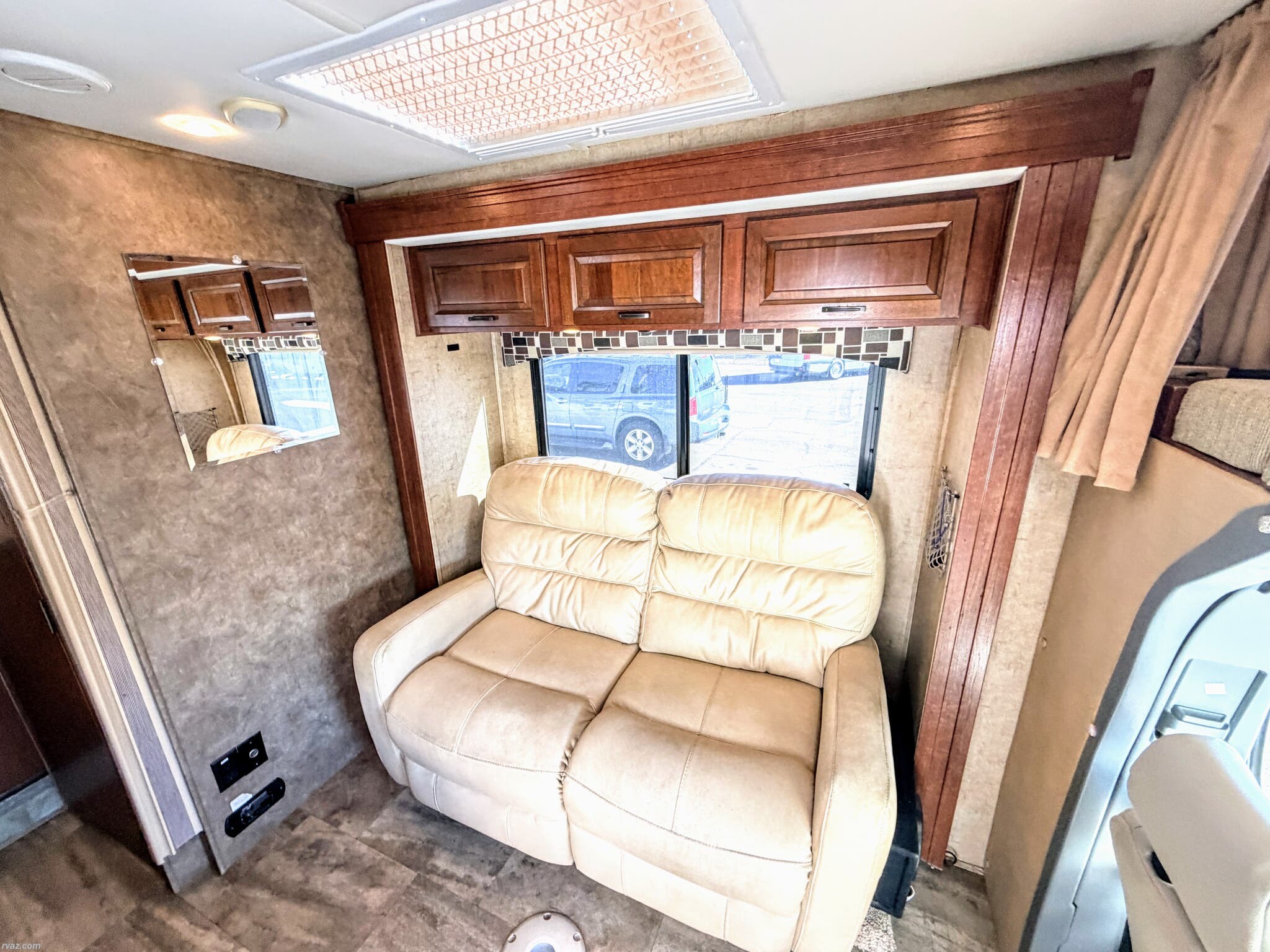 Booth Dinette, Day/Night Shades, Glass Shower Door, Kitchen Sink, Leather Furniture, Medicine Cabinet, Non-Smoking Unit, Overhead Cabinetry, Power Seats, Queen Bed, Removable Table, Roof Vents, Self Contained, Shower, Solid Surface Countertops, Toilet -