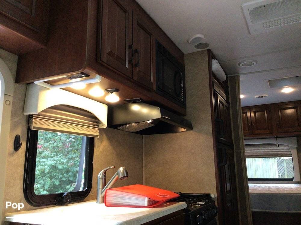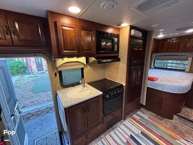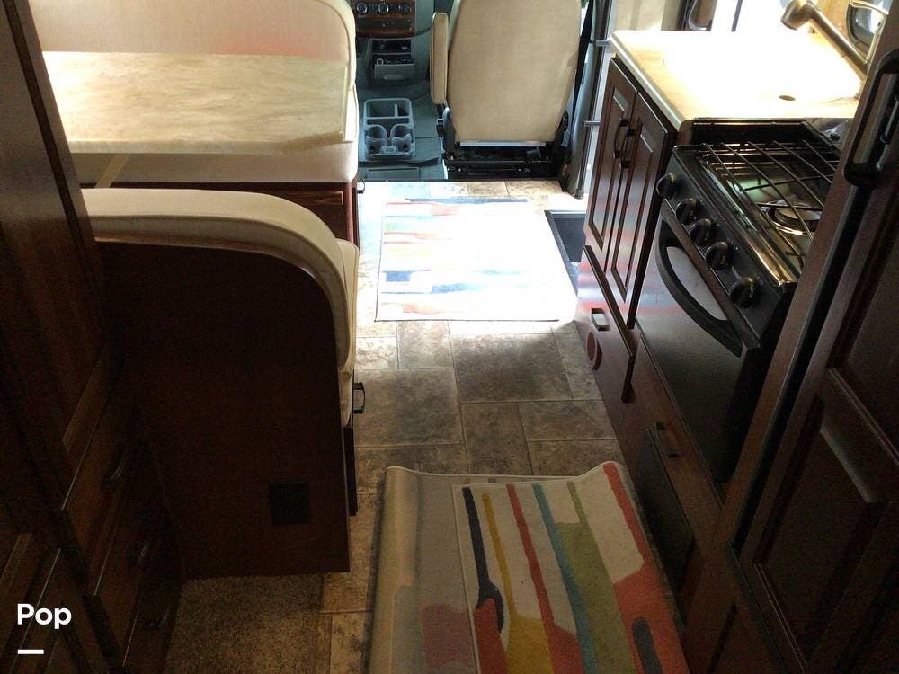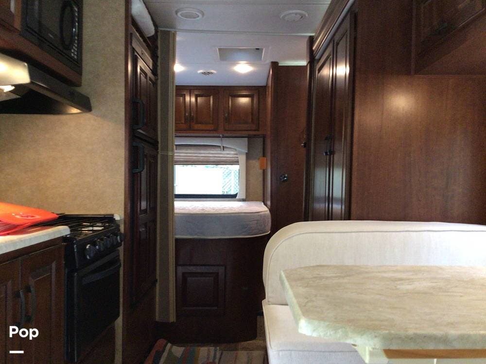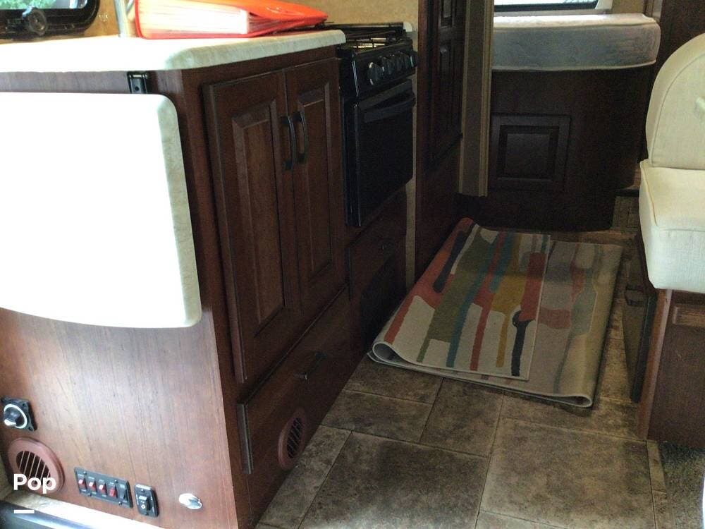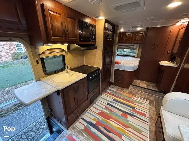This 2015 Solera 24S has an open floor plan with a single slide-out on the driver's side. The main living area is in the center of the motorhome. The kitchen and dinette are directly behind the cab. The rear of the motorhome is occupied by the bedroom and bathroom.