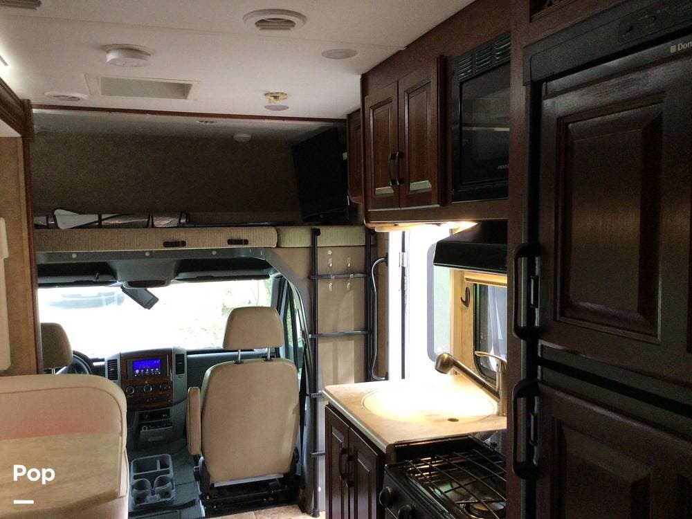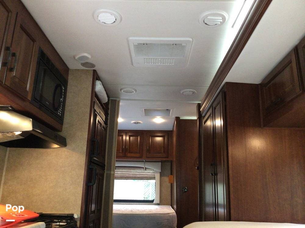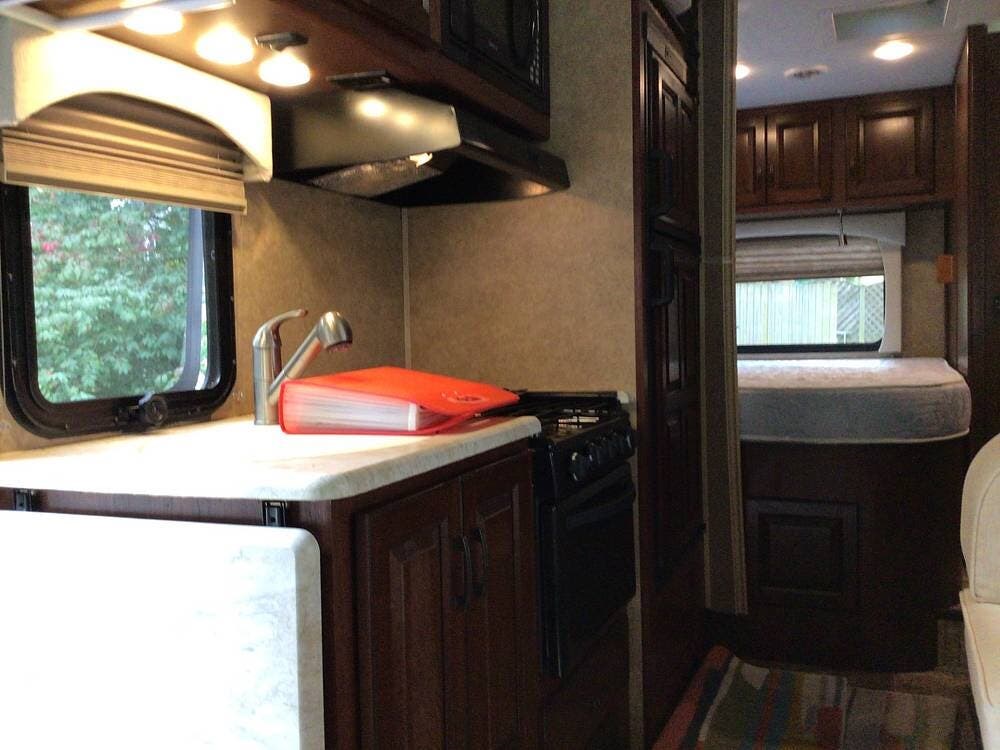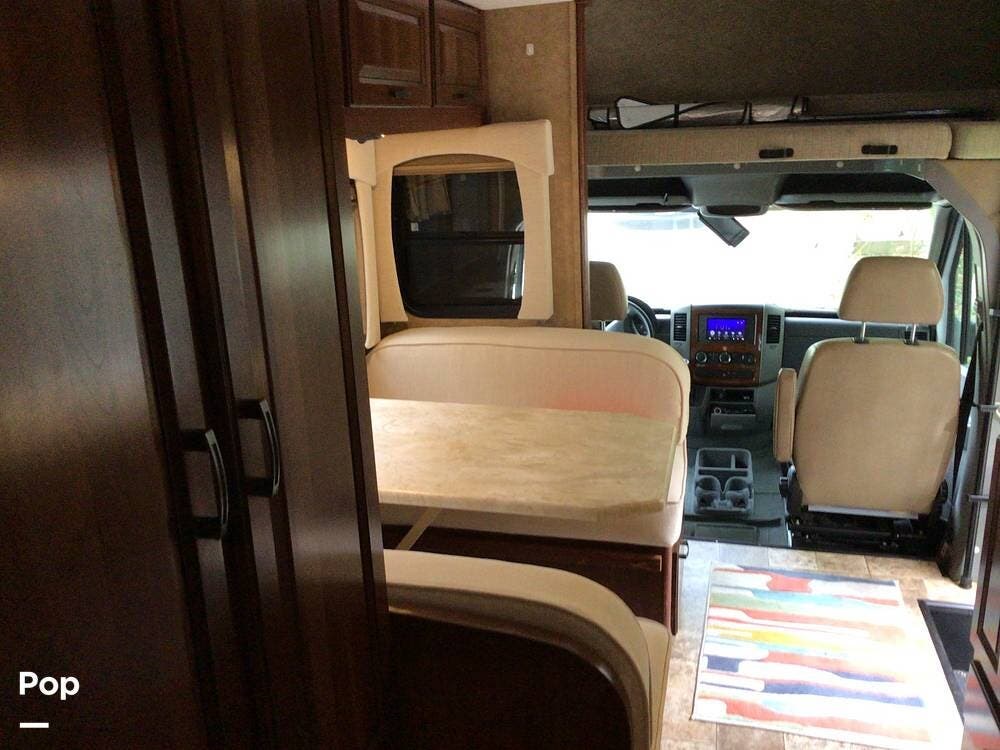 This 2015 Solera 24S has an open floor plan with a single slide-out on the driver's side. The main living area is in the center of the motorhome. The kitchen and dinette are directly behind the cab. The rear of the motorhome is occupied by the bedroom and bathroom.