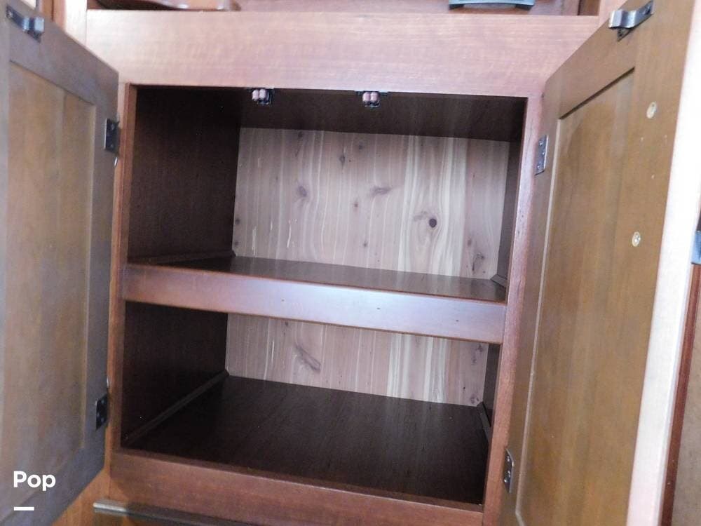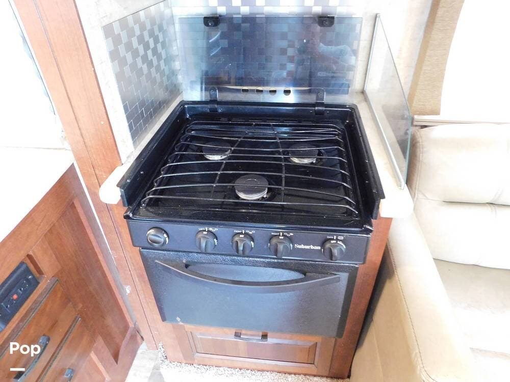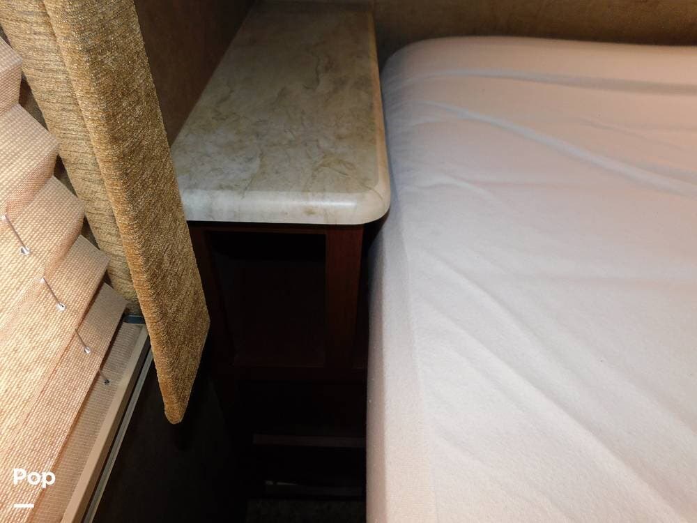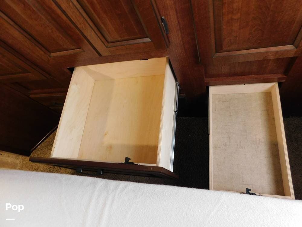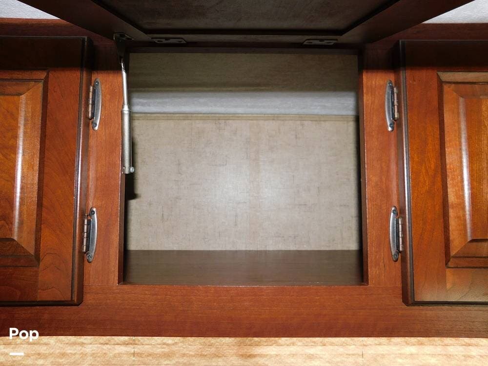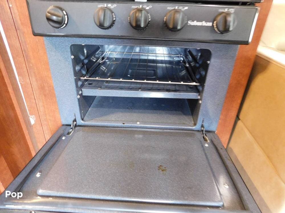 The kitchen is fully equipped with a three-burner range, oven, microwave, refrigerator, and a deep sink, making meal preparation convenient and enjoyable. The 3170DS has ample cabinetry and countertop space, including a flip-up counter extension.