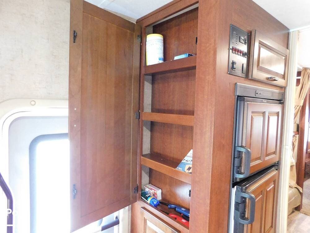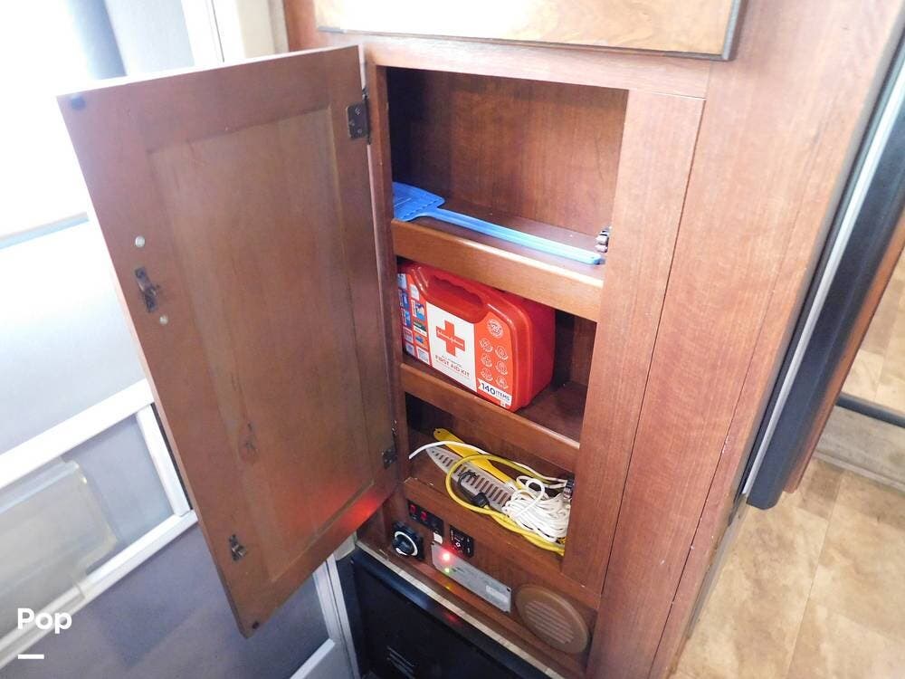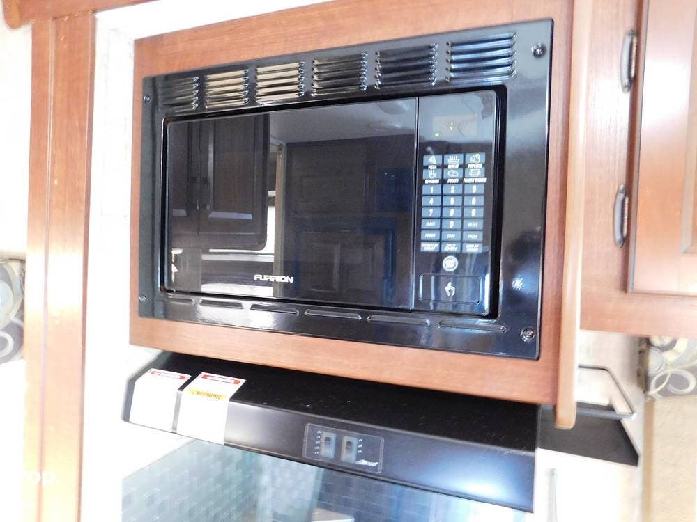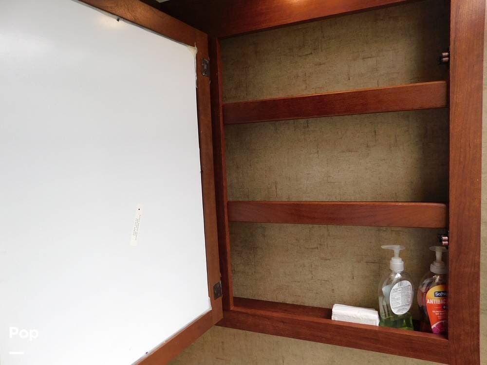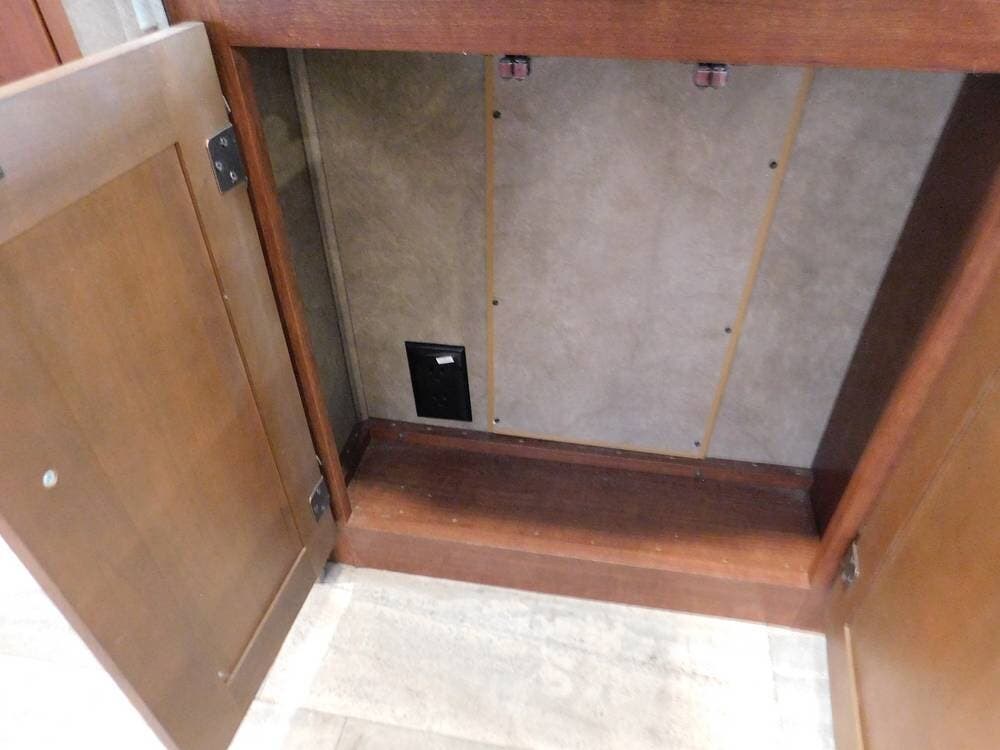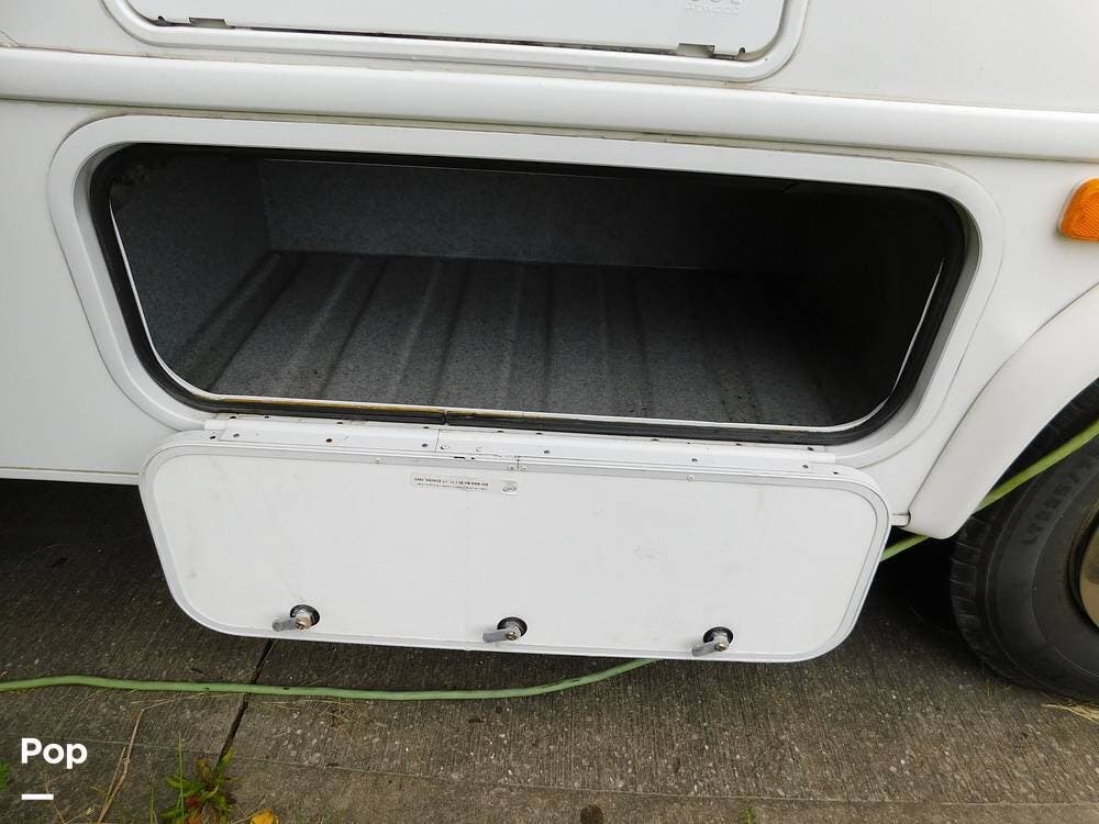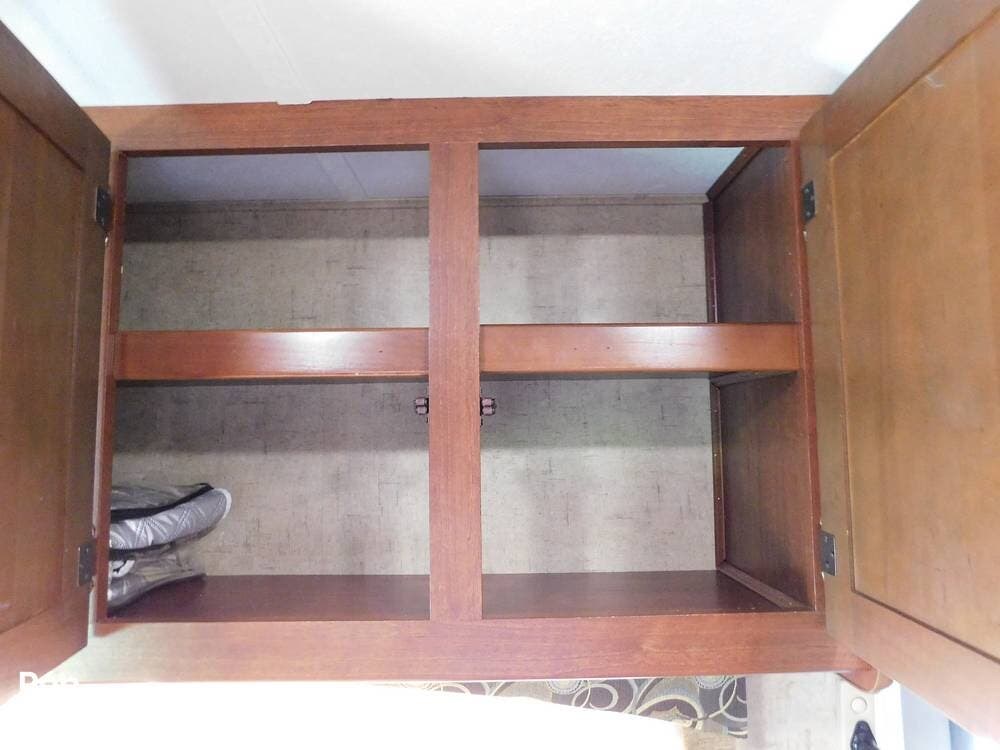 The kitchen is fully equipped with a three-burner range, oven, microwave, refrigerator, and a deep sink, making meal preparation convenient and enjoyable. The 3170DS has ample cabinetry and countertop space, including a flip-up counter extension.