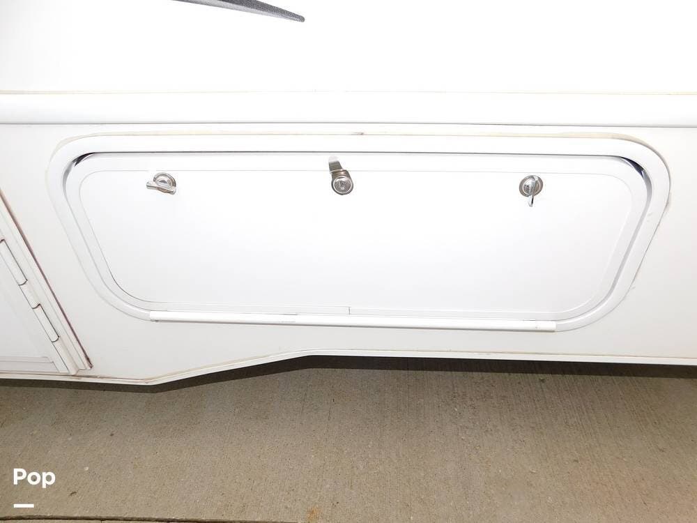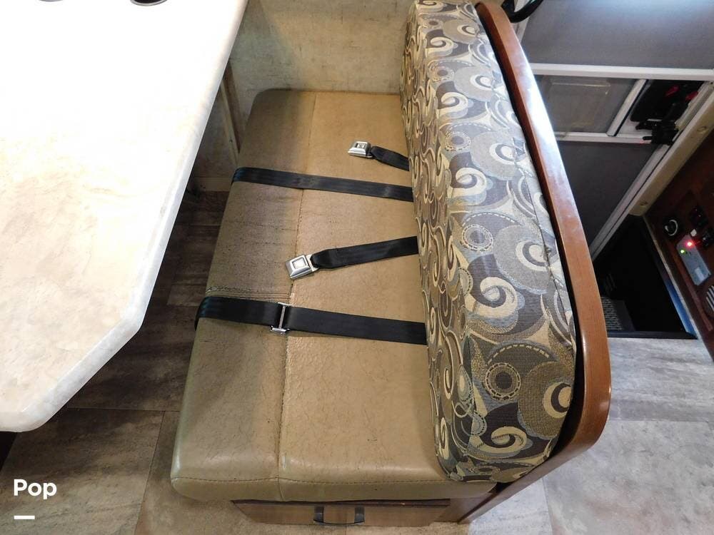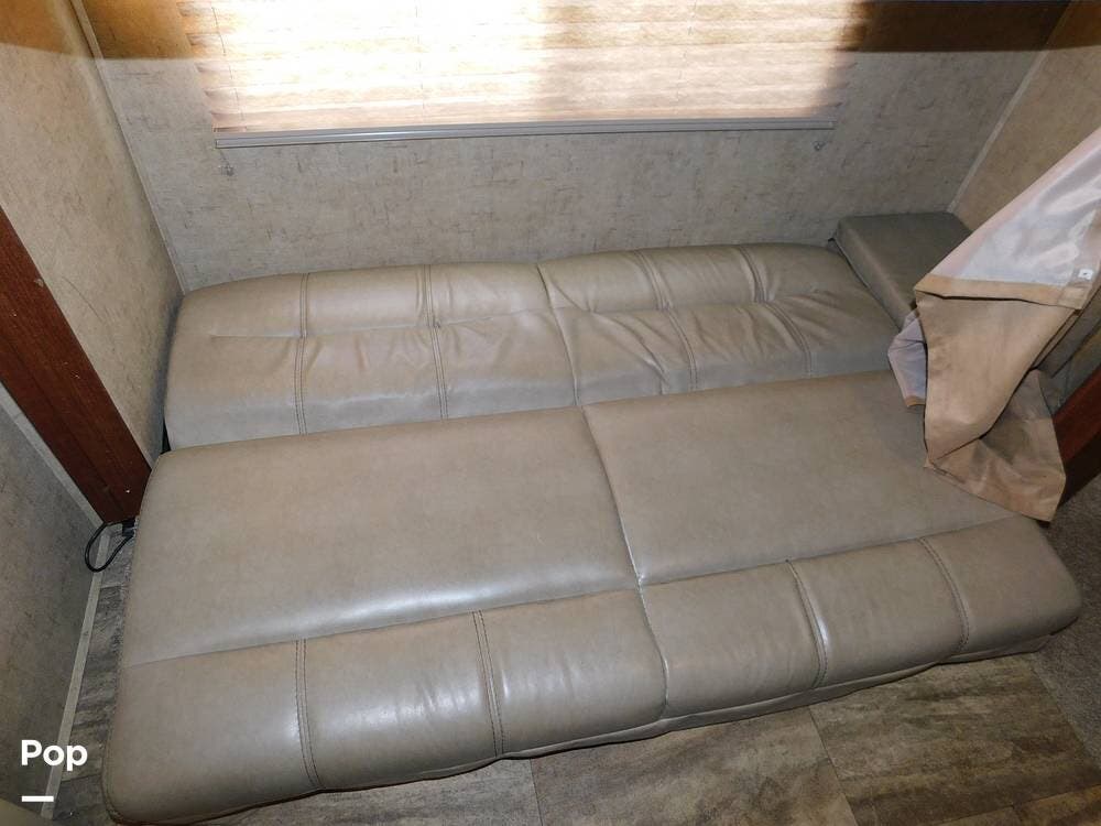 Inside, the Sunseeker 3170DS is thoughtfully appointed with a spacious and inviting layout. The main living area includes a large slide-out that expands the interior, creating generous space for relaxing and entertaining. A convertible dinette and a jackknife sofa offer seating and sleeping options, complemented by large windows that let in natural light and provide panoramic views of the surroundings.