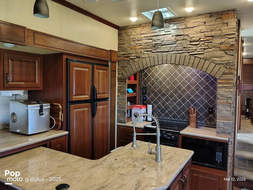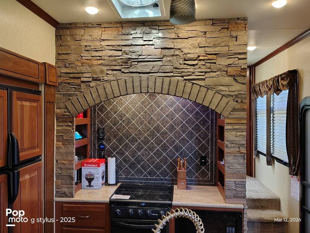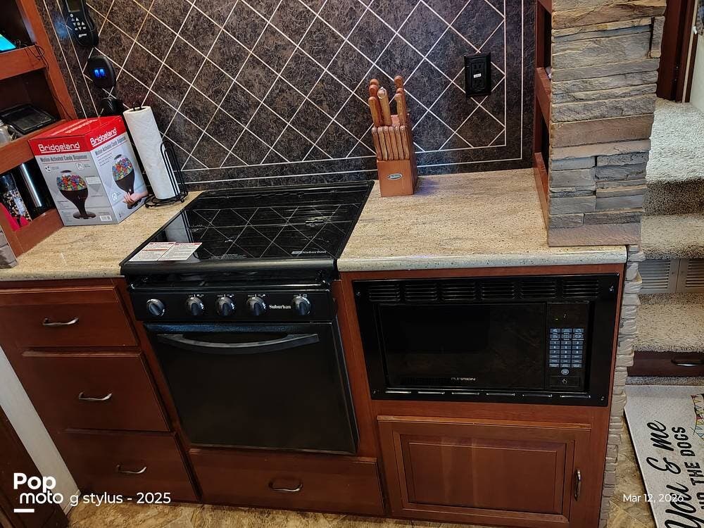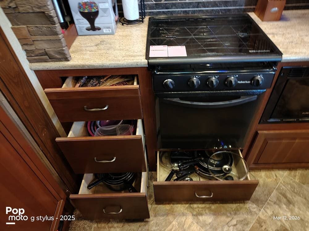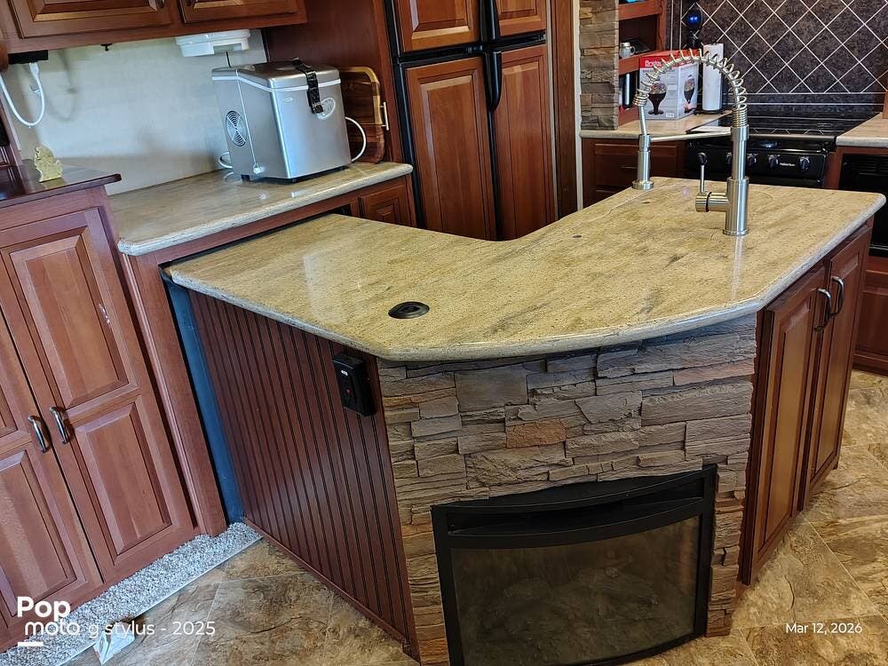 There is also a 12-foot garage space with an in-floor motorcycle chock. A ramp makes entry into the garage space a breeze.