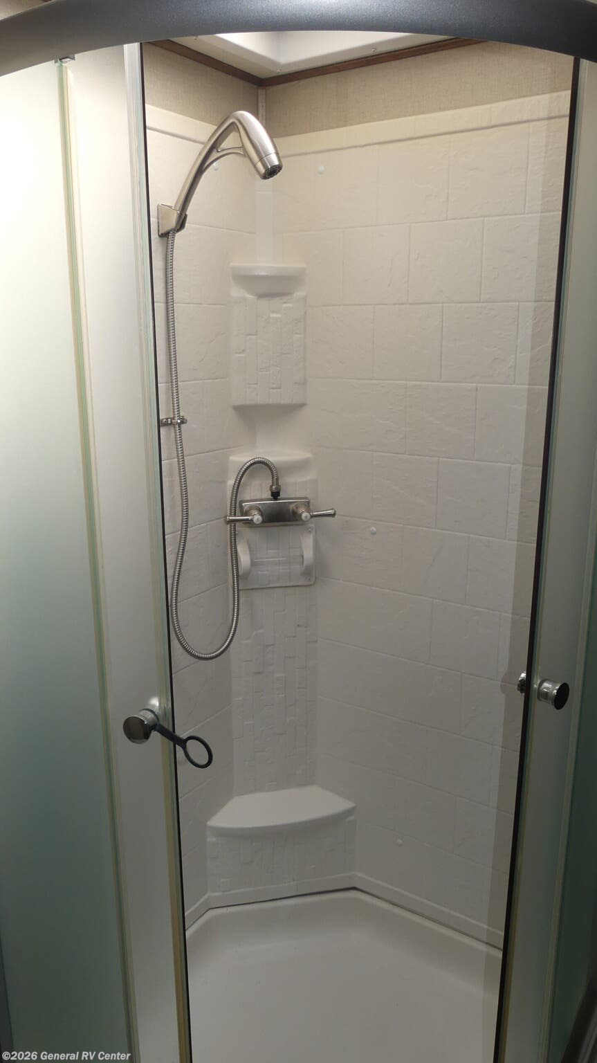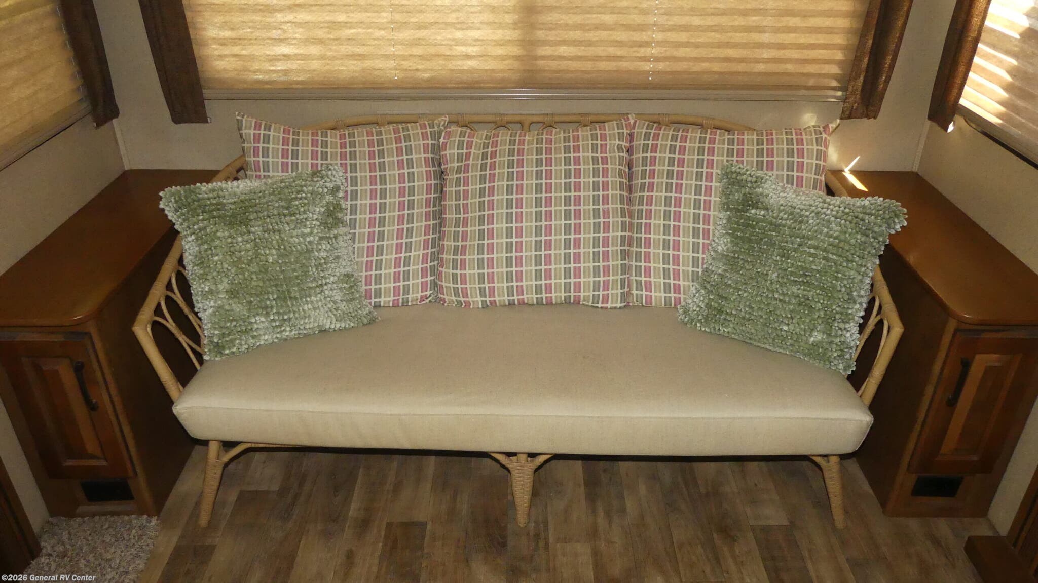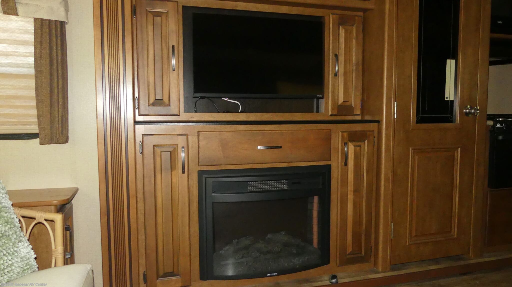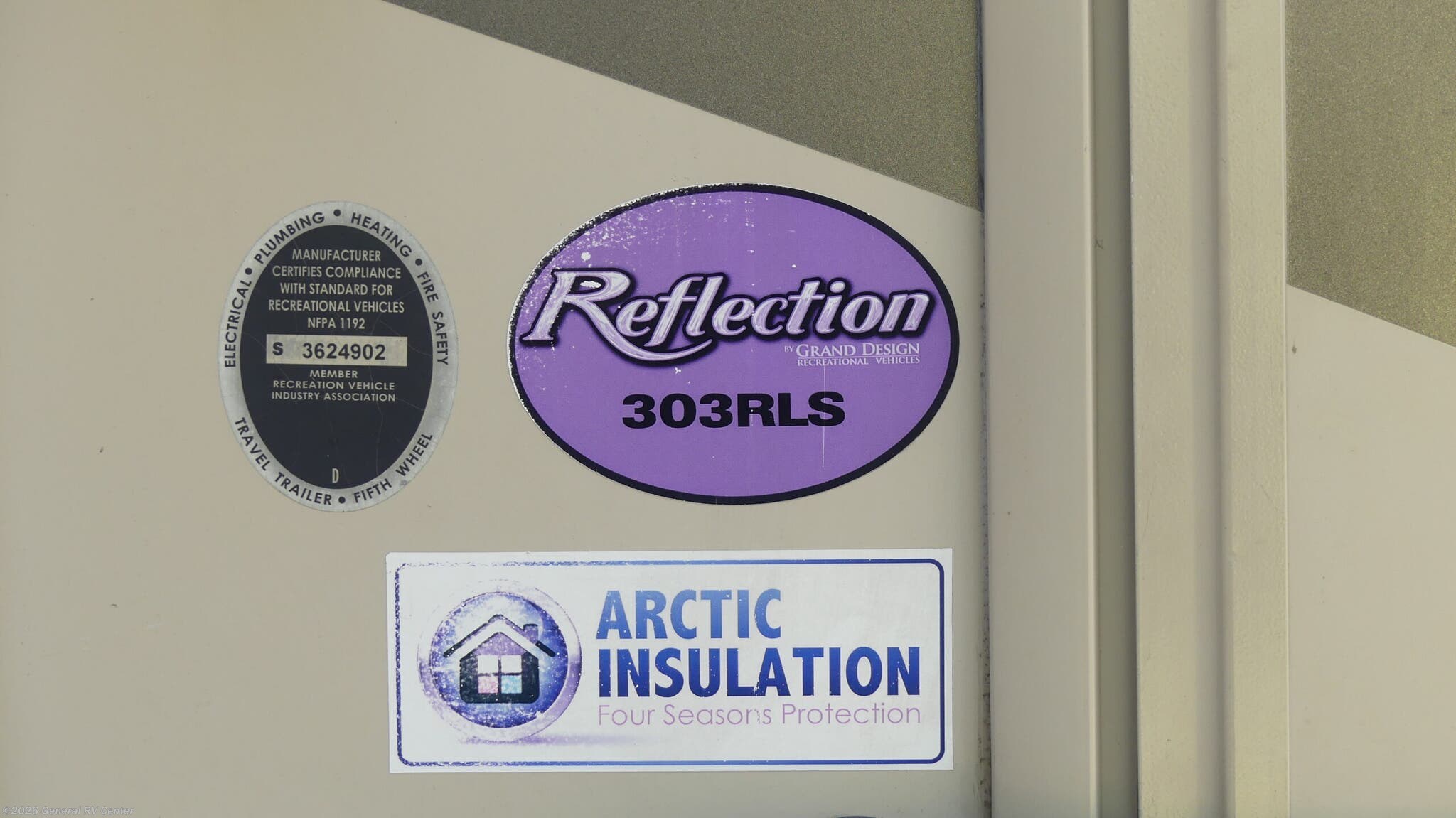 This Grand Design Reflection mid-sized fifth wheel 303RLS is the perfect weekend camper featuring triple slide outs and a rear living area. Once you step inside you will immediately be impressed with the spaciousness of the living room and kitchen area. With two slide outs the open concept feel of home really shows. To your immediate left of the entrance you will see an optional dinette along with theater seating in a slide out. There is a center kitchen island which includes a double sink for easy food prep and cleanup. Directly opposite is a second larger slide featuring a refrigerator, a three burner range, and pantry for dry goods storage. This slide also features a entertainment center with 39" TV with overhead storage cabinets and fireplace. There is also a hutch with overhead storage straight in from the entrance to the right of the kitchen island. Tucked in the rear of the fifth wheel you will find a hide-a-bed sofa that is perfect for relaxing and also provides additional sleeping when needed (queen sized bed). Back at the entry door you can step up to the right and find a front master suite with bathroom accessible from the hall door, or from within the bedroom. Enjoy a restful nights sleep in a comfortable queen bed including overhead storage cabinets and nightstands beside the bed. There is a slide out with wardrobes, and linen cabinet that falls within the bath when the sliding door is closed. In the bath you will find a corner shower with skylight, a nice vanity with sink, toilet, and so much more!