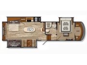 The 2015 Solitude 325X by Grand Design is a fifth-wheel RV designed for extended stays or full-time living. It features a spacious layout with three slide-outs, providing ample living space.