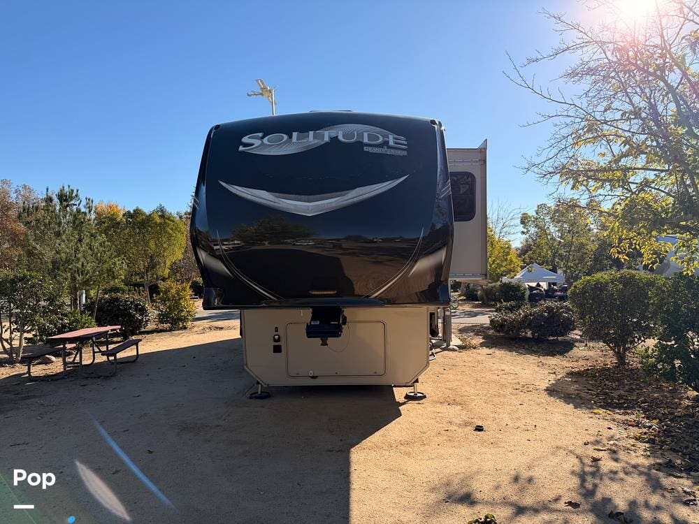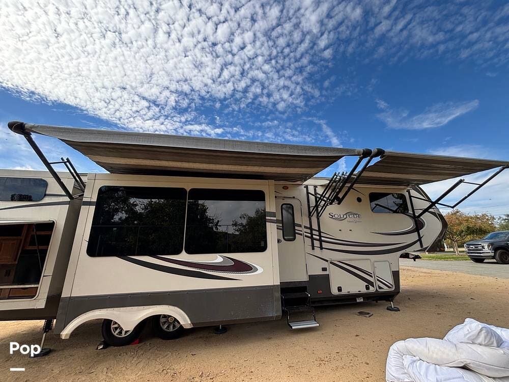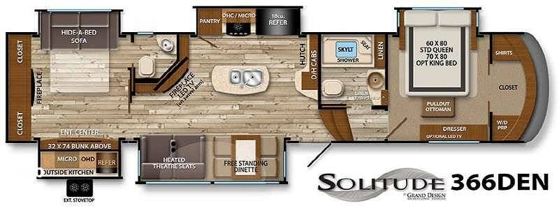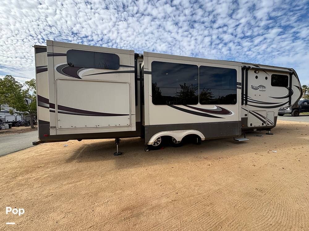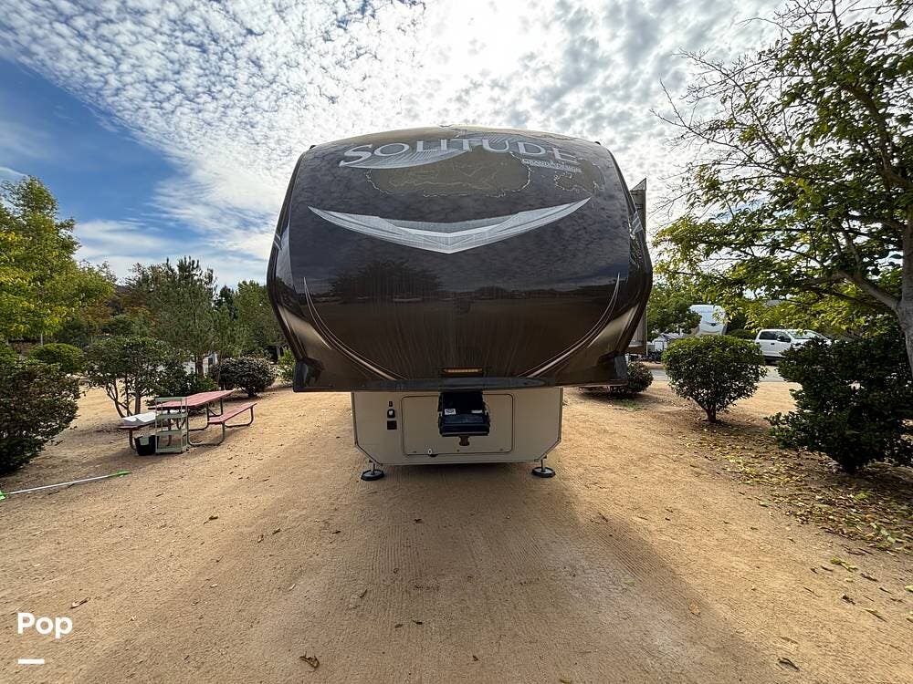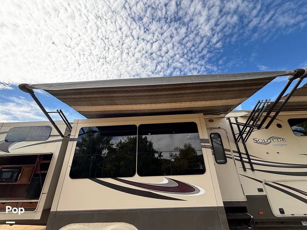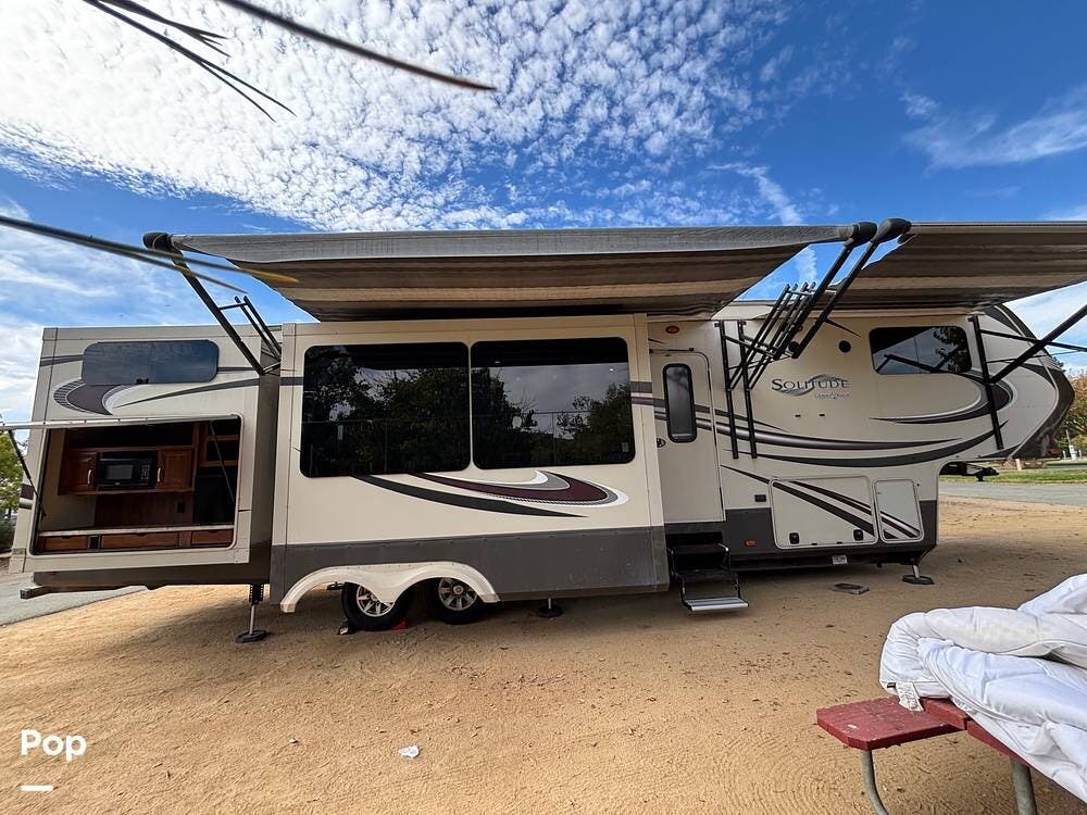 This 2015 Solitude 366 DEN is a high-end fifth wheel designed for long-term or full-time living, with the comforts of home.