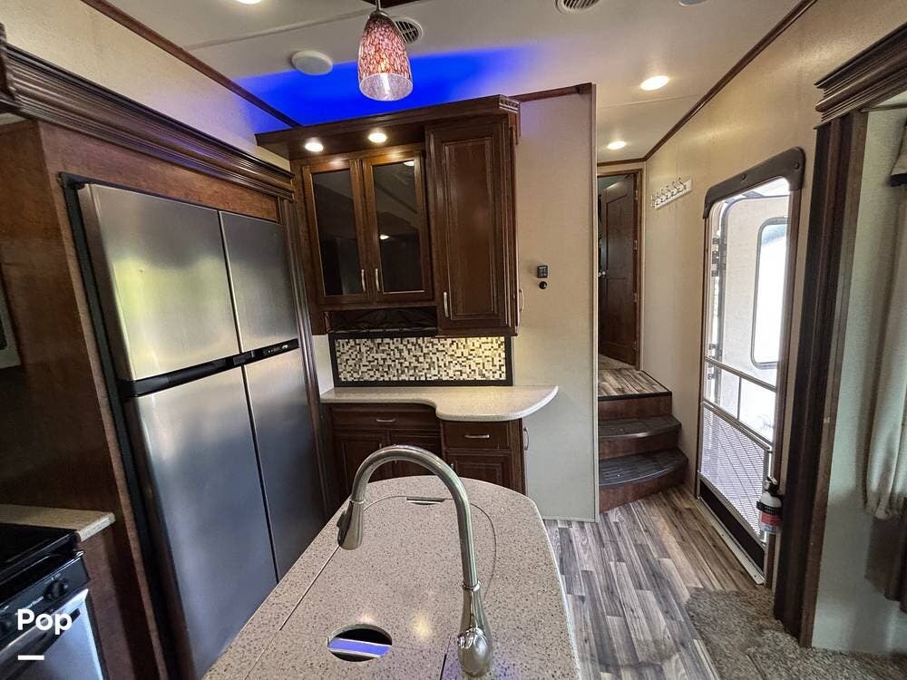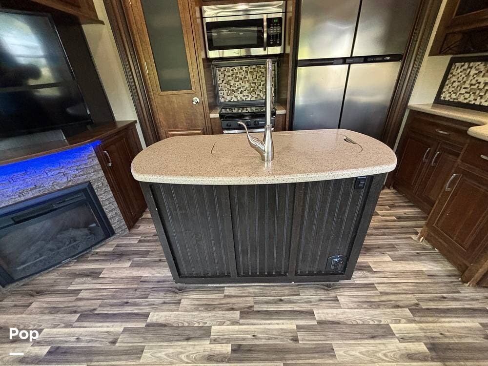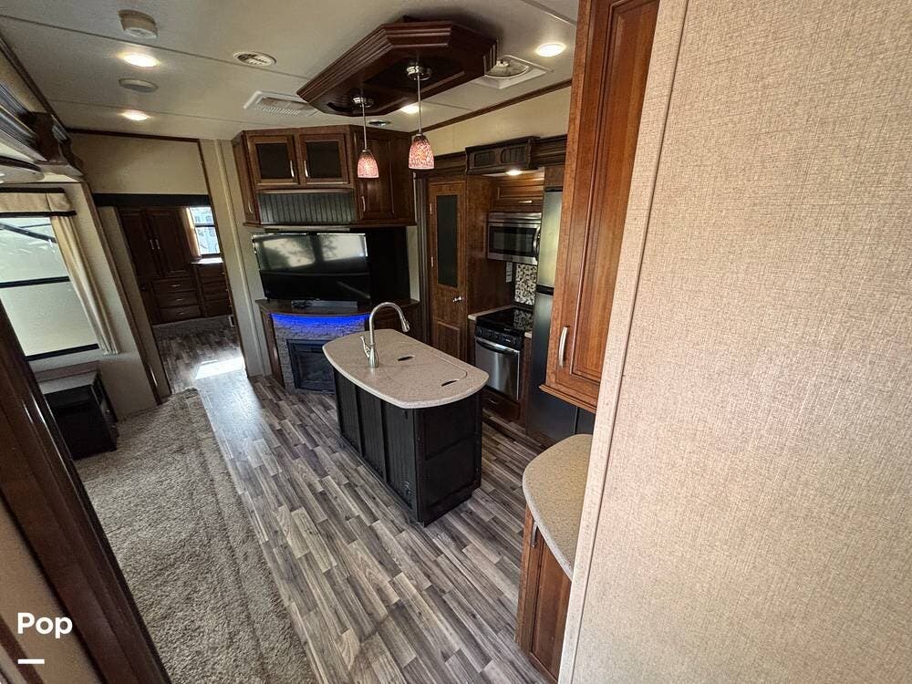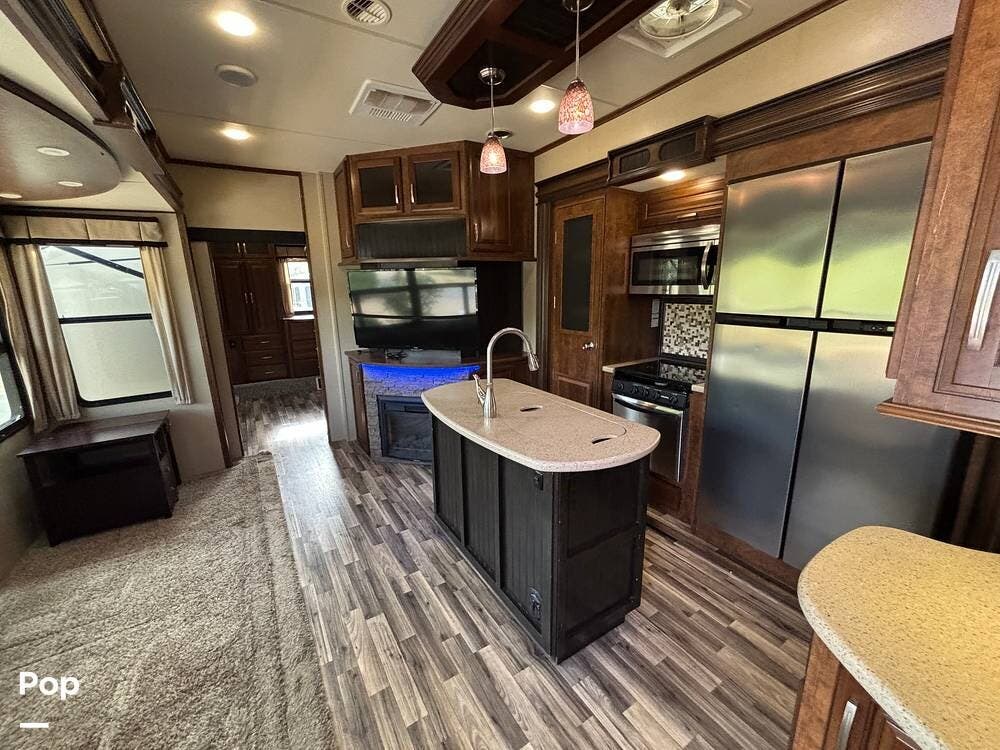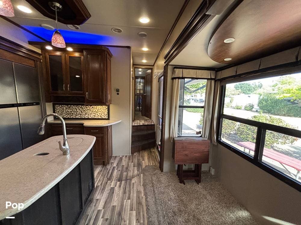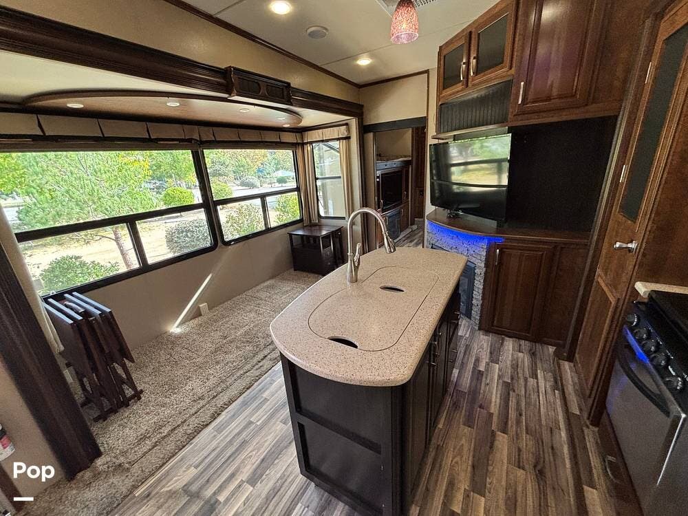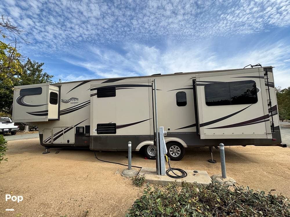 This 2015 Solitude 366 DEN is a high-end fifth wheel designed for long-term or full-time living, with the comforts of home.