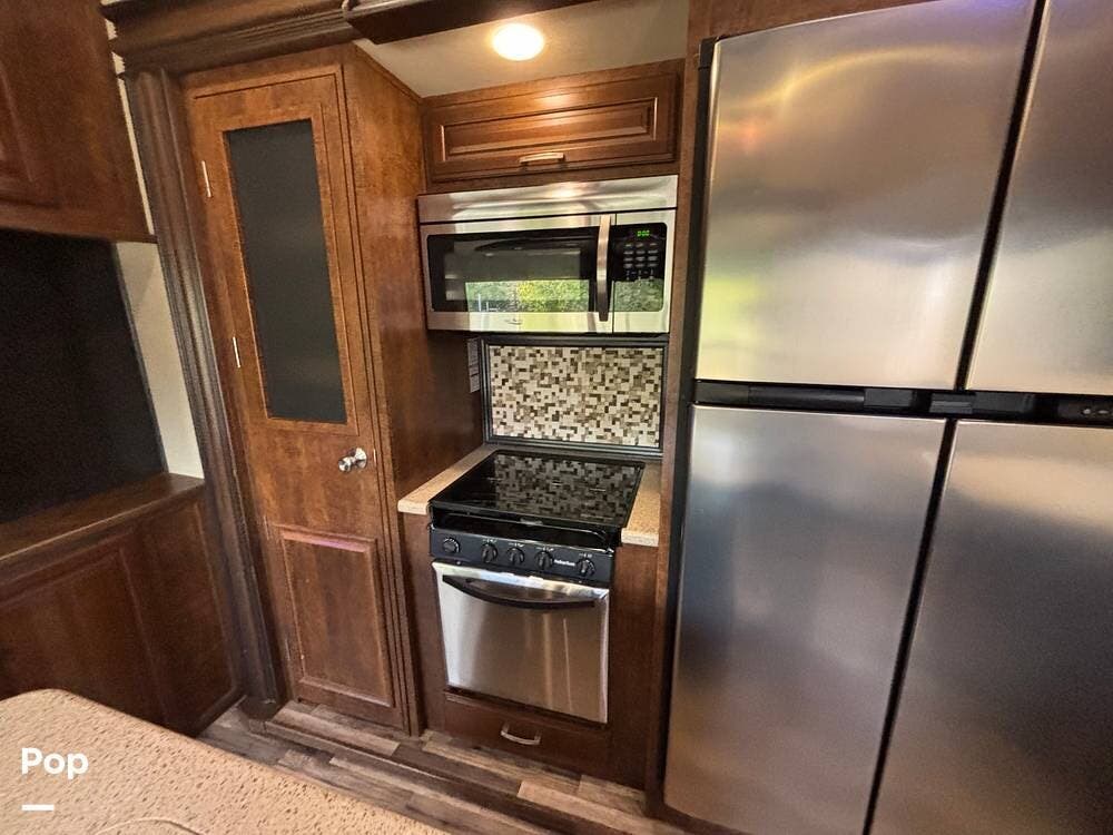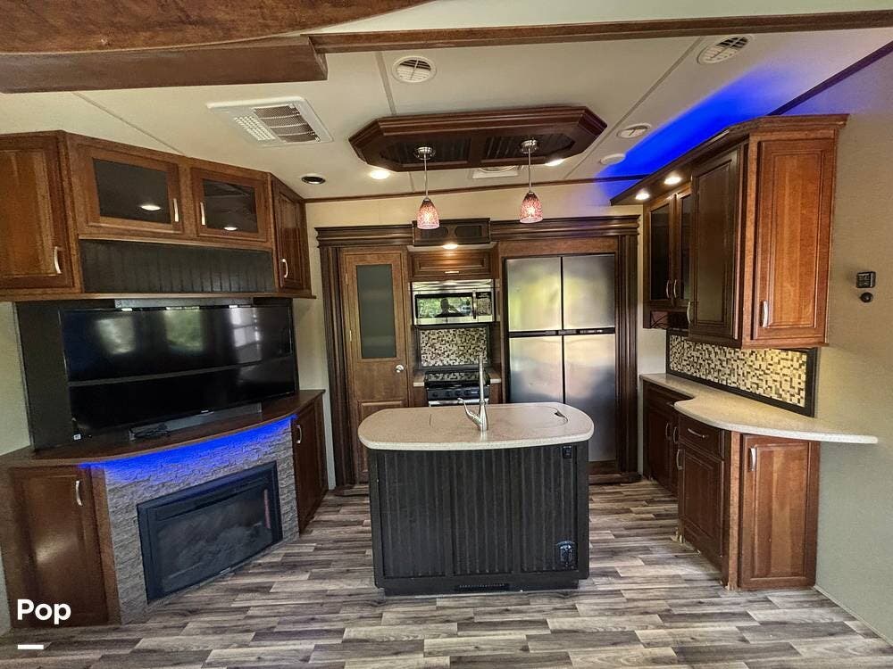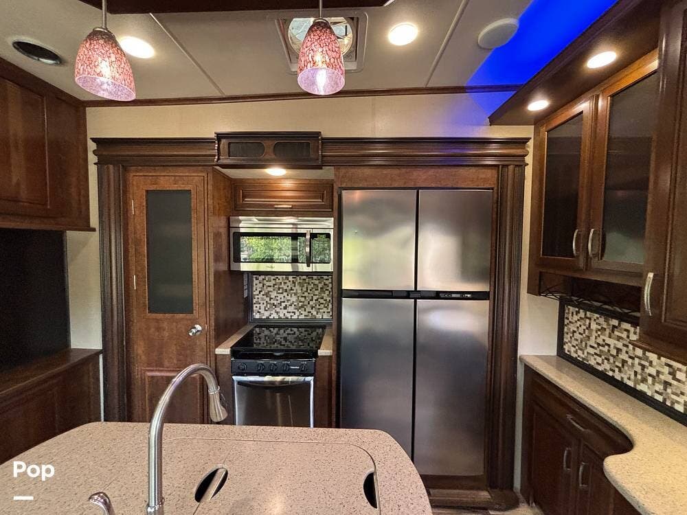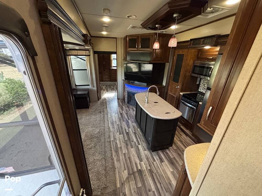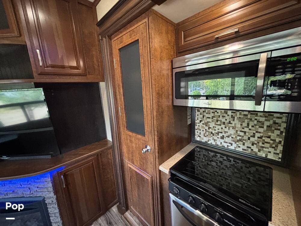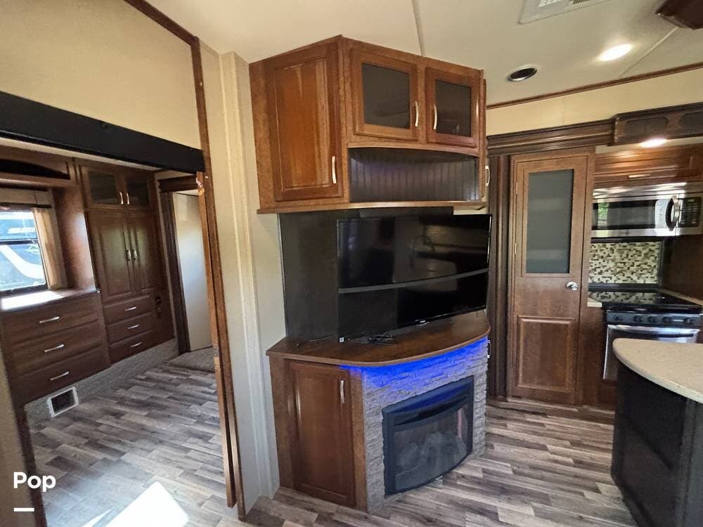 This 2015 Solitude 366 DEN is a high-end fifth wheel designed for long-term or full-time living, with the comforts of home.