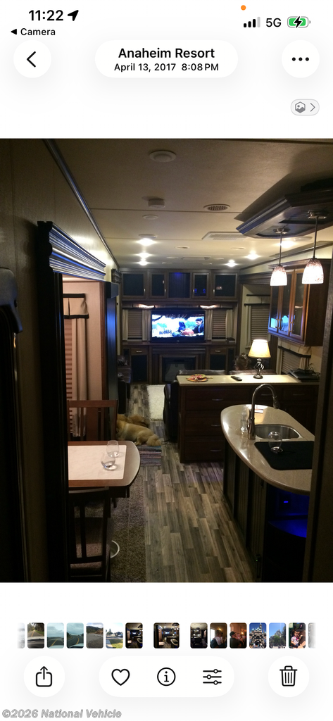 Step inside and you?ll be welcomed by a spacious rear entertainment layout that feels more like a high-end condo than a camper. The living room features opposing slides for maximum space, plush seating, an electric fireplace, and a large entertainment center?perfect for unwinding after a day of exploration. The gourmet kitchen offers solid-surface countertops, stainless steel appliances, and abundant storage, while the elegant dining area provides the perfect setting for home-cooked meals on the road.