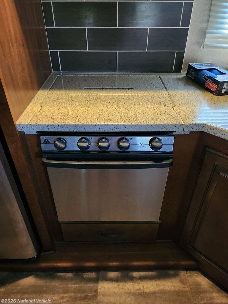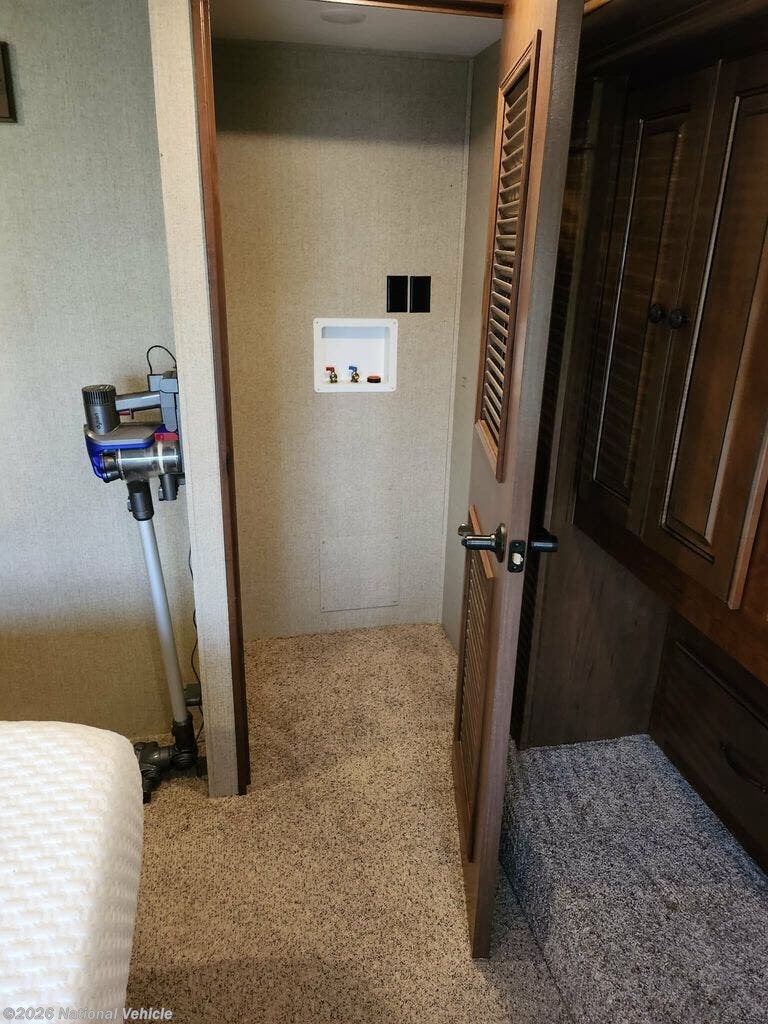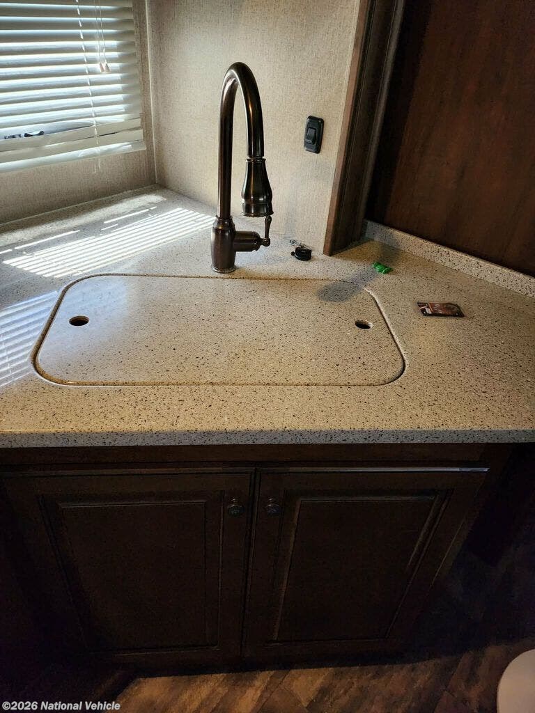 On the exterior, enjoy features like power awnings, pass-through storage, and a power leveling system that makes setup quick and easy. The sleek design and durable build ensure this fifth wheel is ready for wherever your travels take you.