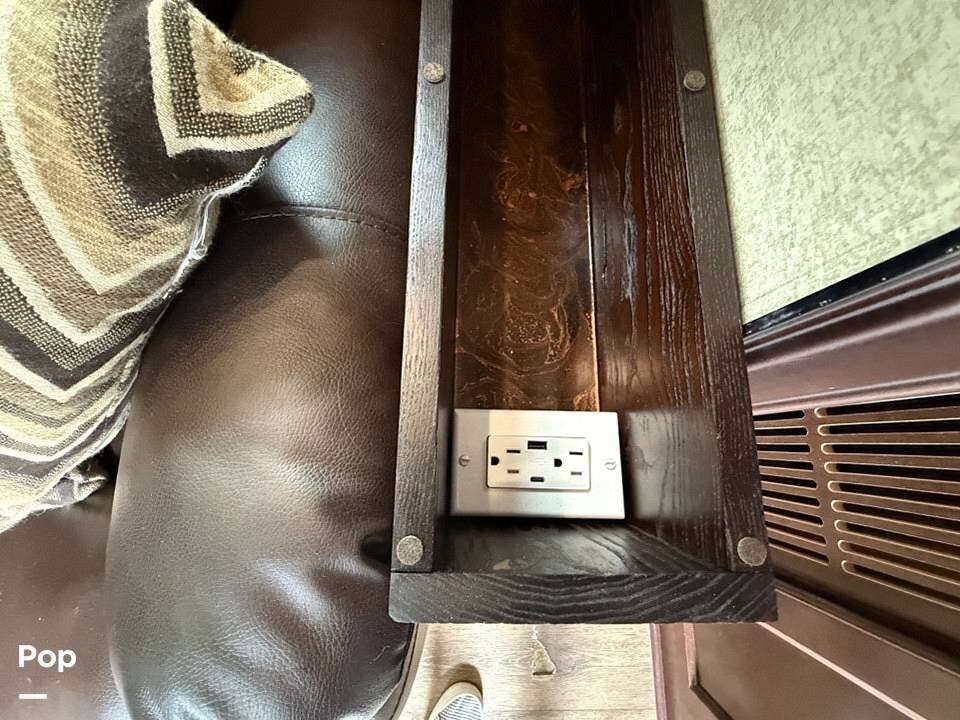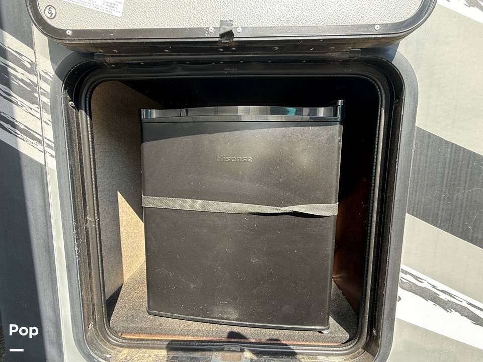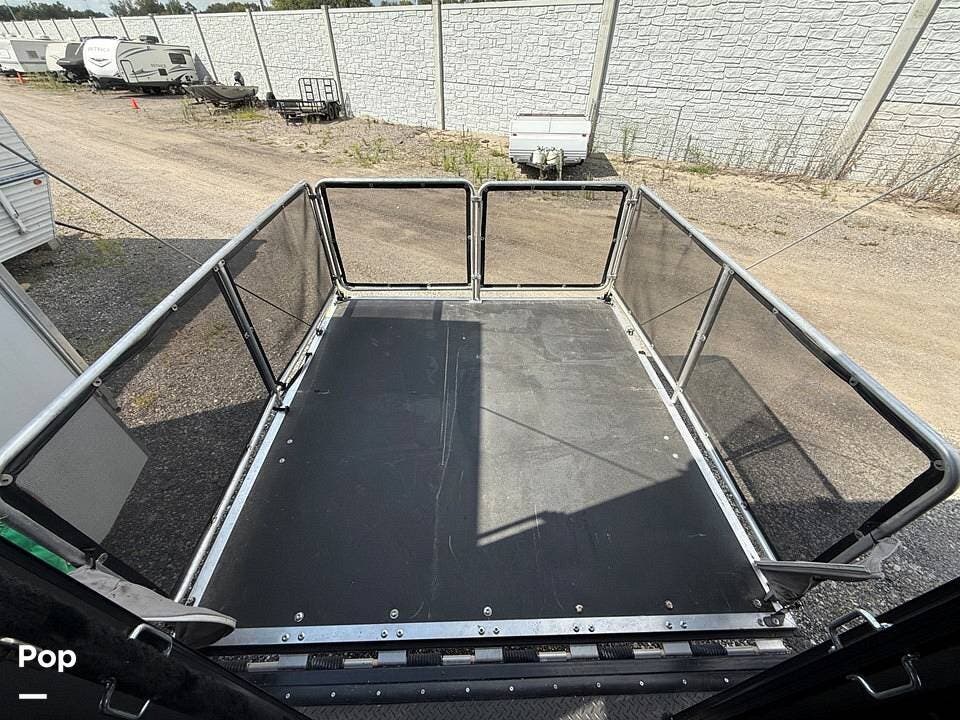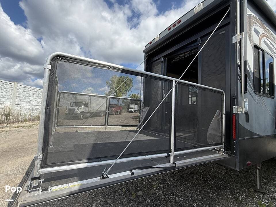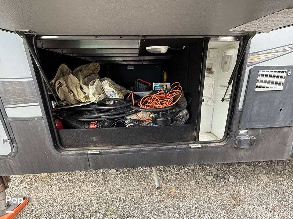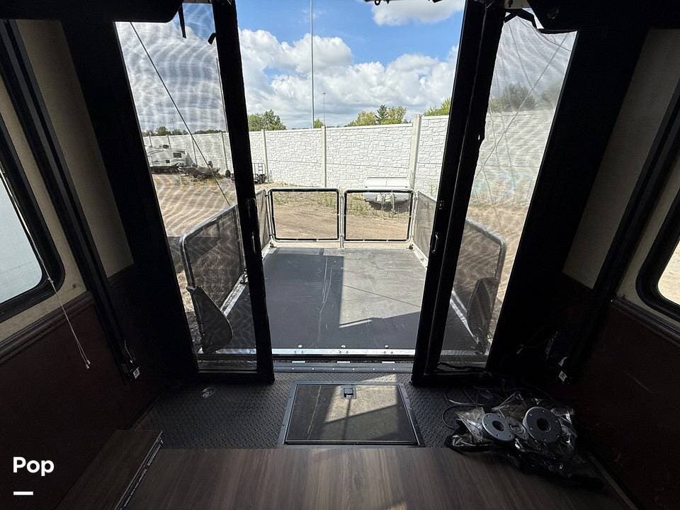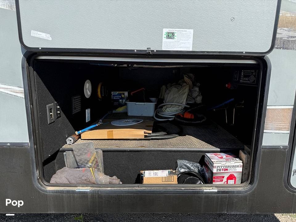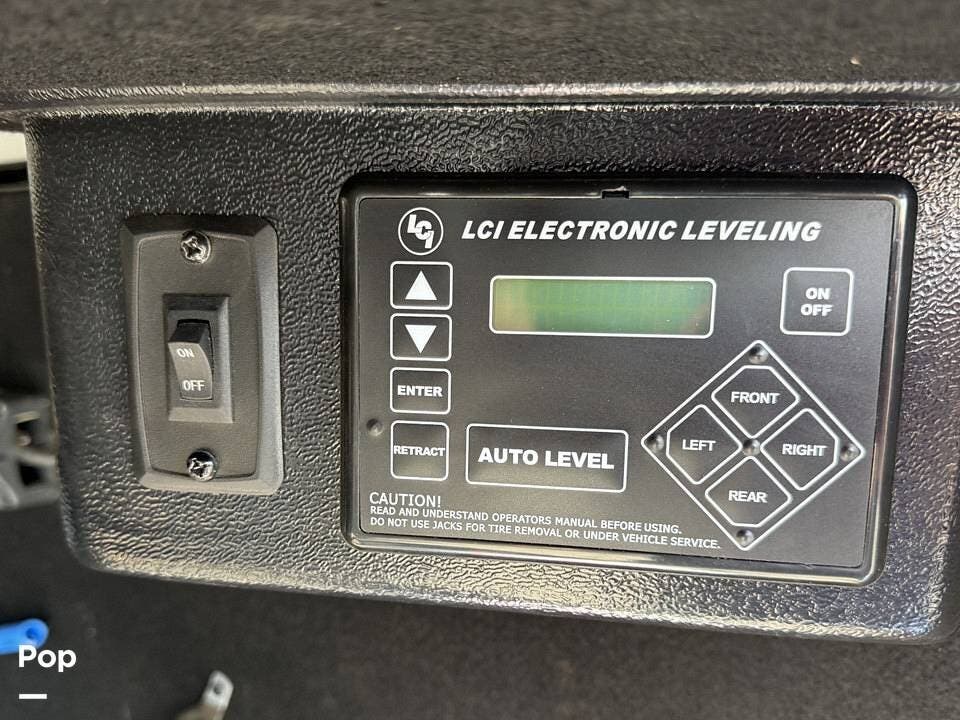 There is ample storage throughout, with a large pass-through compartment in front. The power awning and exterior speakers create the perfect outdoor living space, while the automatic hydraulic leveling system makes setup effortless.