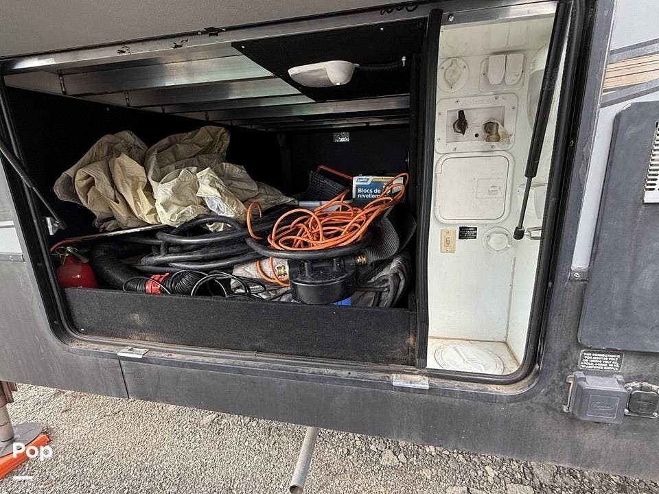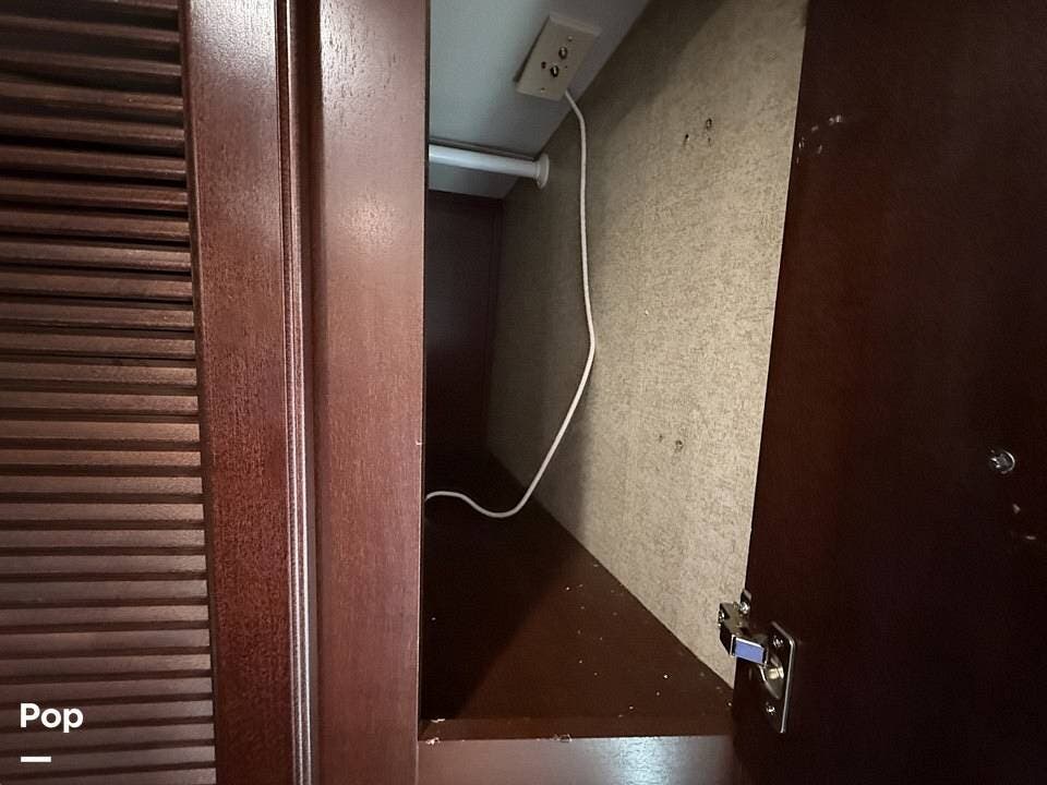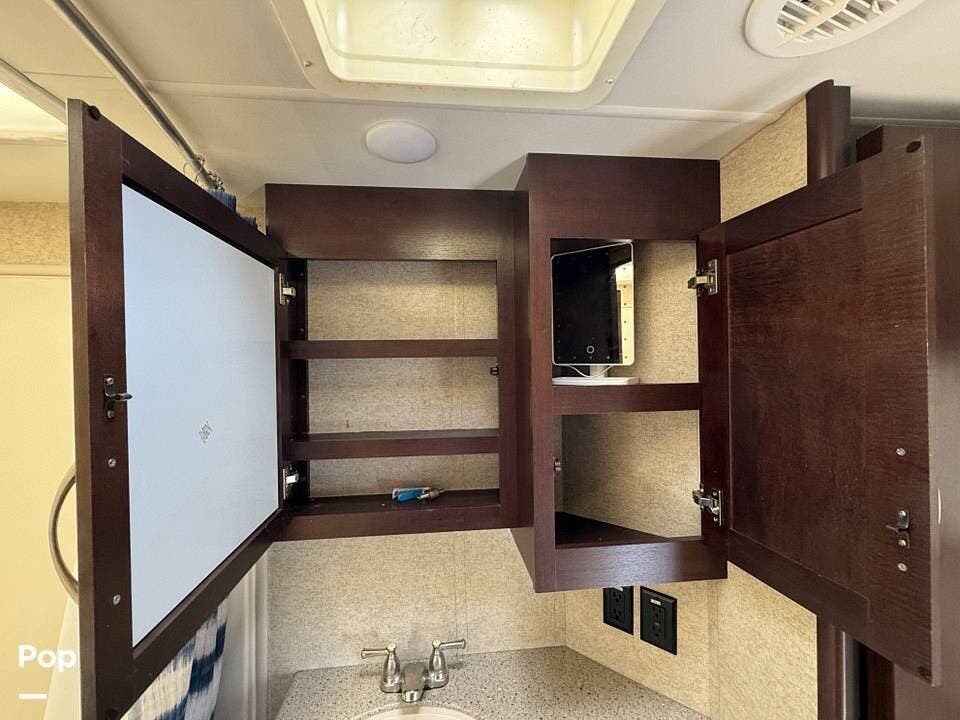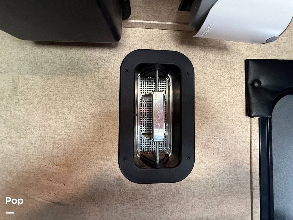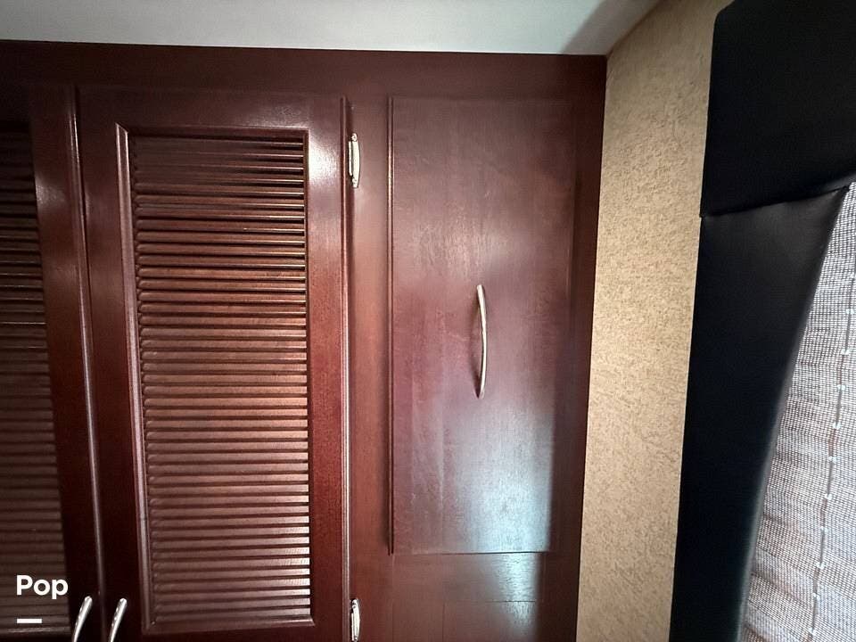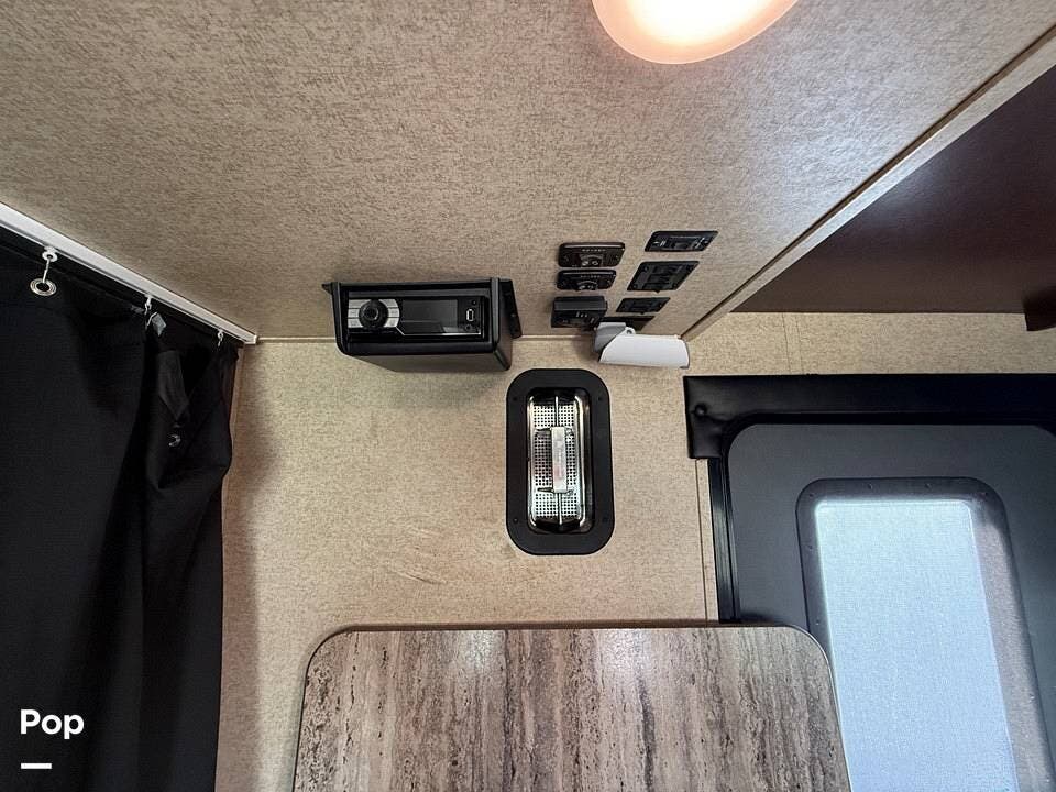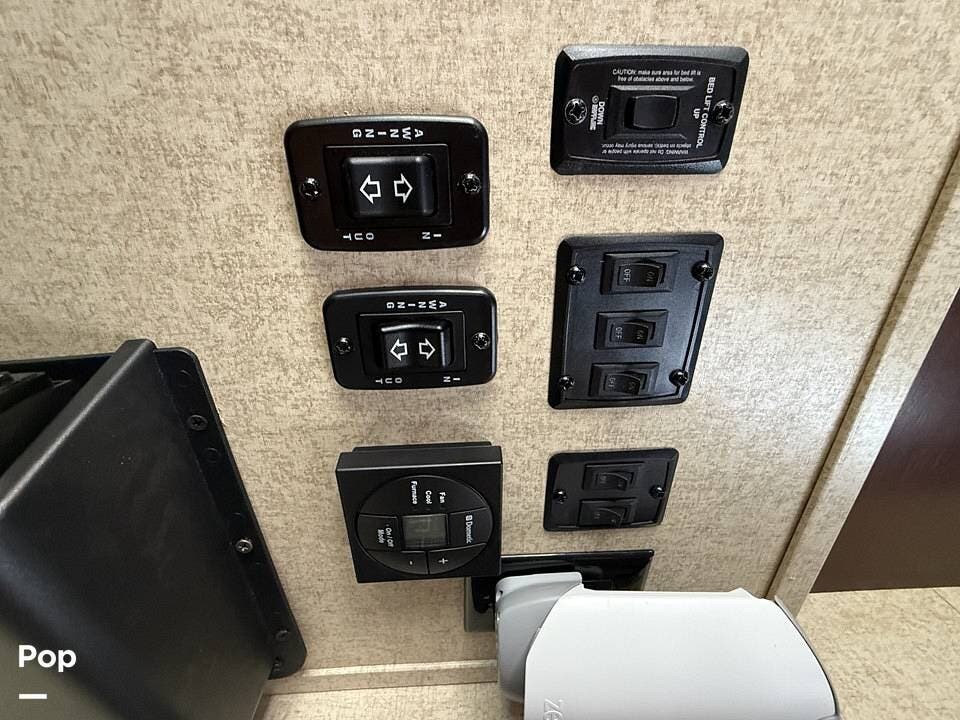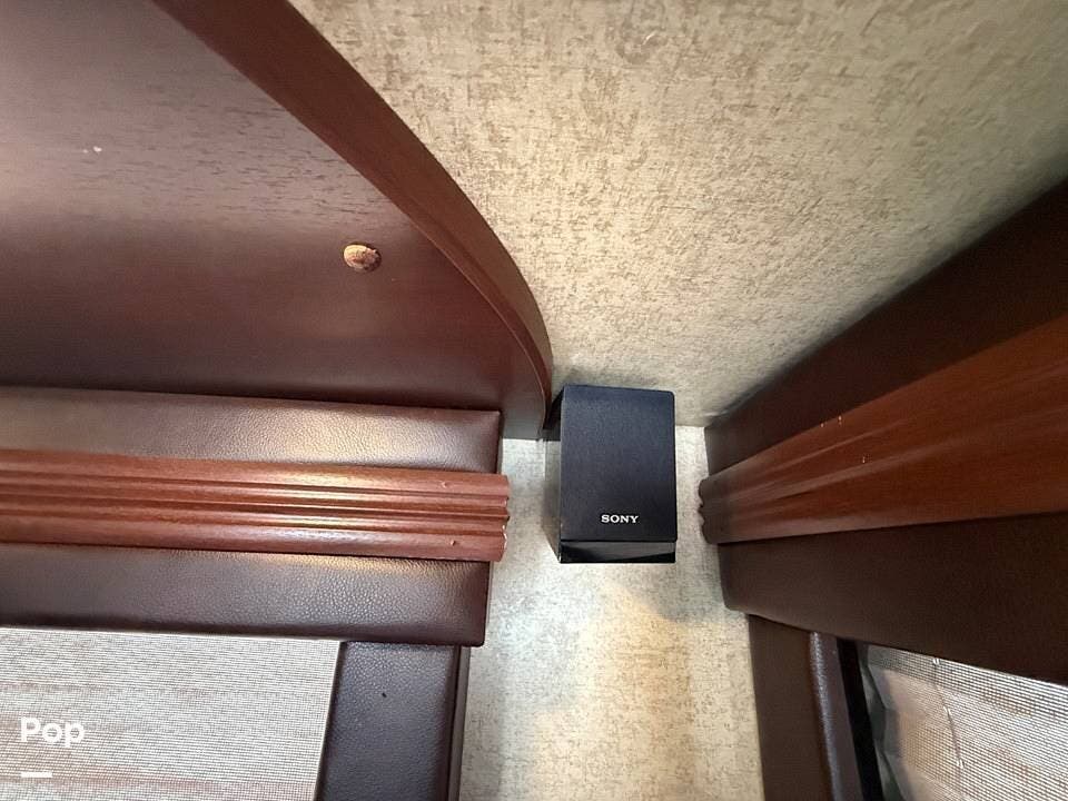 There is ample storage throughout, with a large pass-through compartment in front. The power awning and exterior speakers create the perfect outdoor living space, while the automatic hydraulic leveling system makes setup effortless.