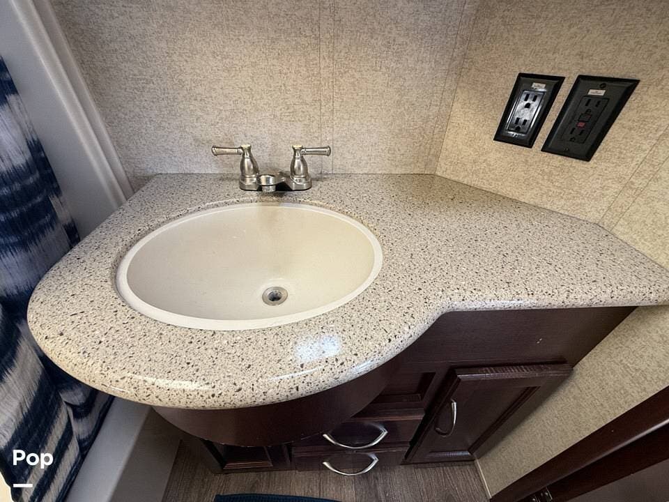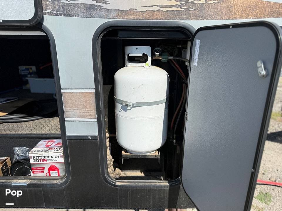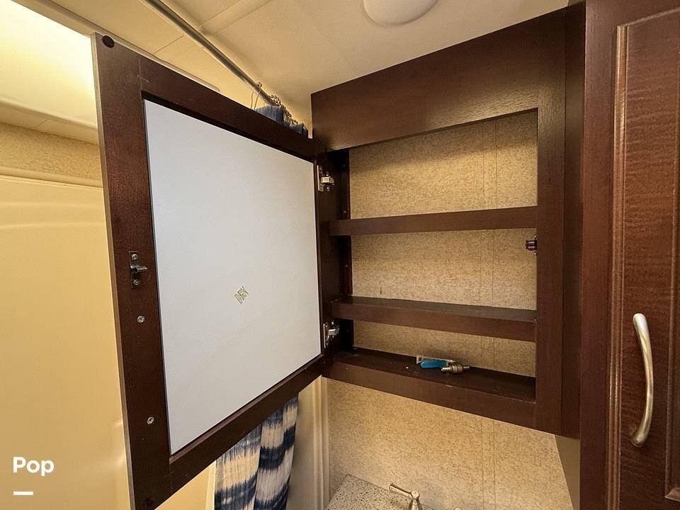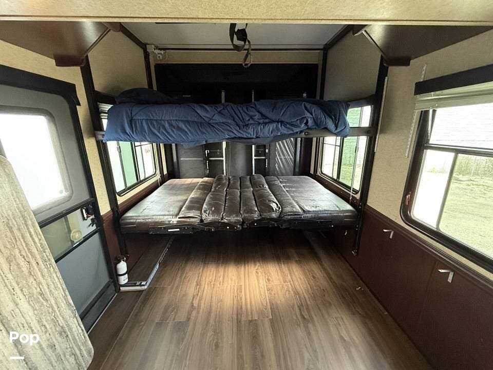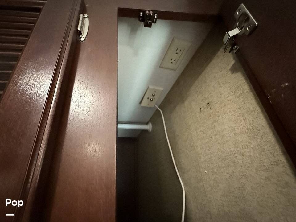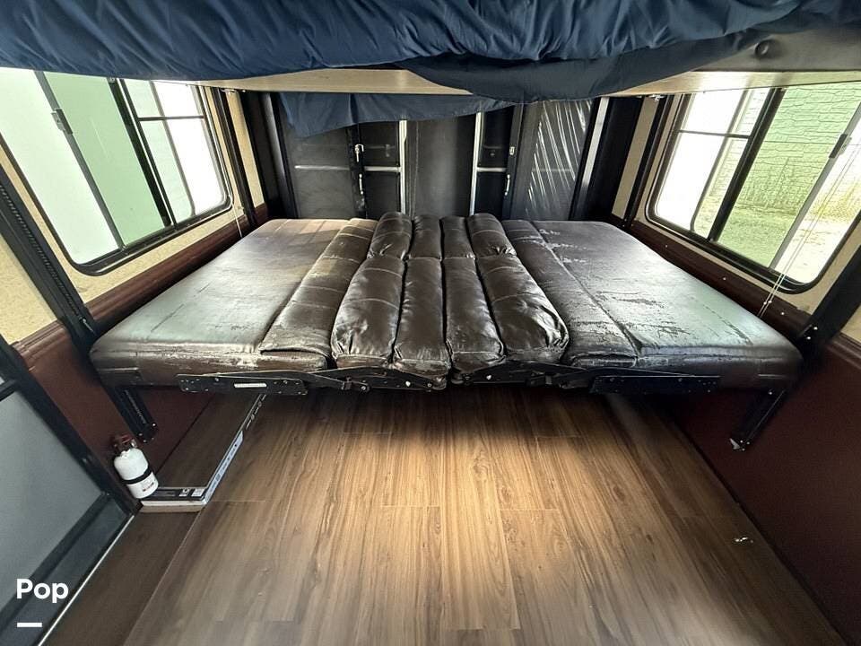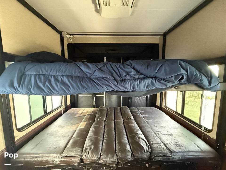 There is ample storage throughout, with a large pass-through compartment in front. The power awning and exterior speakers create the perfect outdoor living space, while the automatic hydraulic leveling system makes setup effortless.