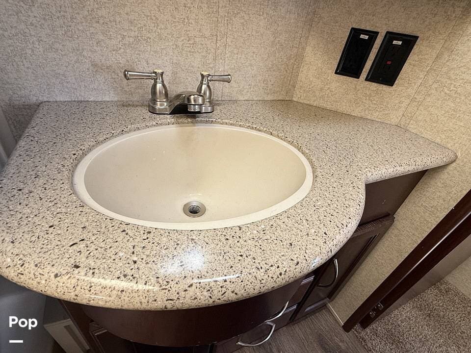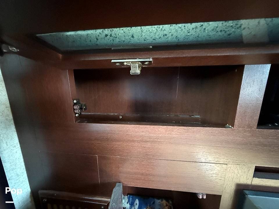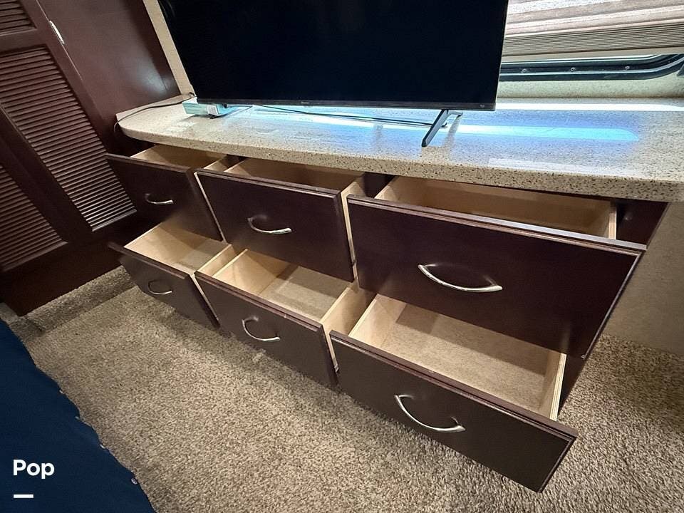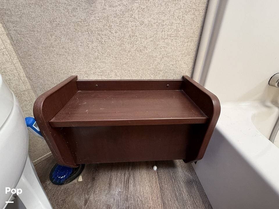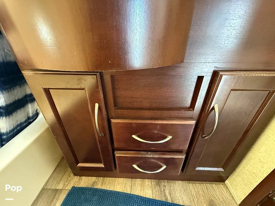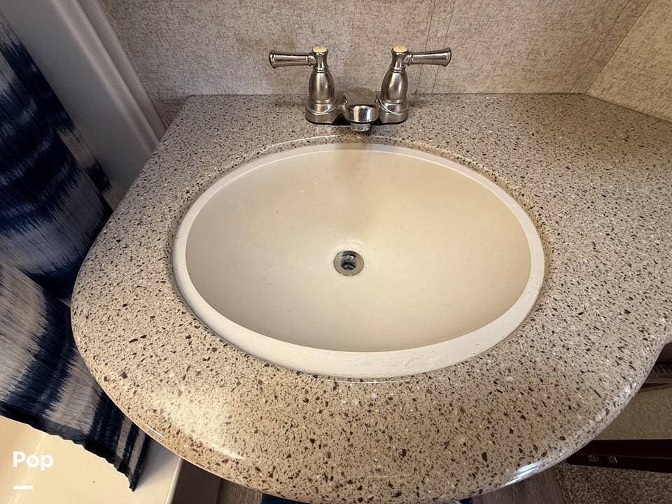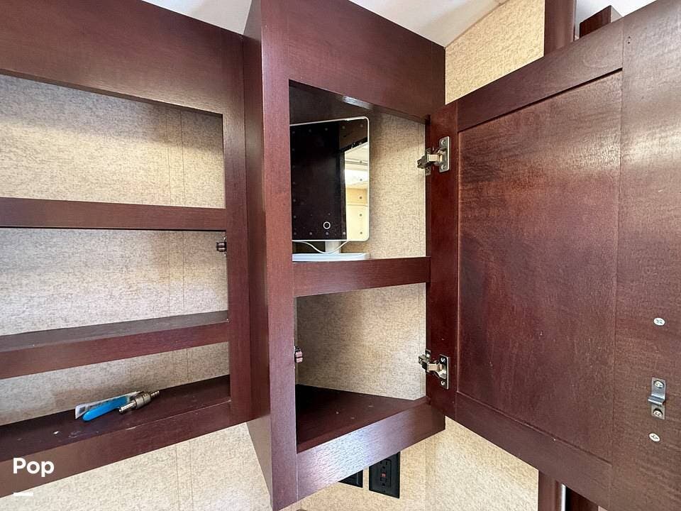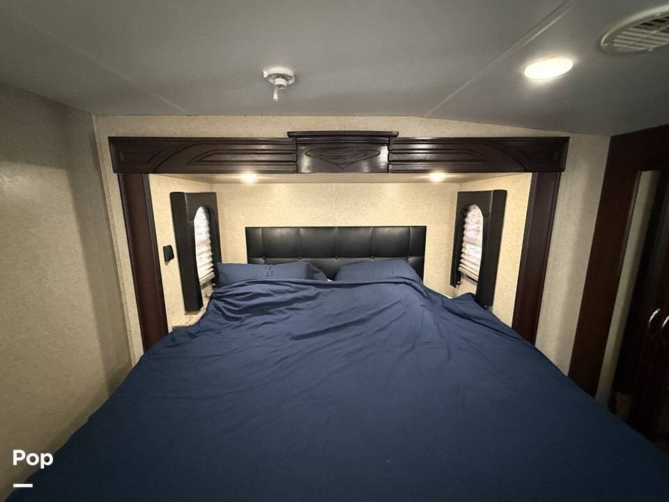 There is ample storage throughout, with a large pass-through compartment in front. The power awning and exterior speakers create the perfect outdoor living space, while the automatic hydraulic leveling system makes setup effortless.