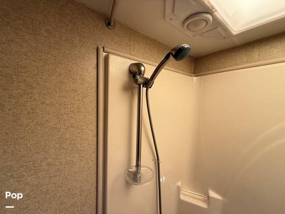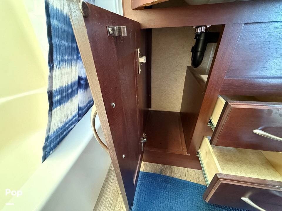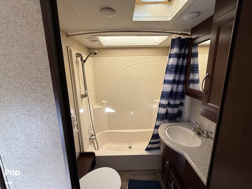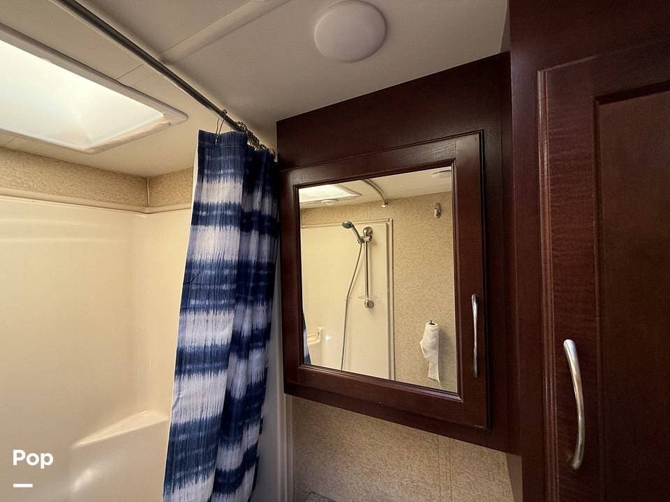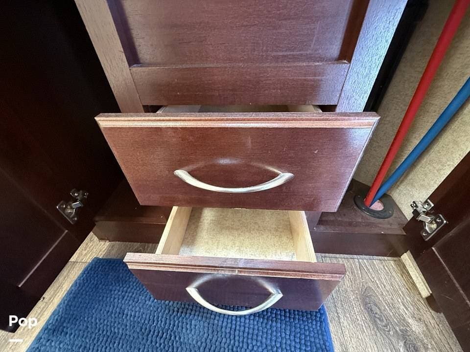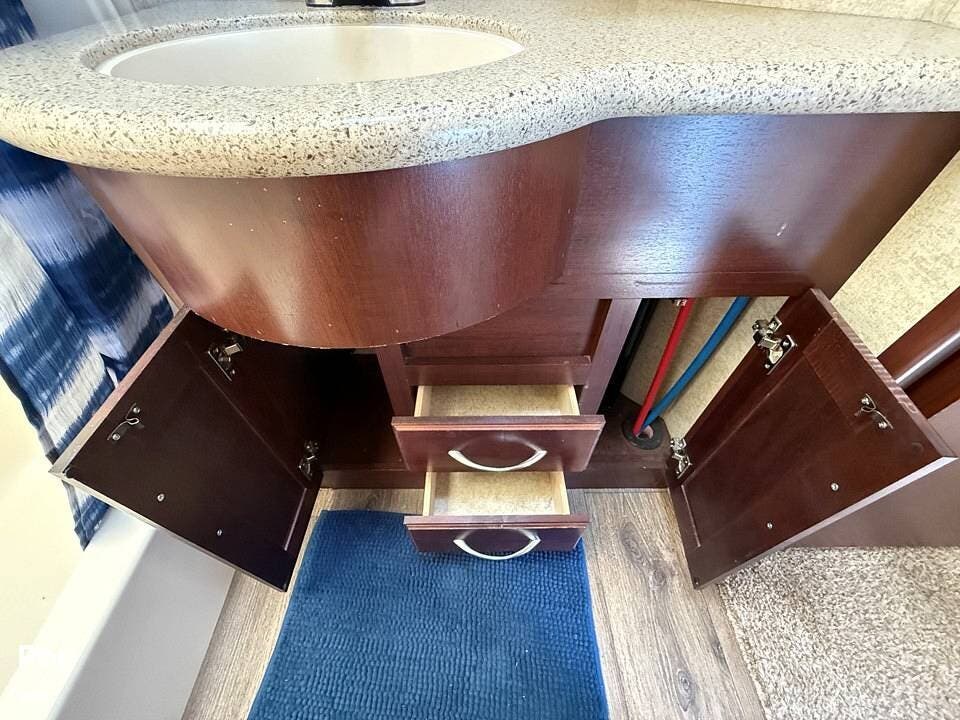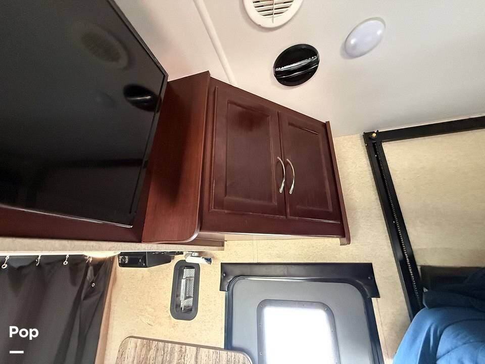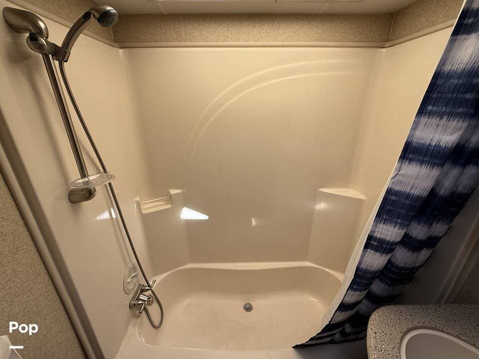 There is ample storage throughout, with a large pass-through compartment in front. The power awning and exterior speakers create the perfect outdoor living space, while the automatic hydraulic leveling system makes setup effortless.