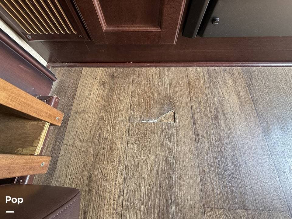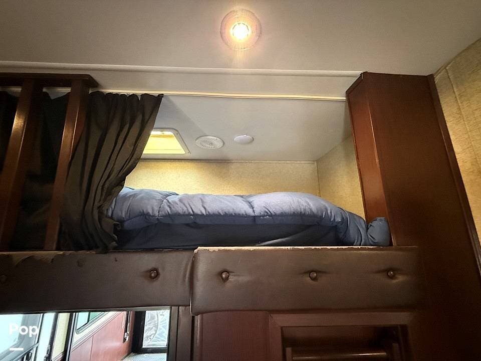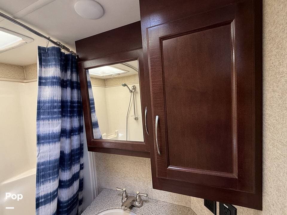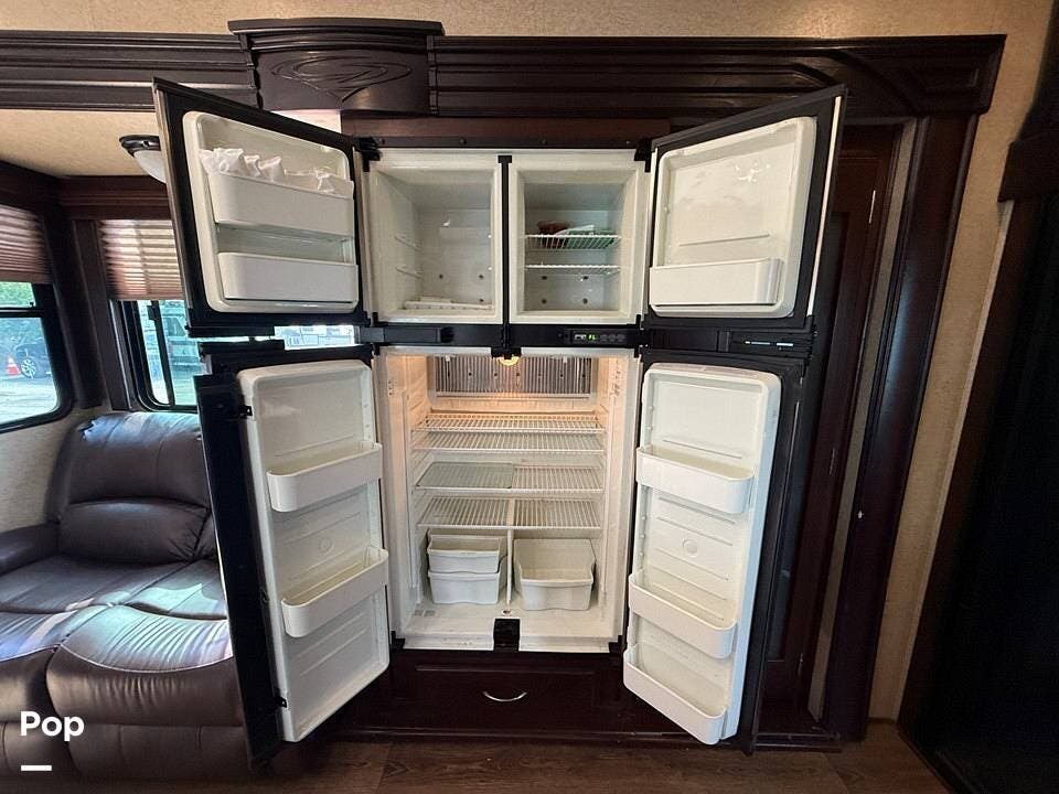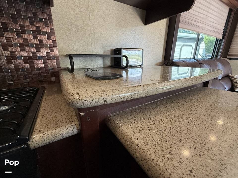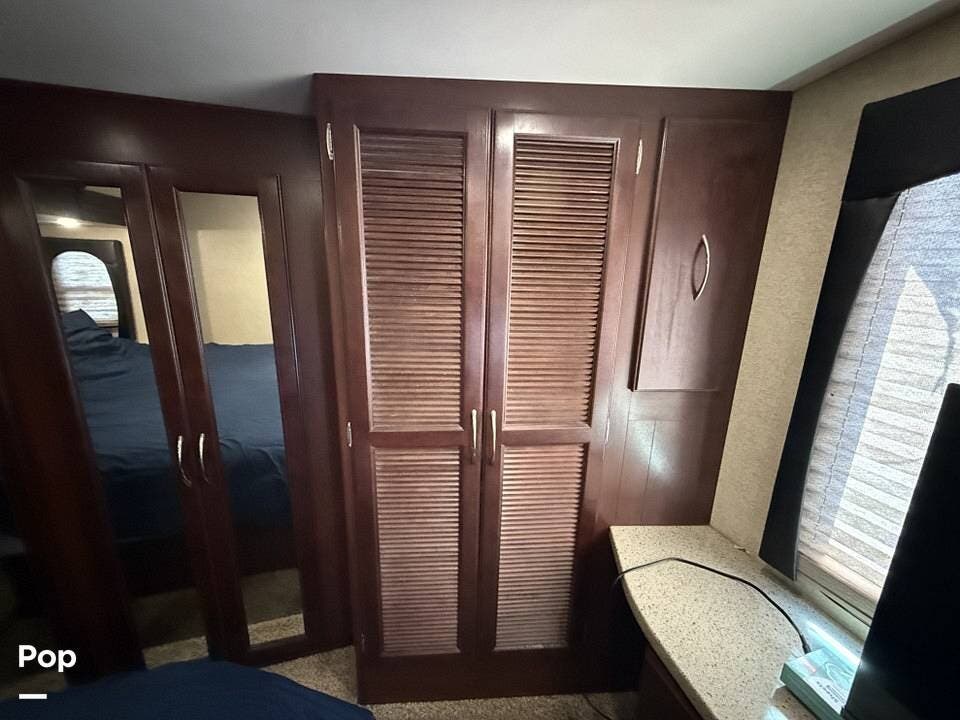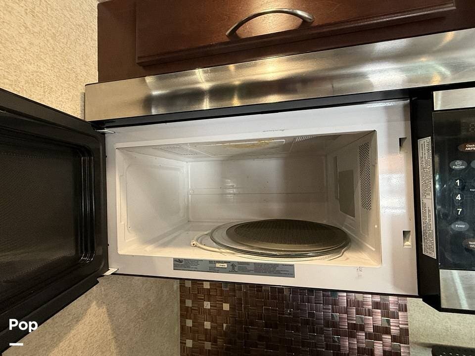 Inside, you'll find residential-style comfort with a fully equipped kitchen, including solid surface countertops, a three-burner stove, oven, microwave, and refrigerator. Relax in the roomy living area with reclining seating, an entertainment center, and a fireplace, while the master suite offers a king-size bed for restful nights.
