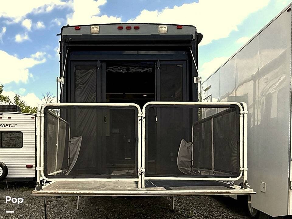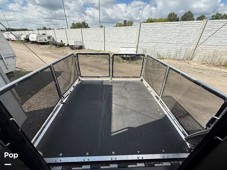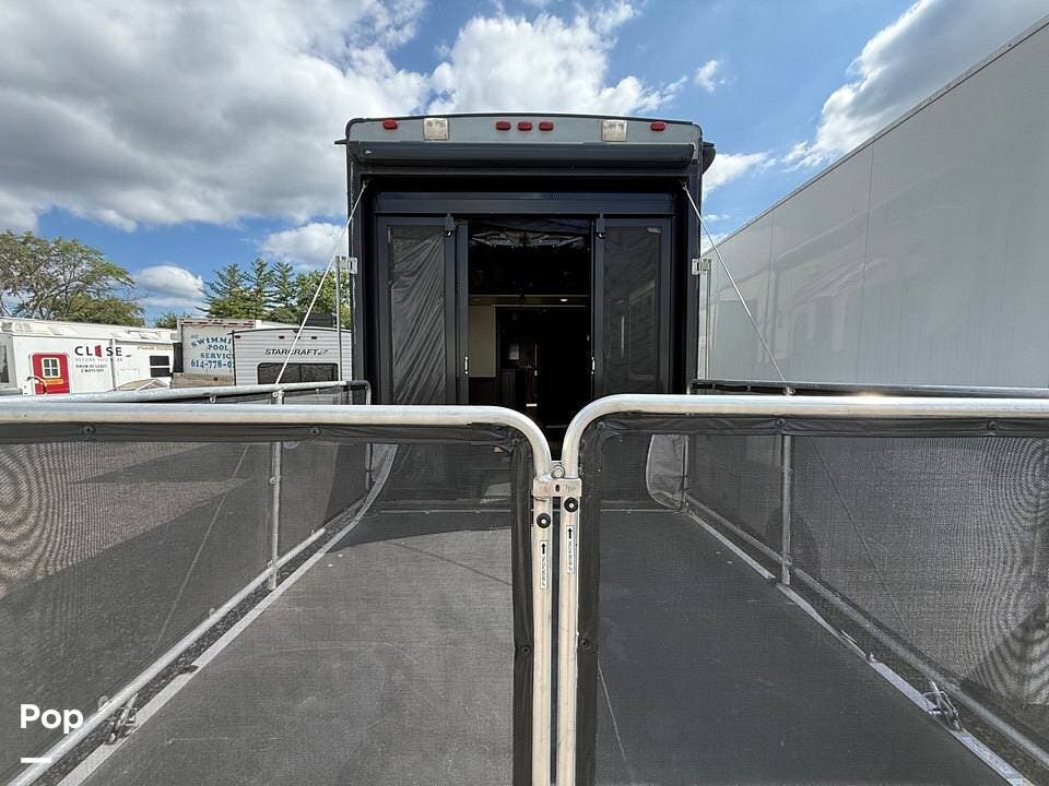 This spacious hauler features a large garage with a fueling station, ideal for transporting ATVs, motorcycles, or other recreational vehicles. The garage ramp converts to a nice patio with rails all around.