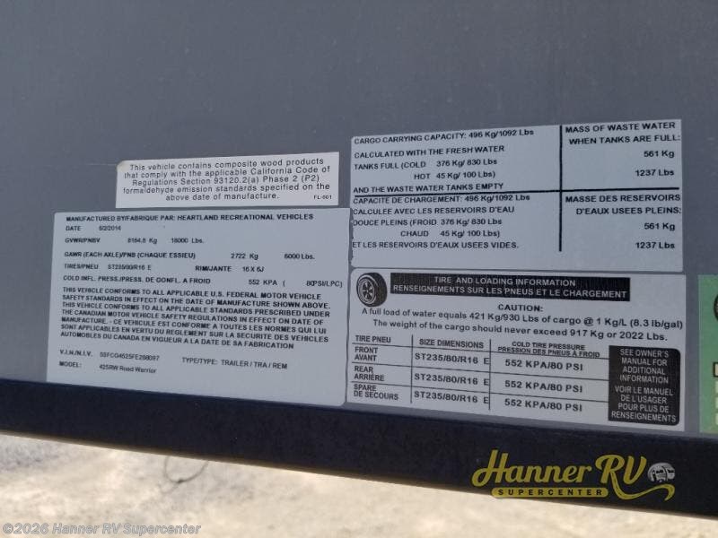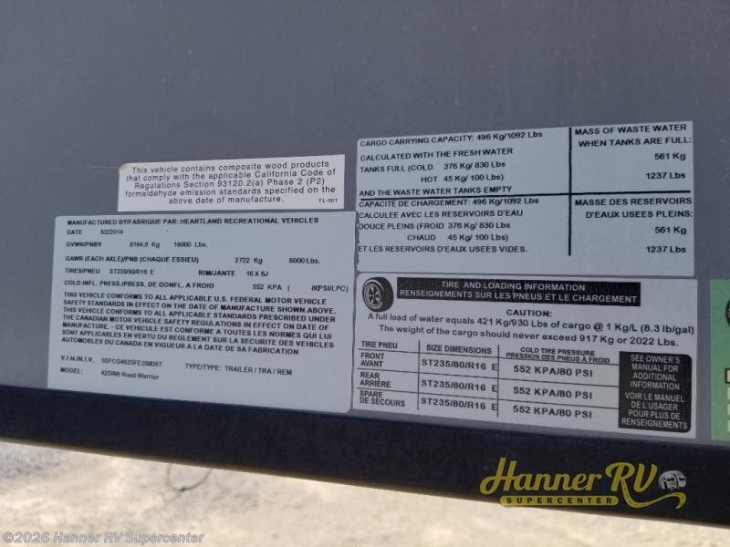 Request More Info on this 2015 Heartland Road Warrior 425 Offered for sale by Hanner RV Supercenter