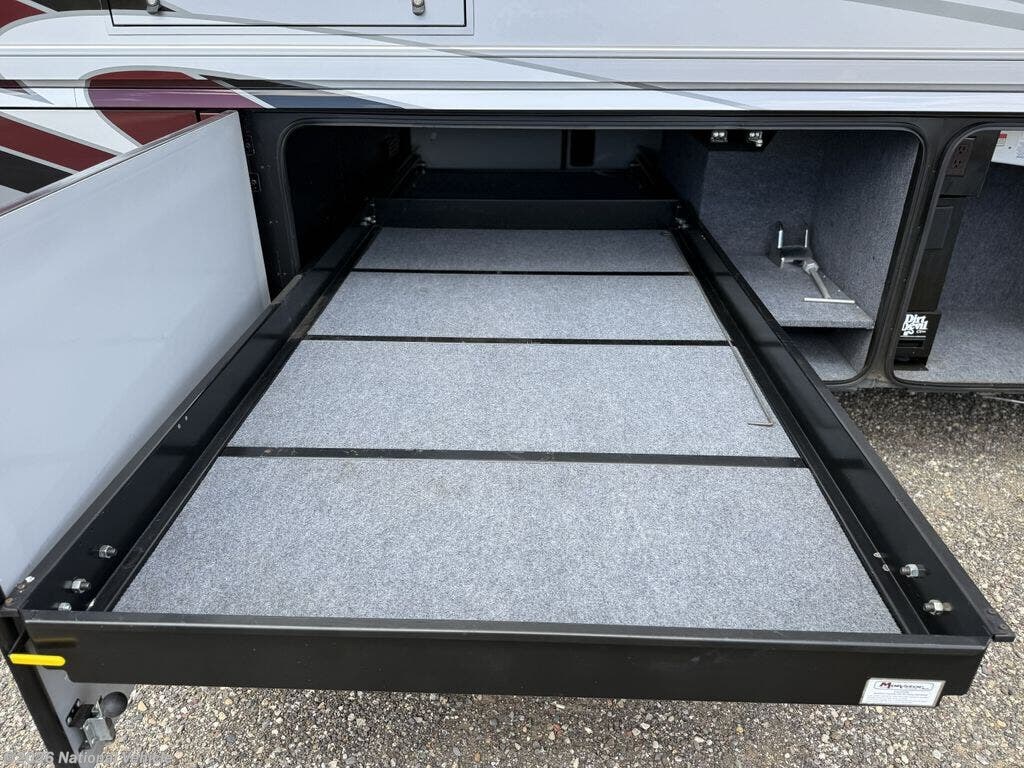 On the exterior, you?ll find full-body paint, expansive basement storage with slide-out trays, and a power awning for easy outdoor living. Advanced features such as a backup/side-view camera system, automatic leveling jacks, and generator power ensure confidence and independence wherever you go.