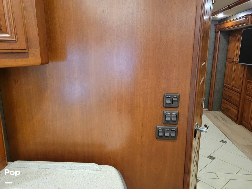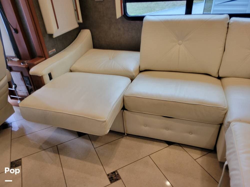 The coach has a massive single slide-out on the driver's side and two slide-outs on the passenger side. The slide-outs provide a massive interior living space that feels like a home.
