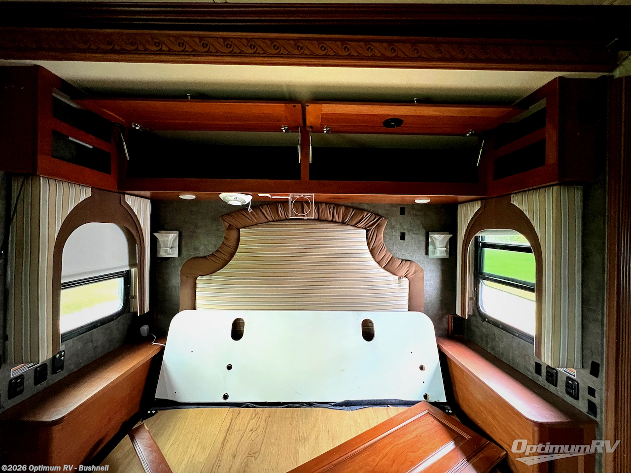 A sliding door takes you into the rear bedroom where you will find a king size bed slide out including nightstands, a wardrobe with sliding doors, and storage cabinet for an optional washer and dryer, or just any storage that you need. There is also a 32" HDTV location along the rear wall for your enjoyment, plus so much more!