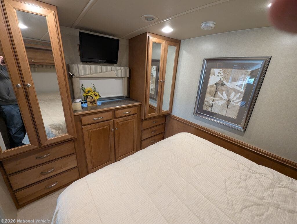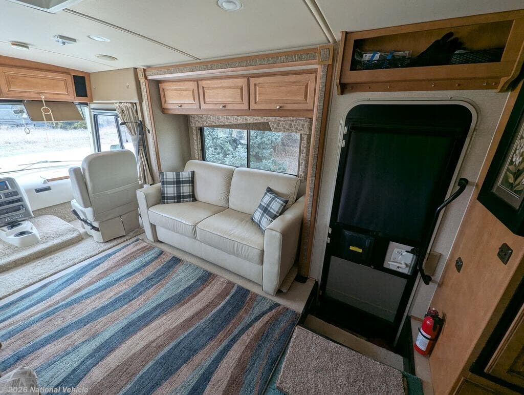 Additional conveniences include automatic hydraulic leveling, electric entry step, power mirrors with defrost, power window blinds, and rear and side cameras for easier driving and parking.