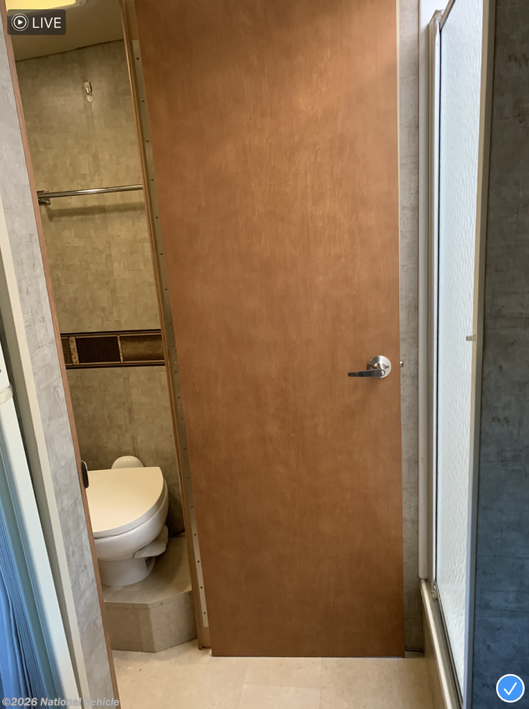 Head toward the rear bedroom and pass by a shower on the left and private toilet area with vanity and sink including overhead storage on your right with a TV, plus so much more!