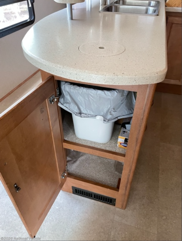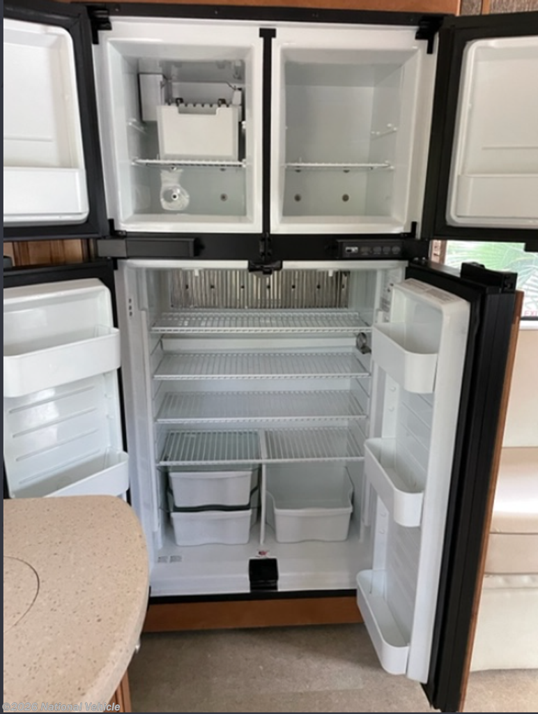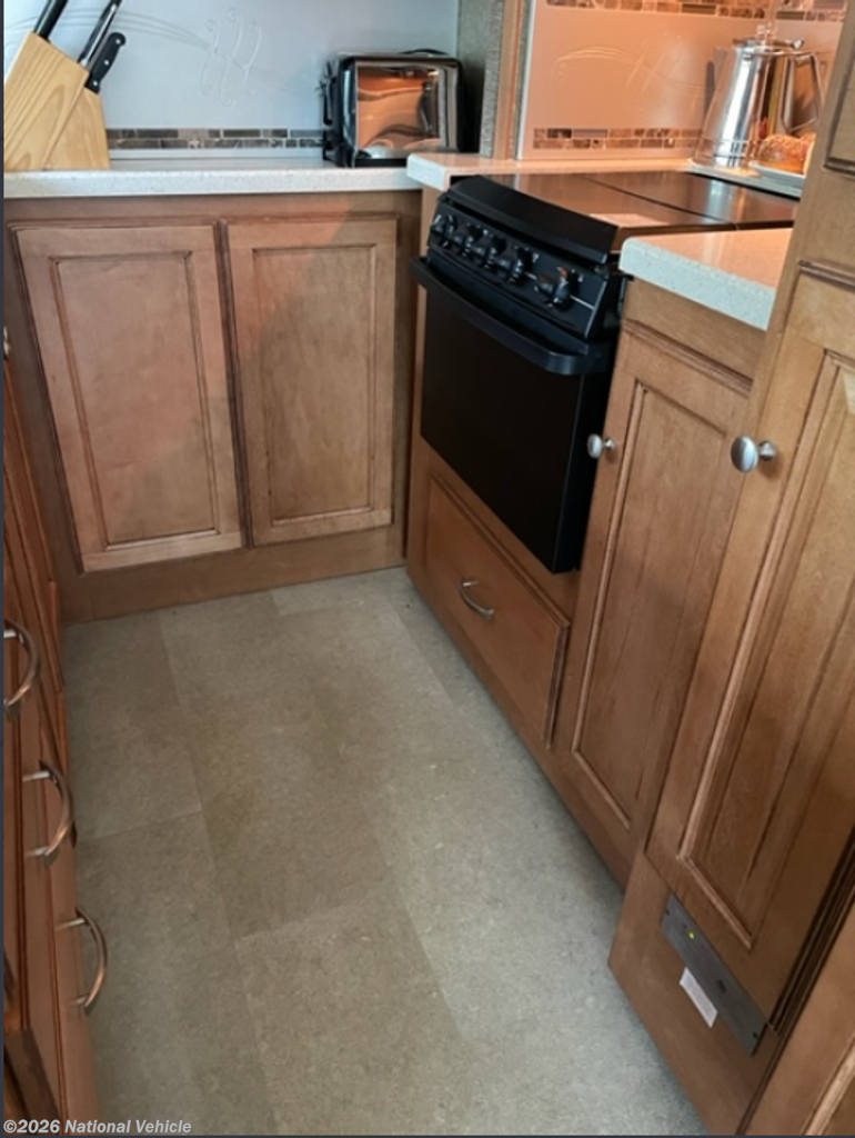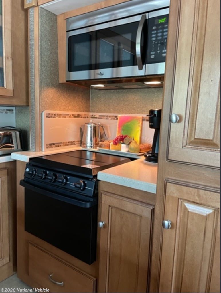 Kitchen Ready for Travel: 3-burner range, convection microwave, refrigerator/freezer, and abundant pantry space.