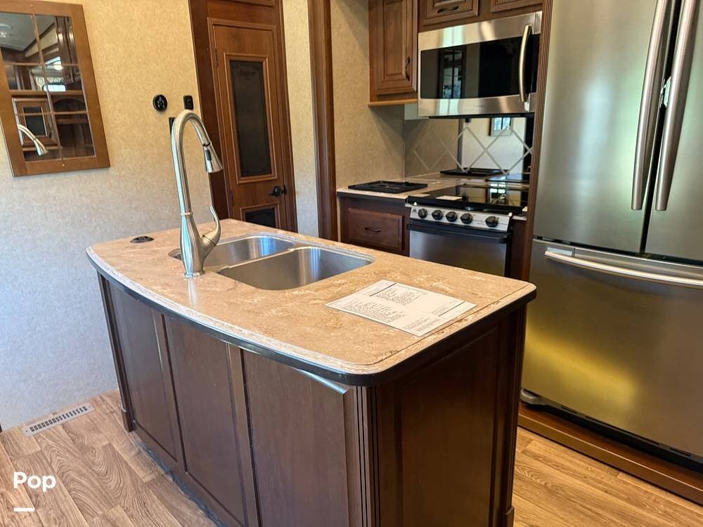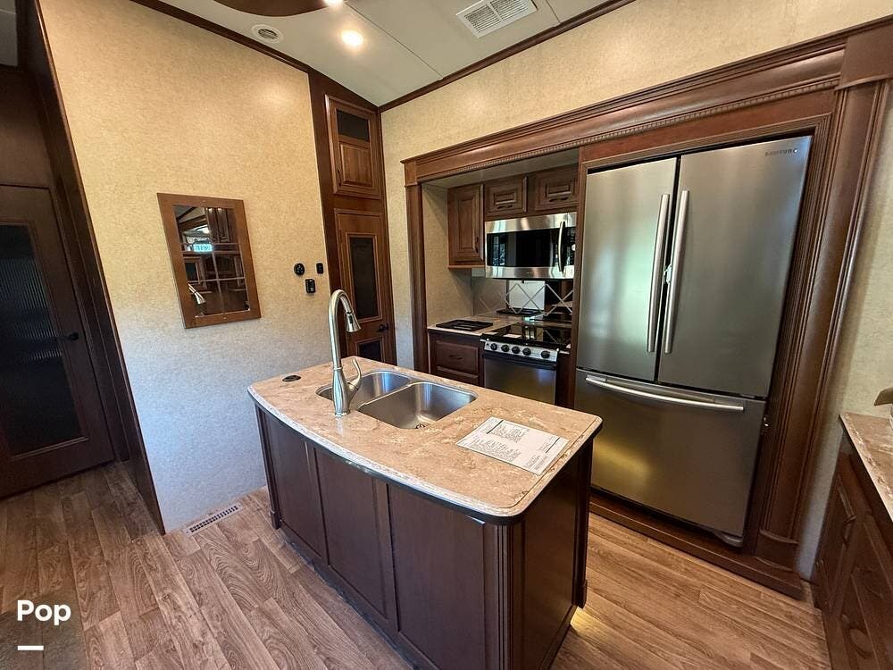 This model has a terrific floor plan featuring five slideouts, giving you a fantastic living space. It is ideal for extended trips or even full-time living.