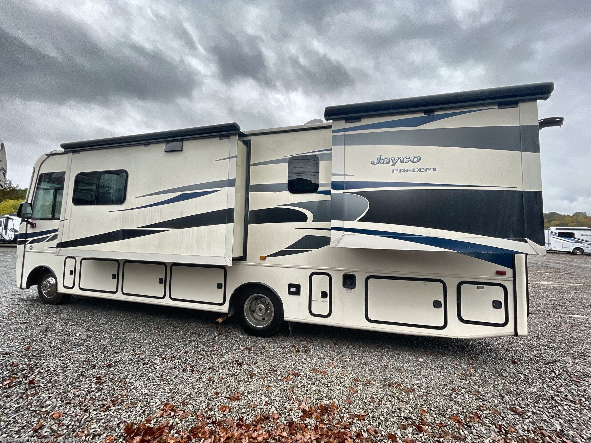 The Precept 31UL motor home by Jayco offers a rear bedroom and triple slides.