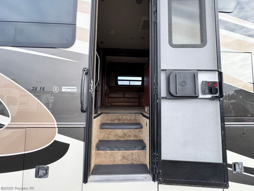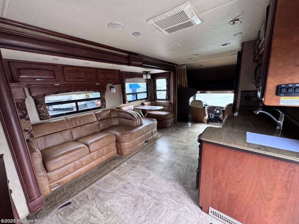Embark on incredible journeys with the 2015 Jayco Seneca 36FK, a spacious 38-foot long diesel motorhome that redefines comfort and convenience on the road. This used RV is tailored for families or groups, accommodating up to eight people comfortably, ensuring that each traveler enjoys a restful camping experience. The living area boasts a generous amount of space, enhanced by two slide-outs to create an inviting atmosphere for socializing and relaxation. This versatile RV is equipped with essential features, including front and rear power leveling jacks, so setting up camp becomes a breeze, allowing you to focus on making memories instead of struggling with setup. The included awning extends your living space outdoors, providing a shaded retreat where you can gather and enjoy your surroundings. Designed with modern amenities and a thoughtful layout, the 2015 Jayco Seneca elevates your RVing experience, whether you are navigating through serene mountains or exploring lively camping grounds. This motorhome's efficient diesel engine combines power and fuel economy, ideal for long-haul adventures across scenic routes. Furthermore, its intelligently designed sleeping arrangements and flexible living spaces are perfect for unwinding after a day filled with exploration. From cooking meals in the well-equipped kitchen to hosting family movie nights, this RV truly feels like a home on wheels. Embrace the spirit of adventure and create lasting memories with your loved ones in this remarkable motorhome. Stock#: BC5202, VIN: 3ALACXDU3FDGG8640.