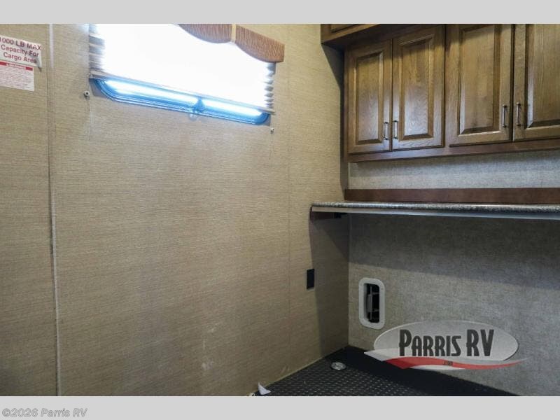 Straight ahead along the interior wall find a closet, and corner curio cabinet with storage both above and below the counter area. The slide that follows along the road side wall offers a three burner range, a 13 cu. ft. refrigerator, and recliner sofa including overhead cabinets. There is an entertainment center along the rear interior wall for viewing from anywhere in the room. You will also love the kitchen island that features a double sink.