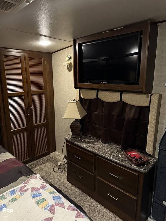 The 2015 Keystone Avalanche 361TG is a luxurious fifth-wheel RV designed for comfort, functionality, and family camping.