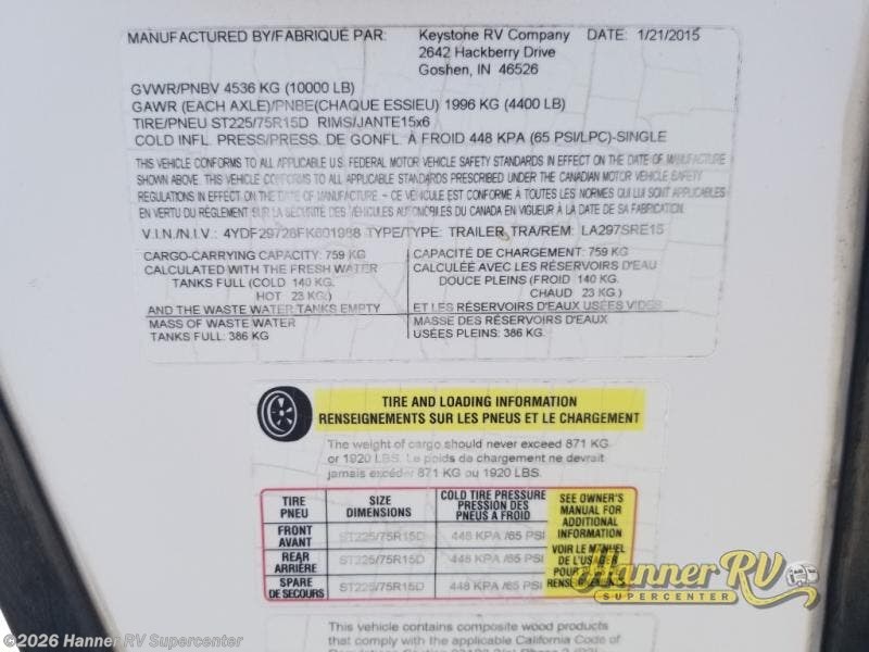 Request More Info on this 2015 Keystone Laredo Super Lite 297SRE Offered for sale by Hanner RV Supercenter