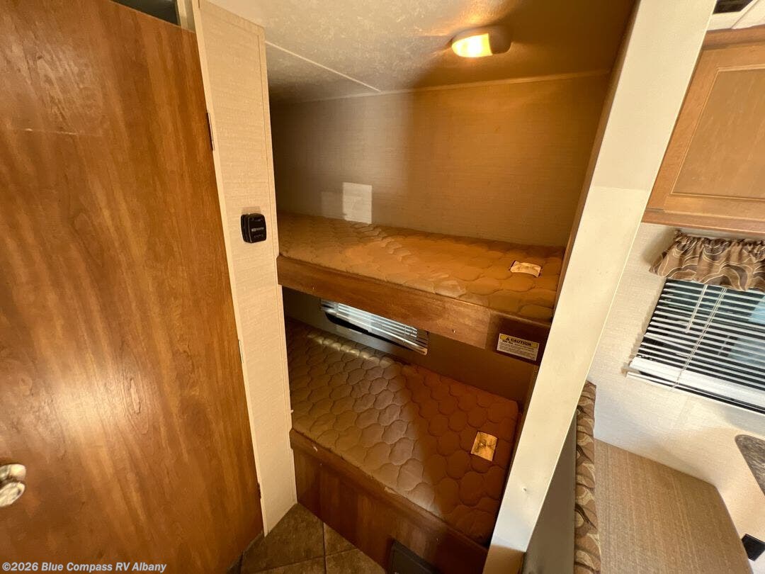 In the rear of this single axle unit find a set of bunks that the kids will certainly love, and a corner bath with tub/shower and toilet, plus so much more!