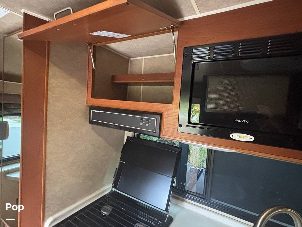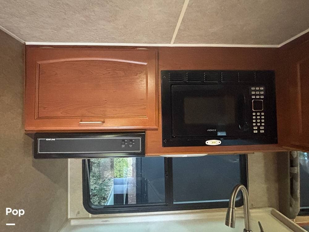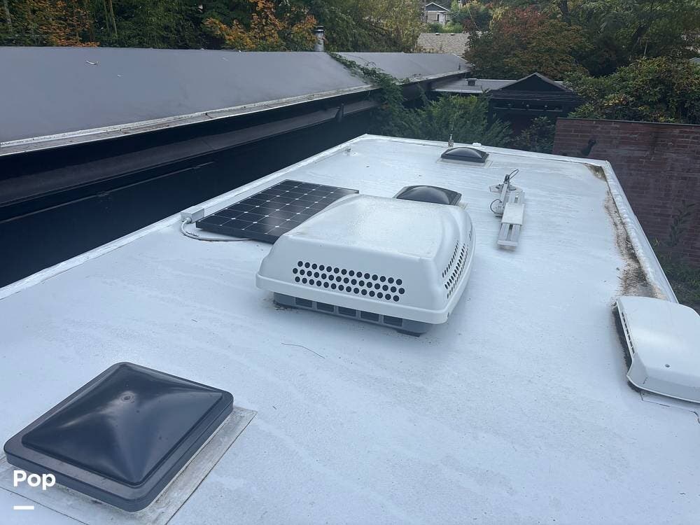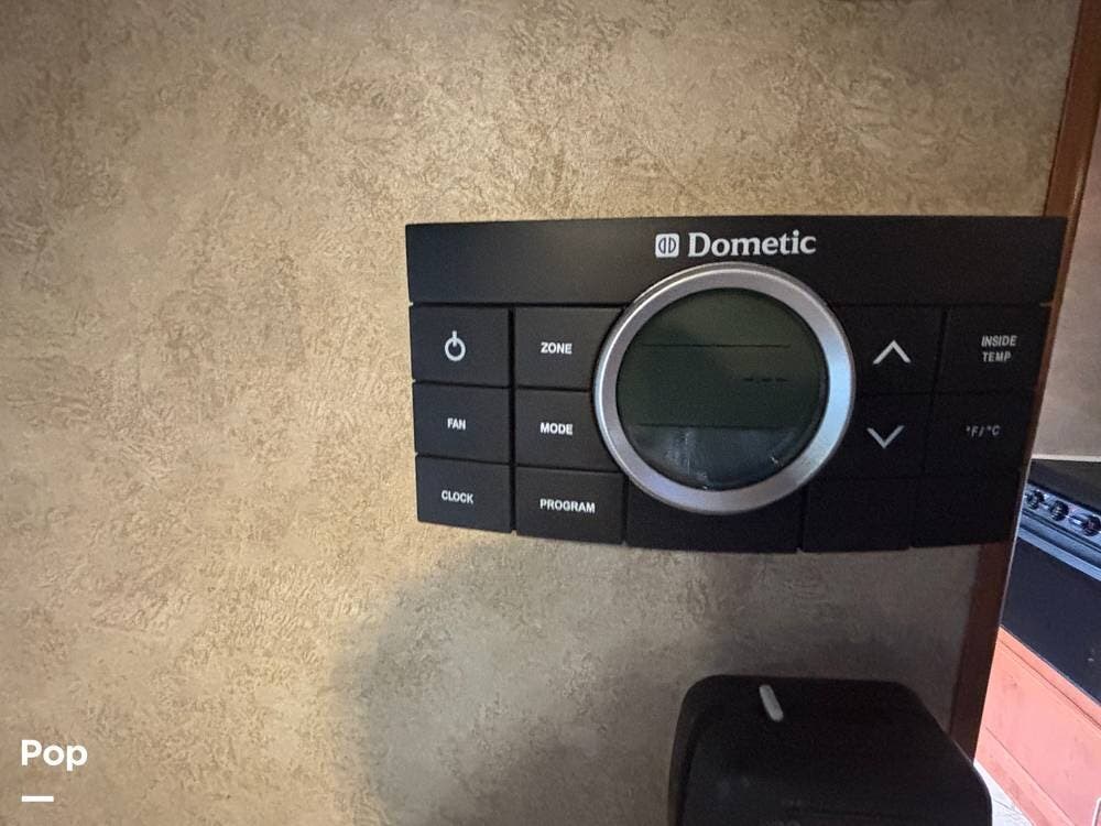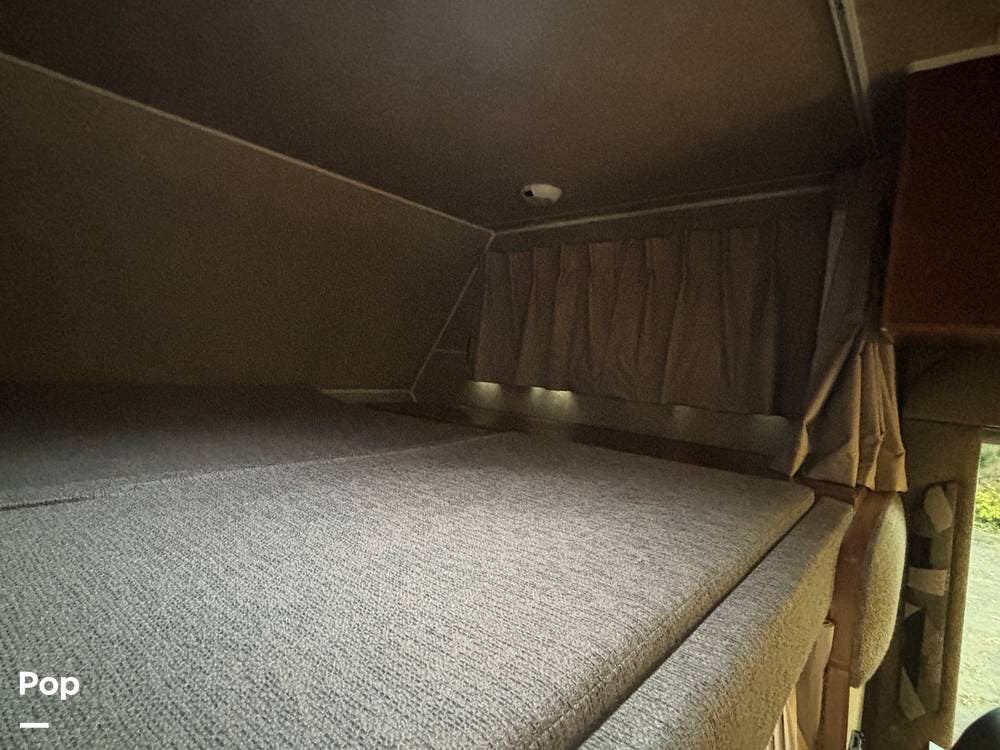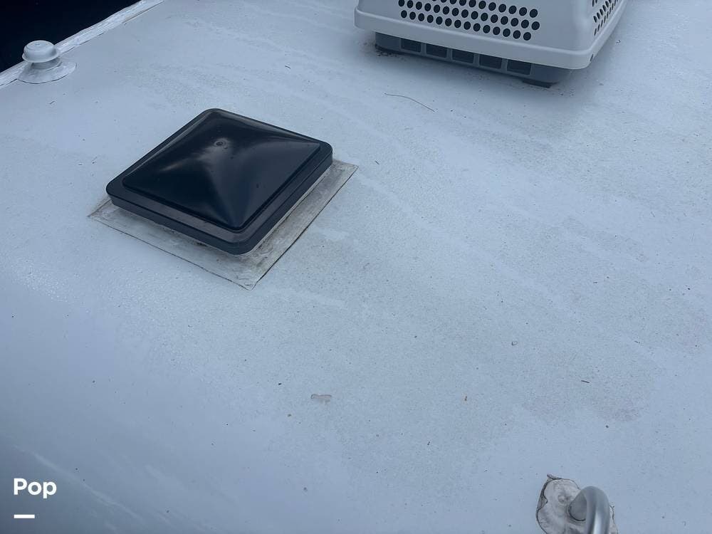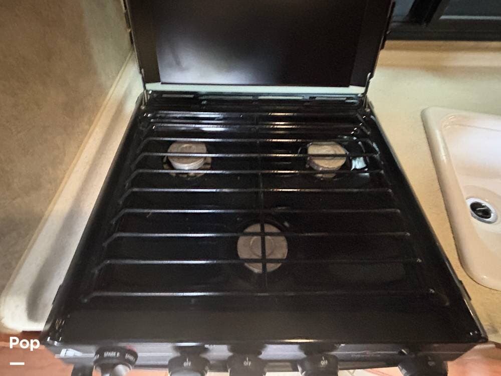 Inside, you'll find a sofa sleeper, queen cabover bed, shower with skylight, bathroom sink, black water flush, and day/night window shades. Climate control is provided by a 15,000 BTU A/C, a Fantastic Fan, and ceiling vents.