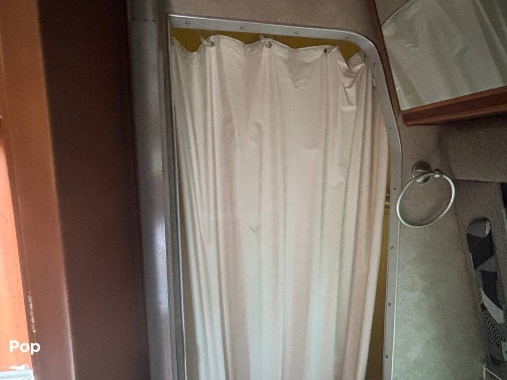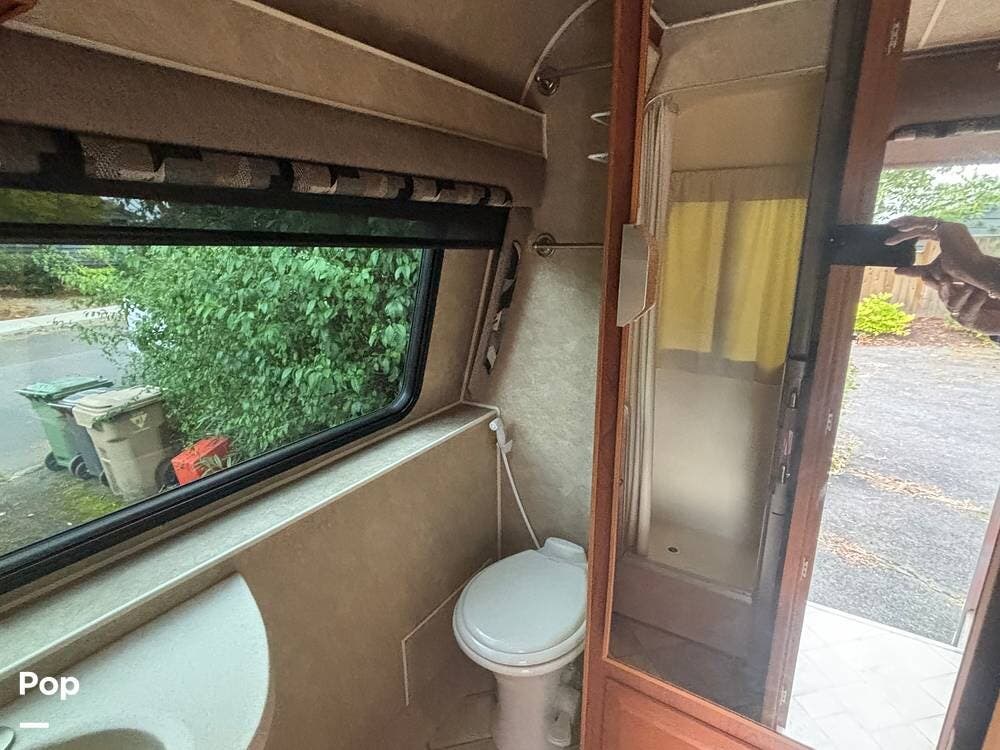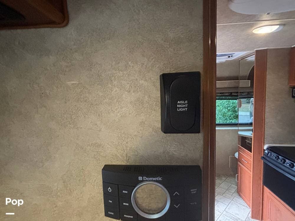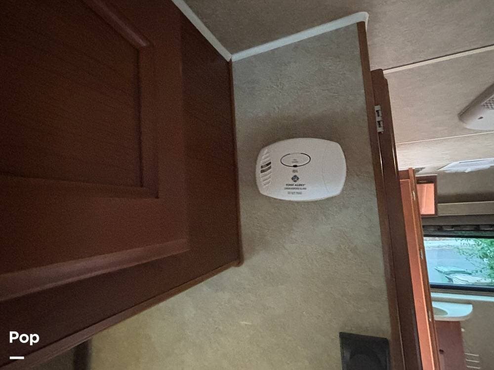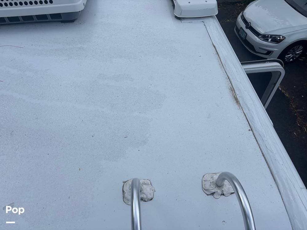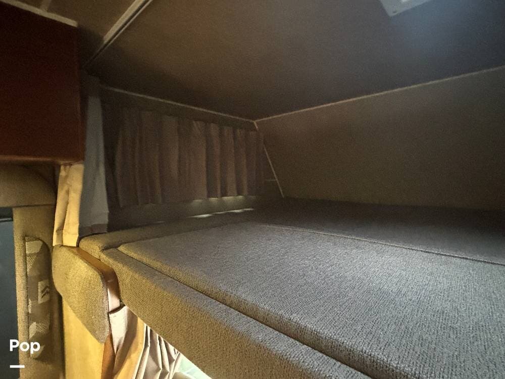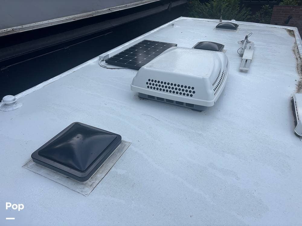 Inside, you'll find a sofa sleeper, queen cabover bed, shower with skylight, bathroom sink, black water flush, and day/night window shades. Climate control is provided by a 15,000 BTU A/C, a Fantastic Fan, and ceiling vents.