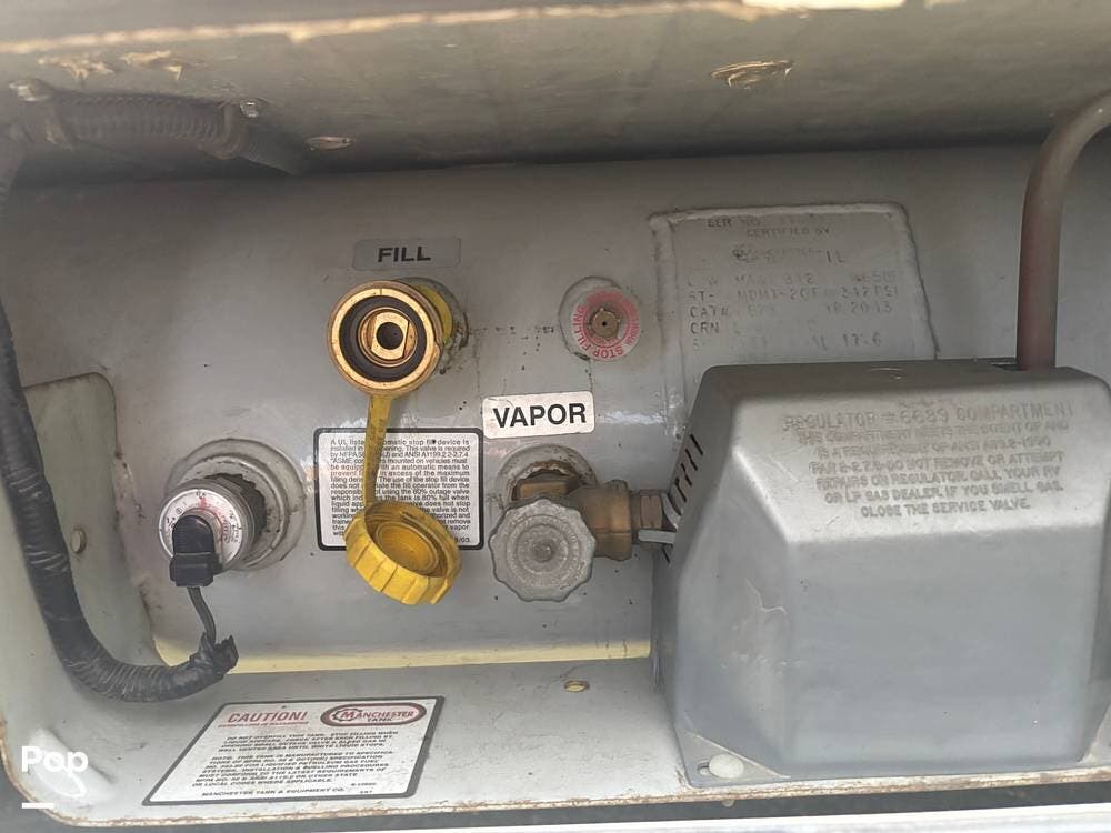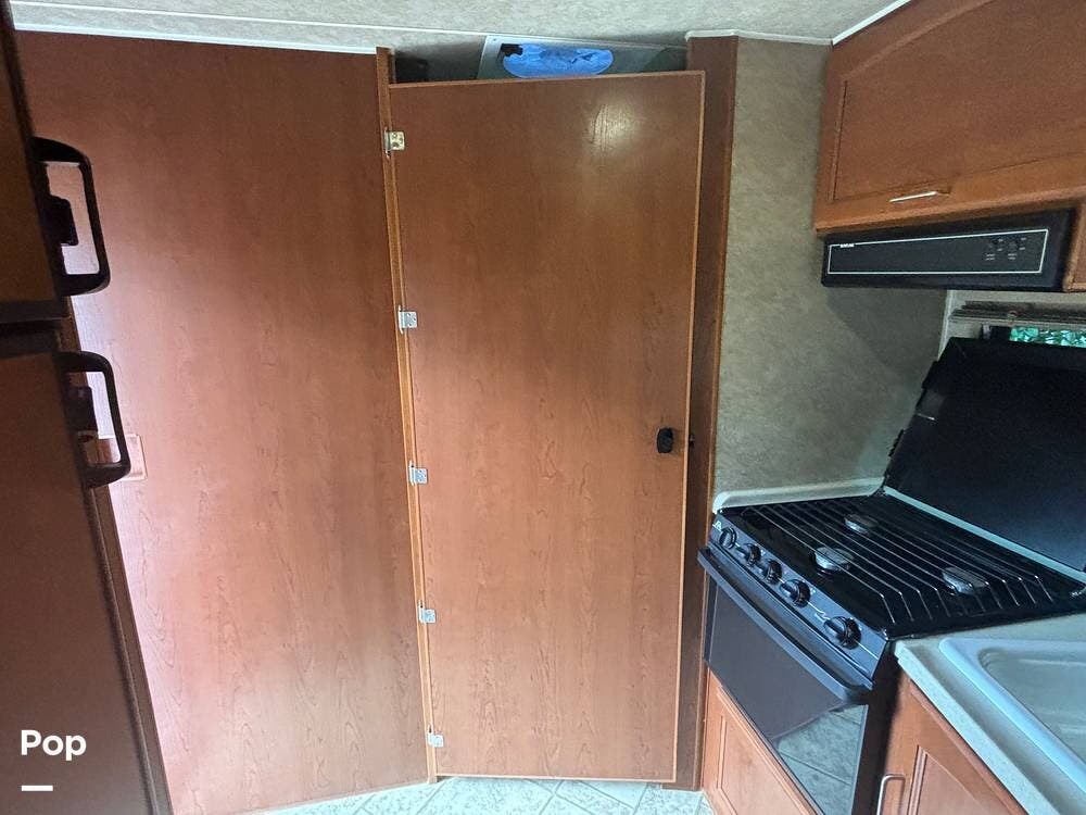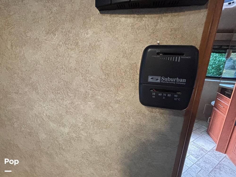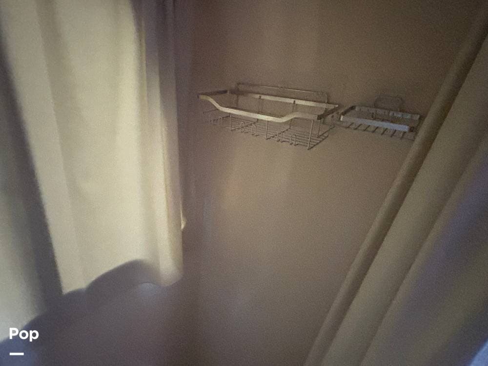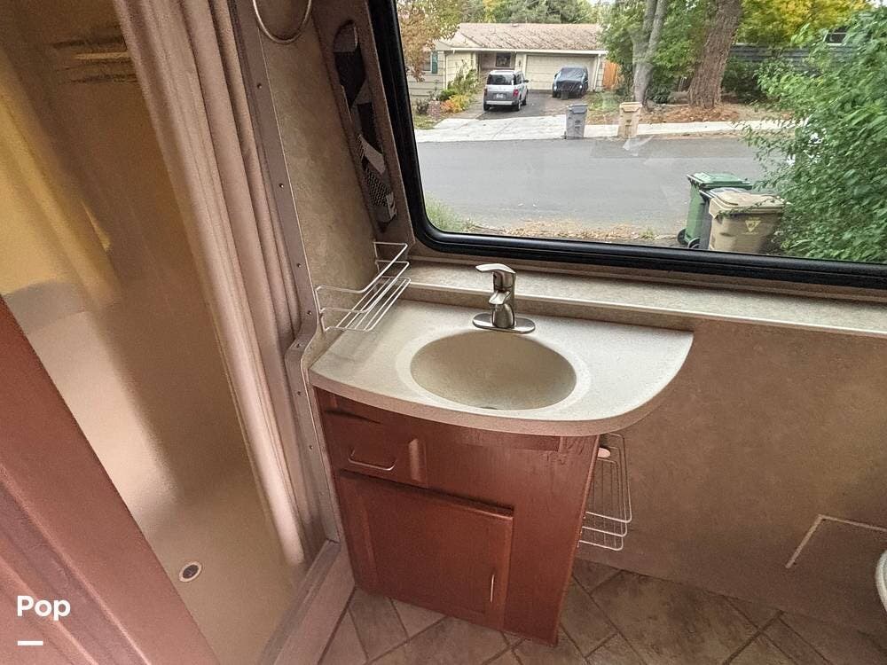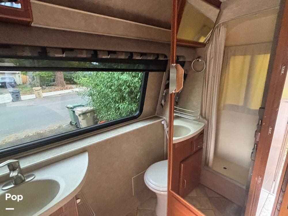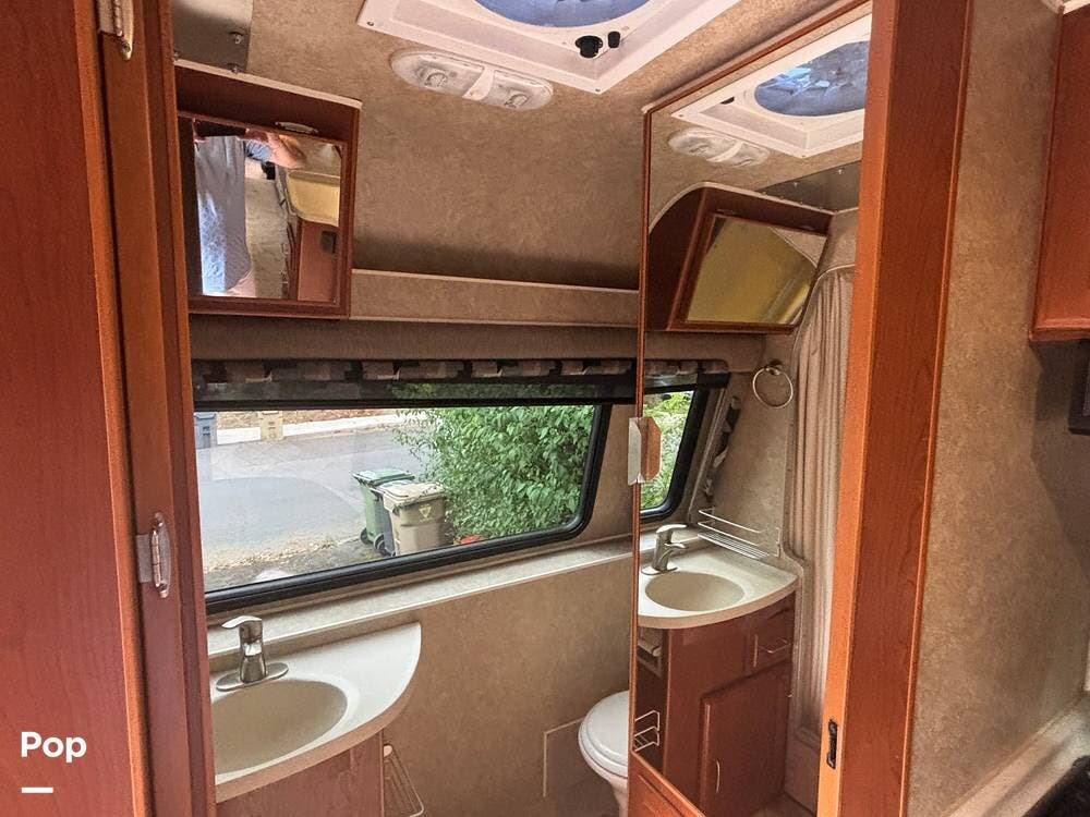 Inside, you'll find a sofa sleeper, queen cabover bed, shower with skylight, bathroom sink, black water flush, and day/night window shades. Climate control is provided by a 15,000 BTU A/C, a Fantastic Fan, and ceiling vents.