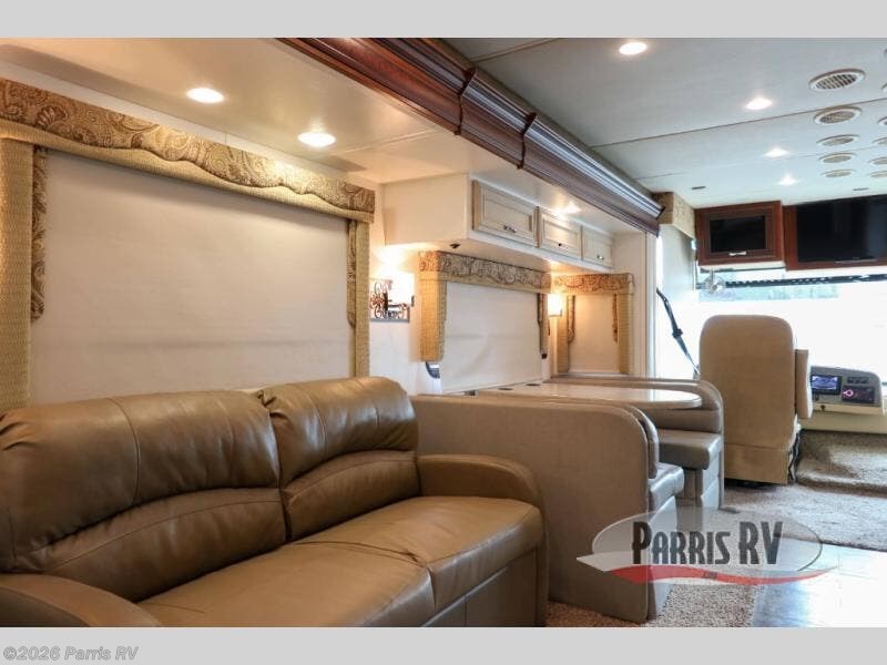 There are plenty of overhead cabinets throughout the motor home, as well as an overhead TV in the front.