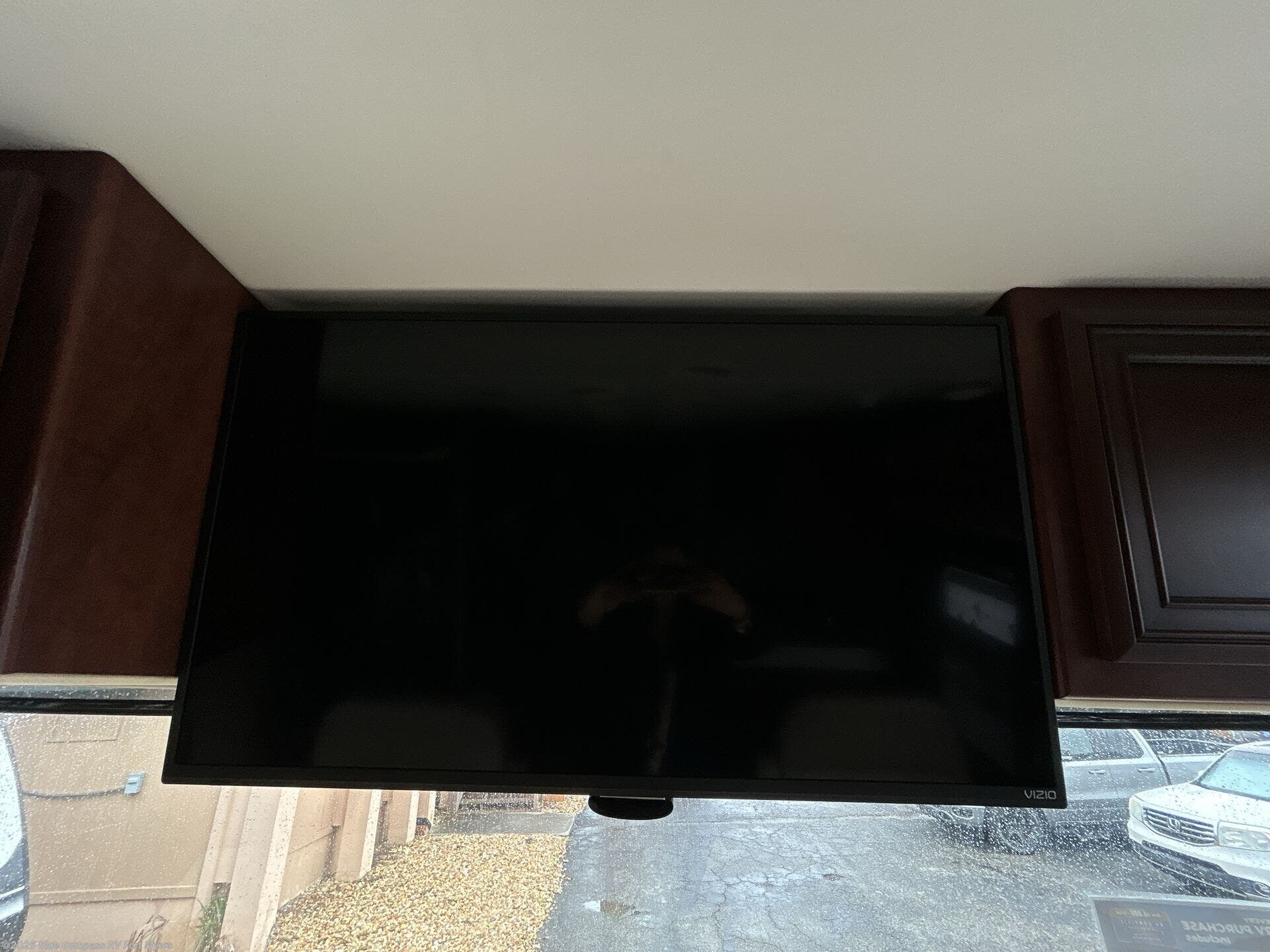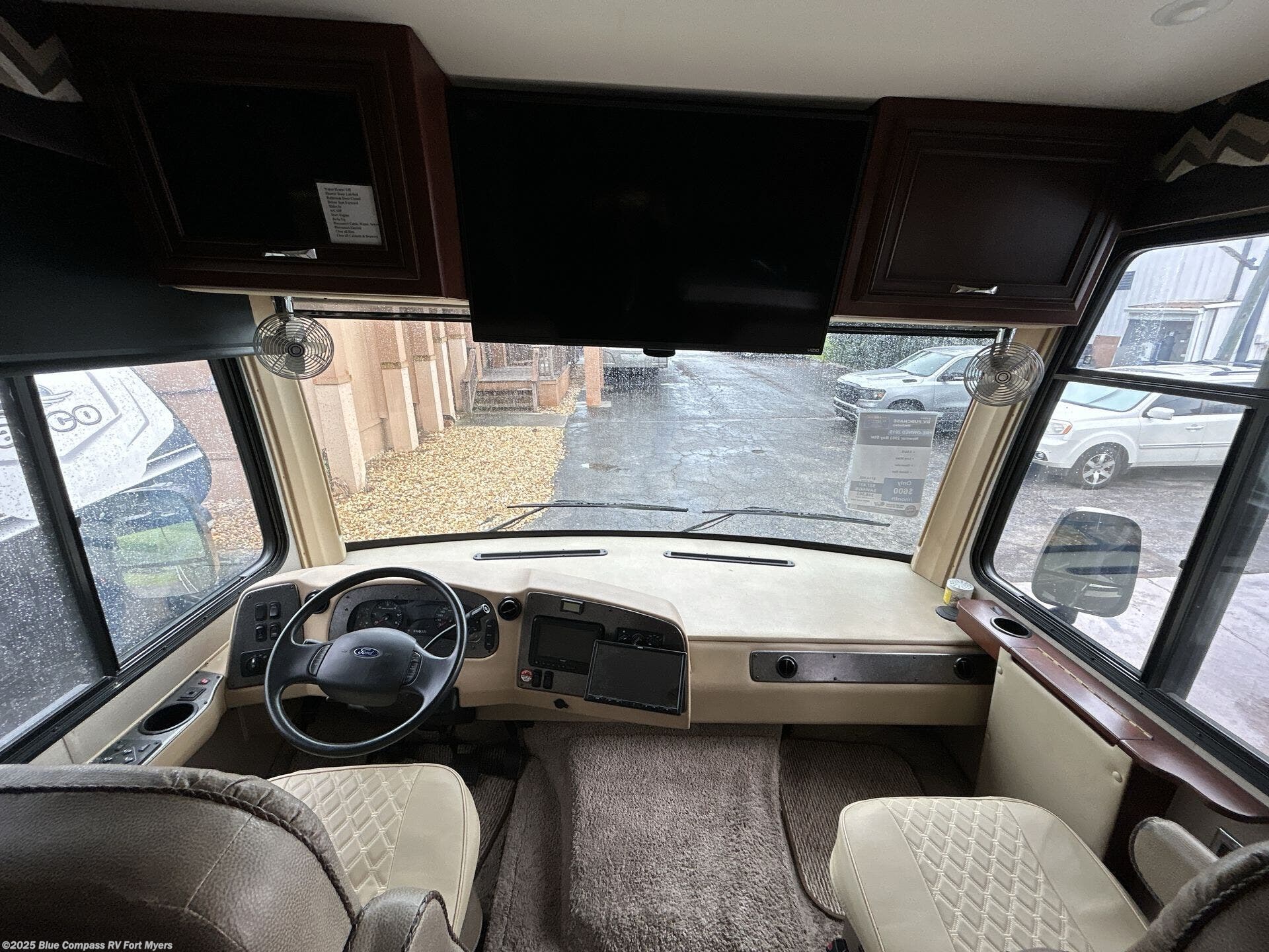 There are plenty of overhead cabinets throughout the motor home, as well as an overhead TV in the front.